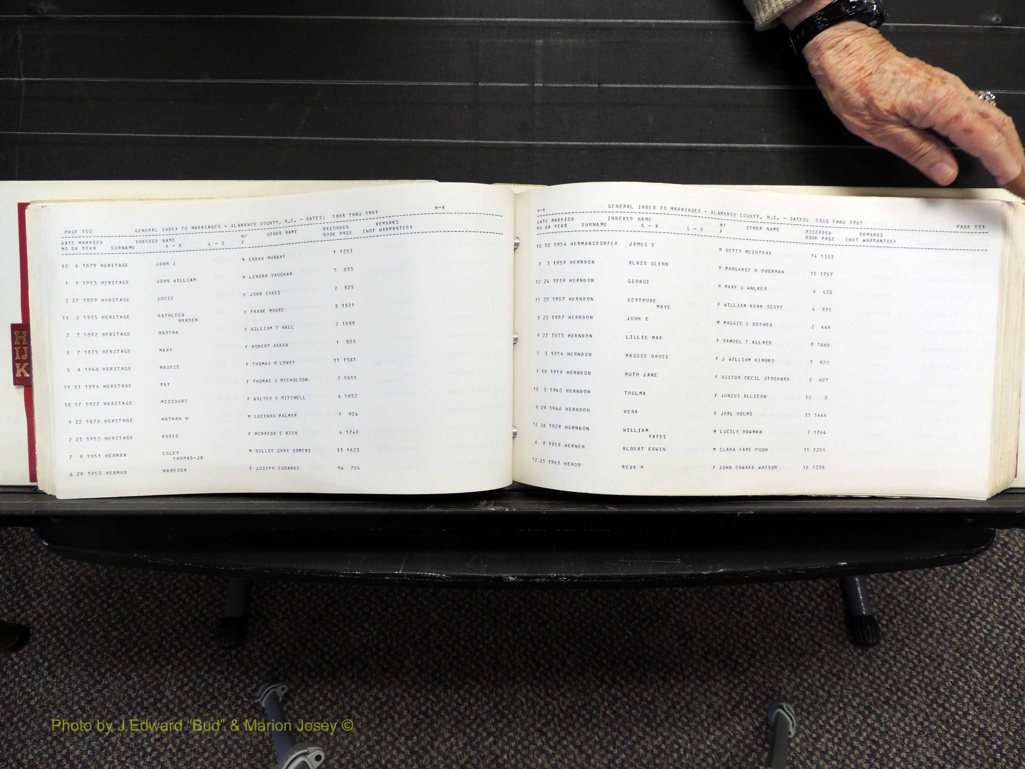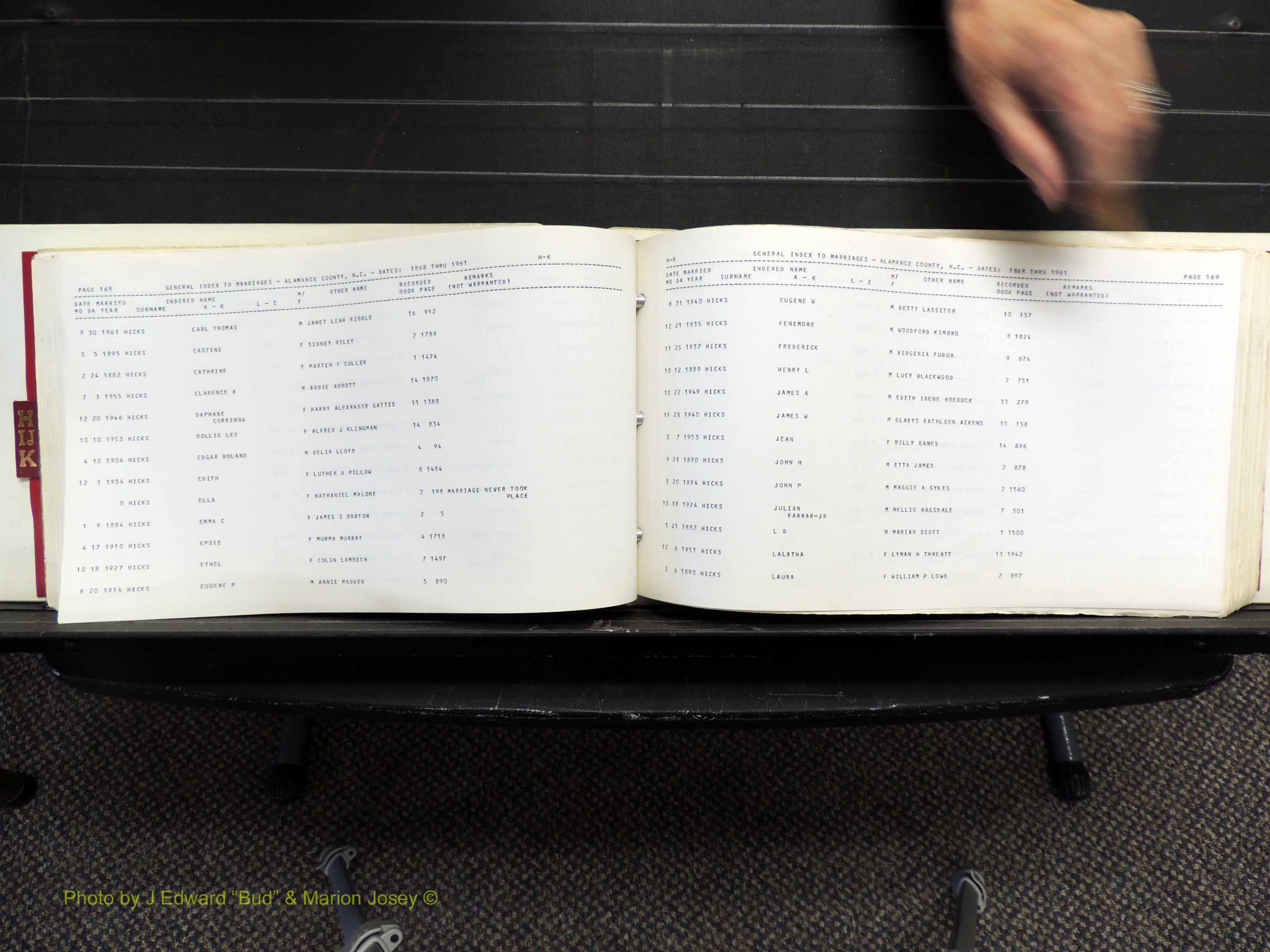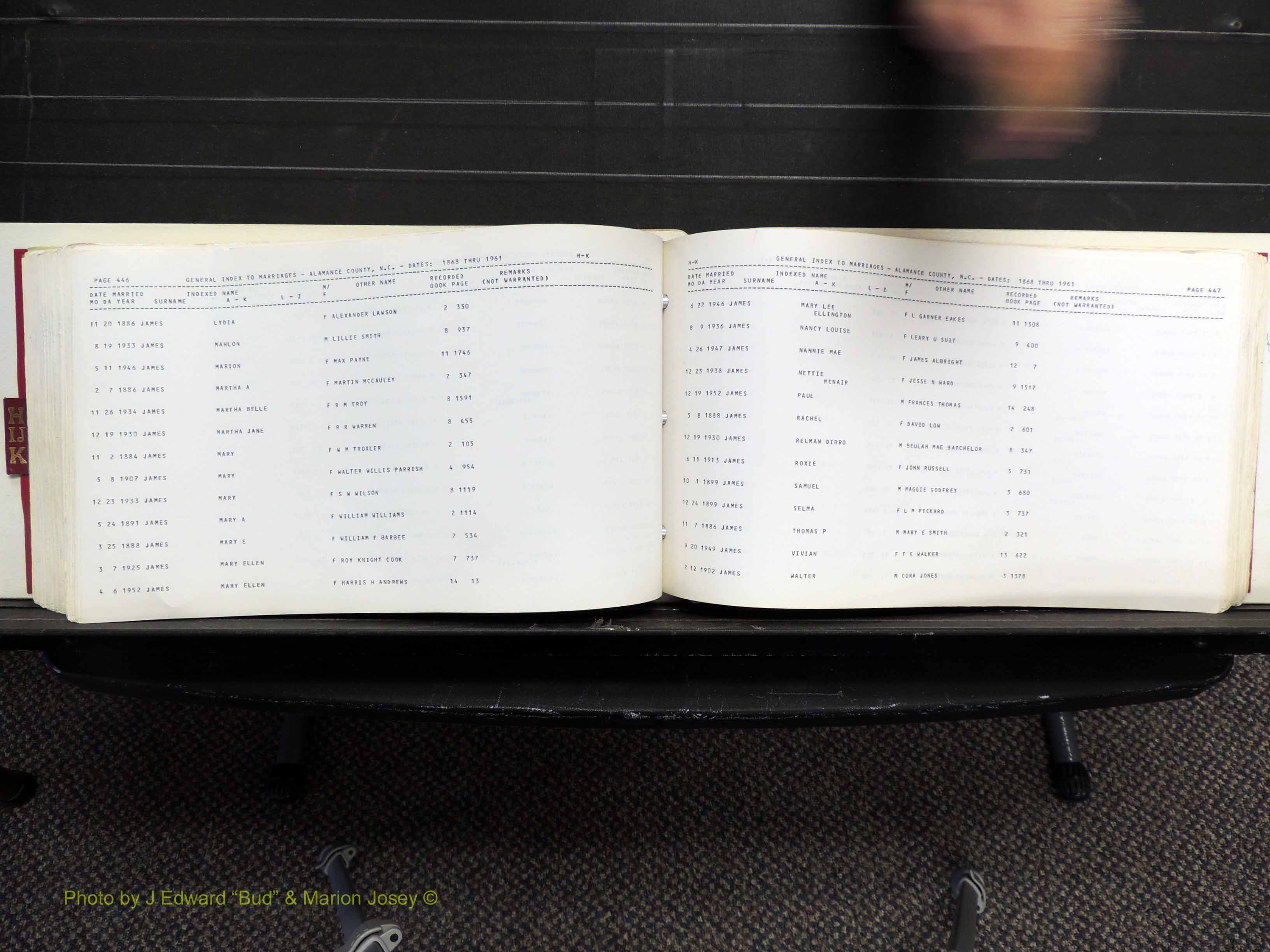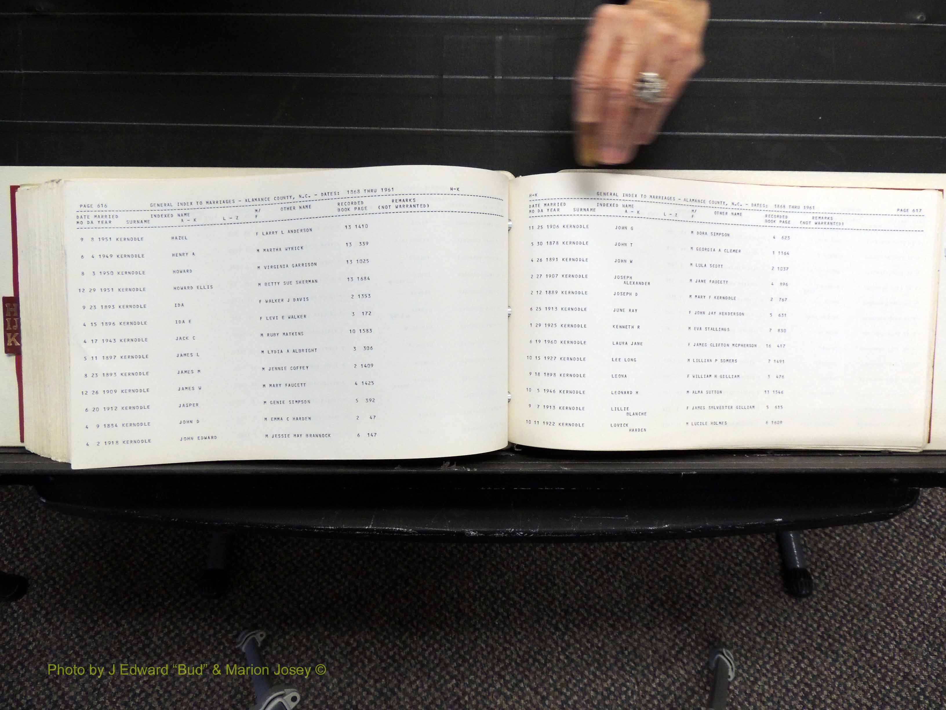 Index of /Alamance Co, NC, Marriages Births & Deaths/Alamance Co, NC, Marriages, H-K, 1868-1961