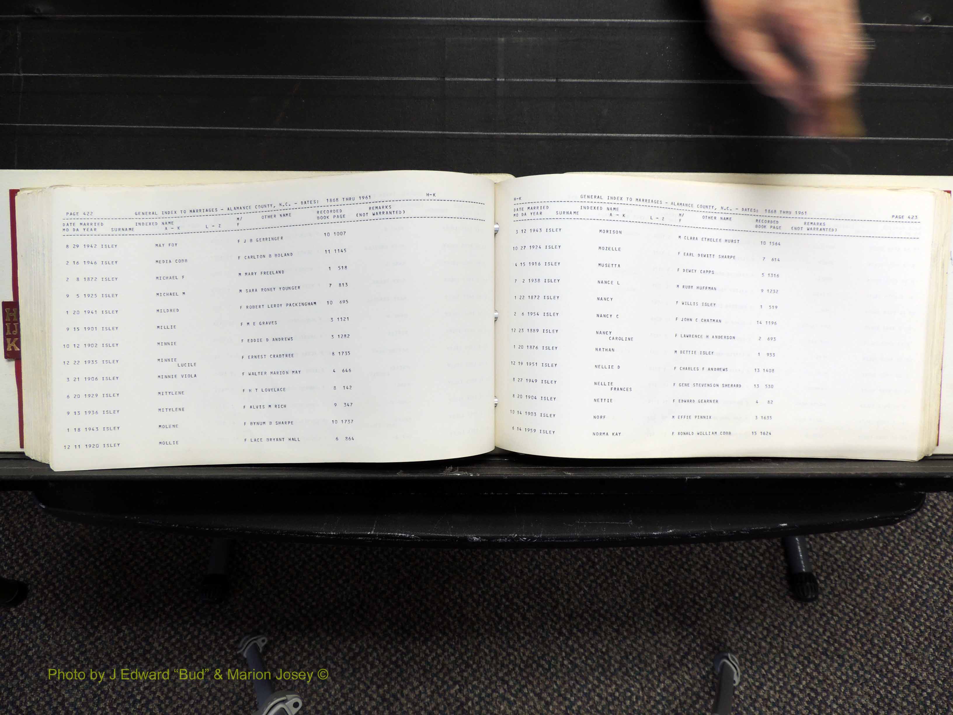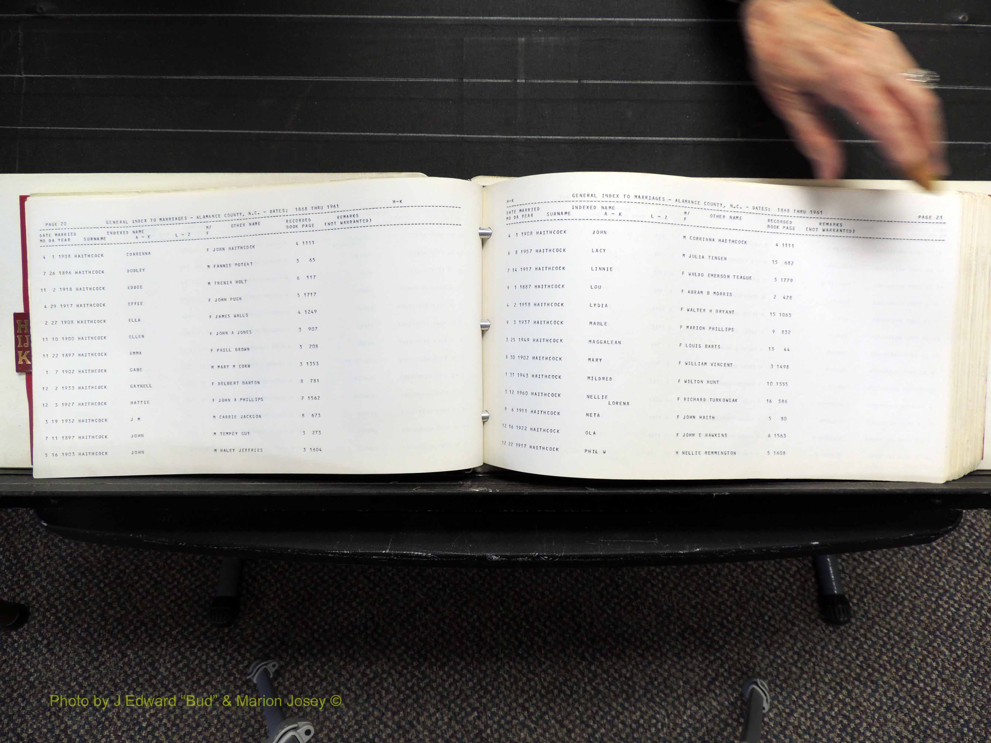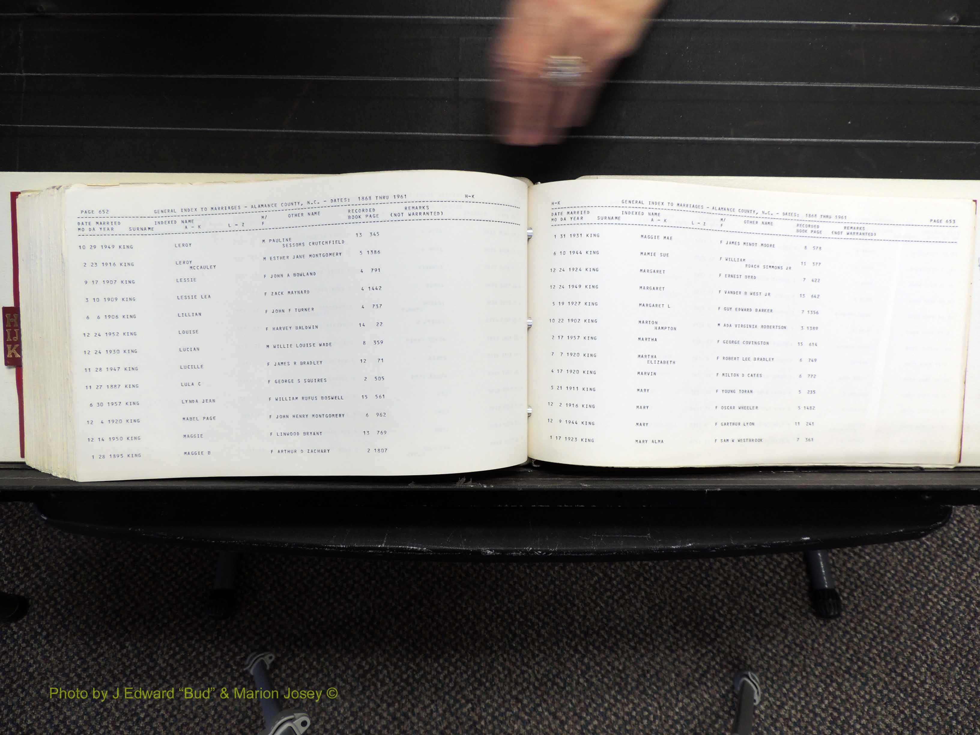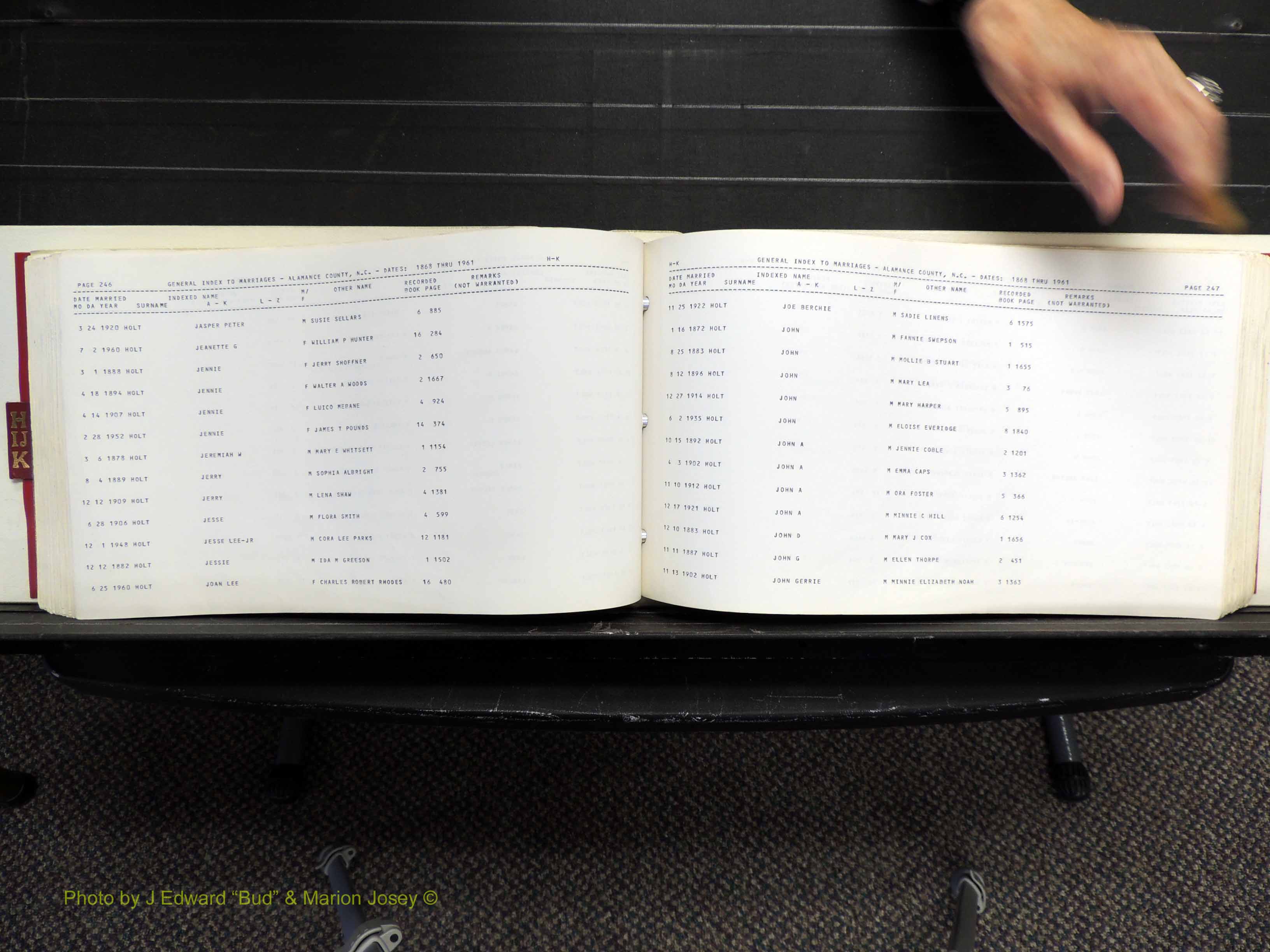 Index of /Alamance Co, NC, Marriages Births & Deaths/Alamance Co, NC, Marriages, H-K, 1868-1961