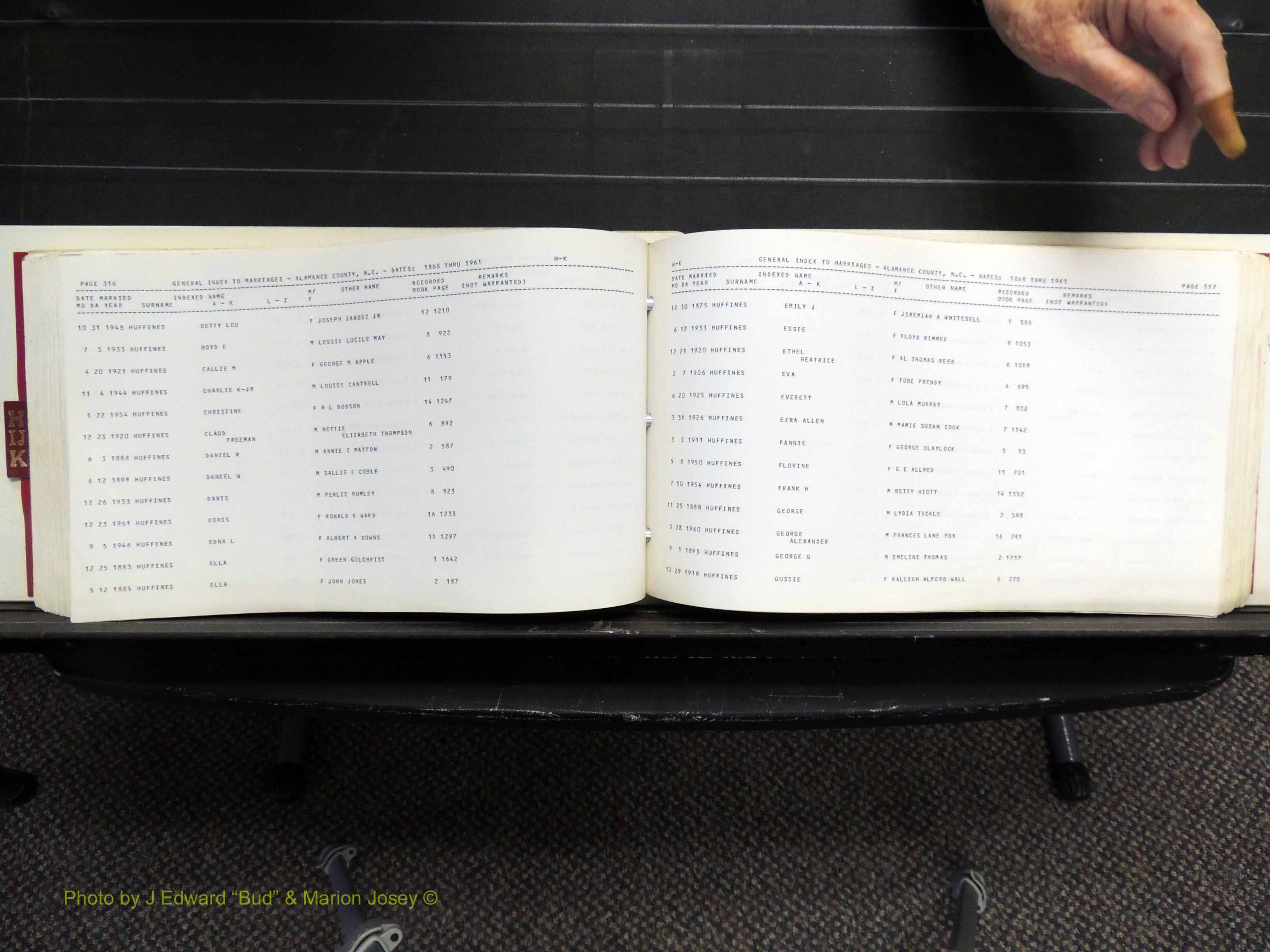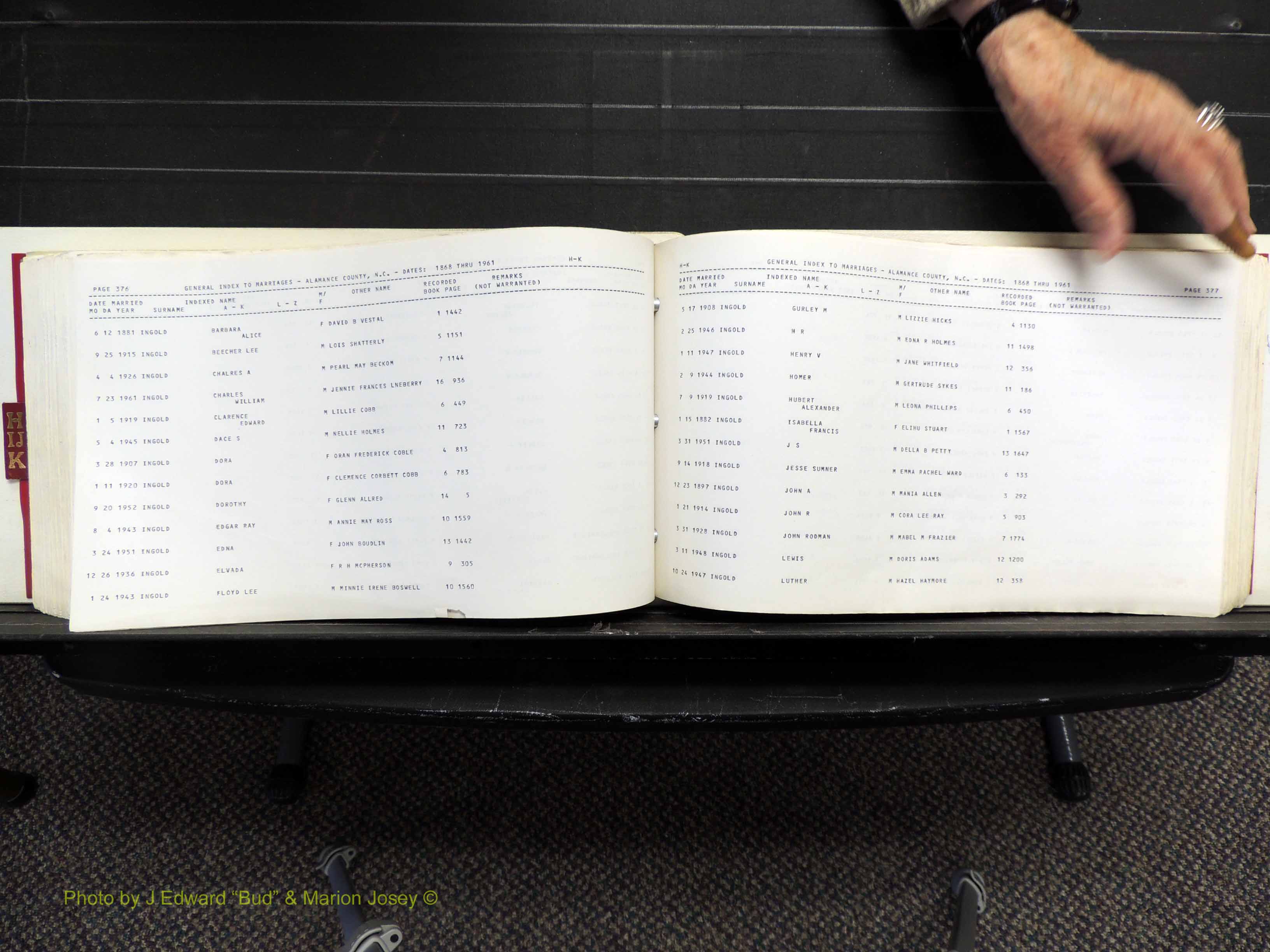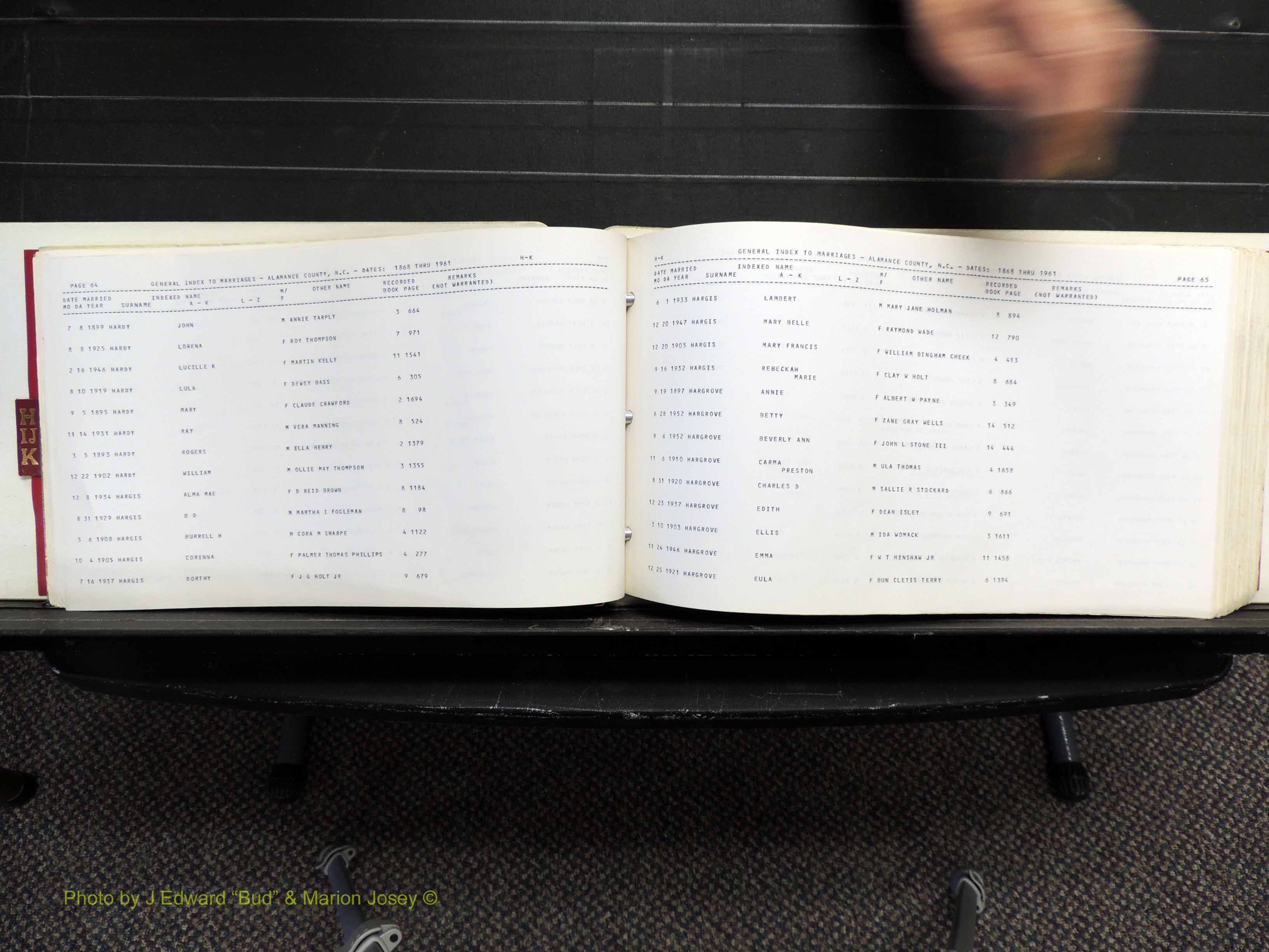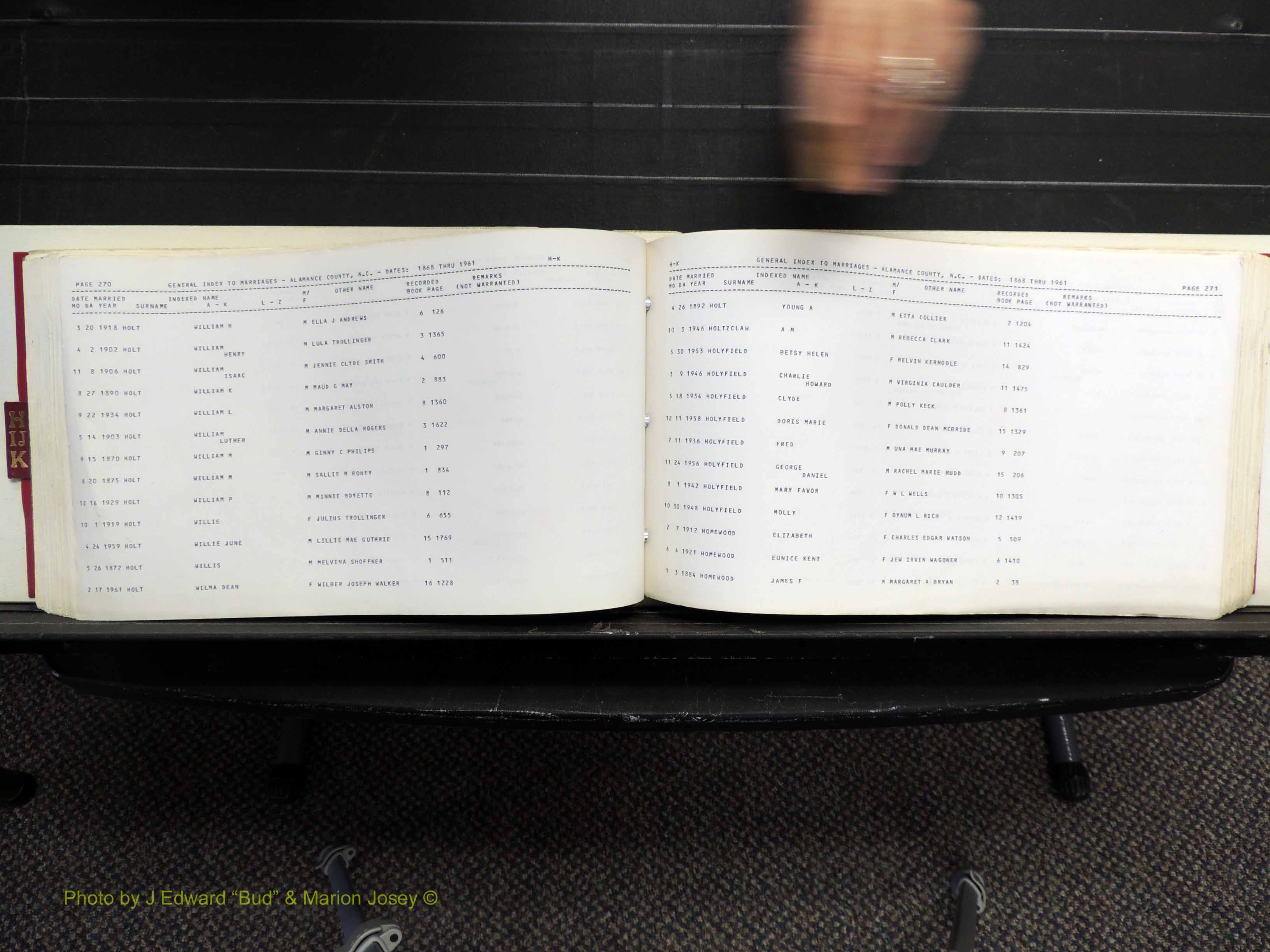 Index of /Alamance Co, NC, Marriages Births & Deaths/Alamance Co, NC, Marriages, H-K, 1868-1961
