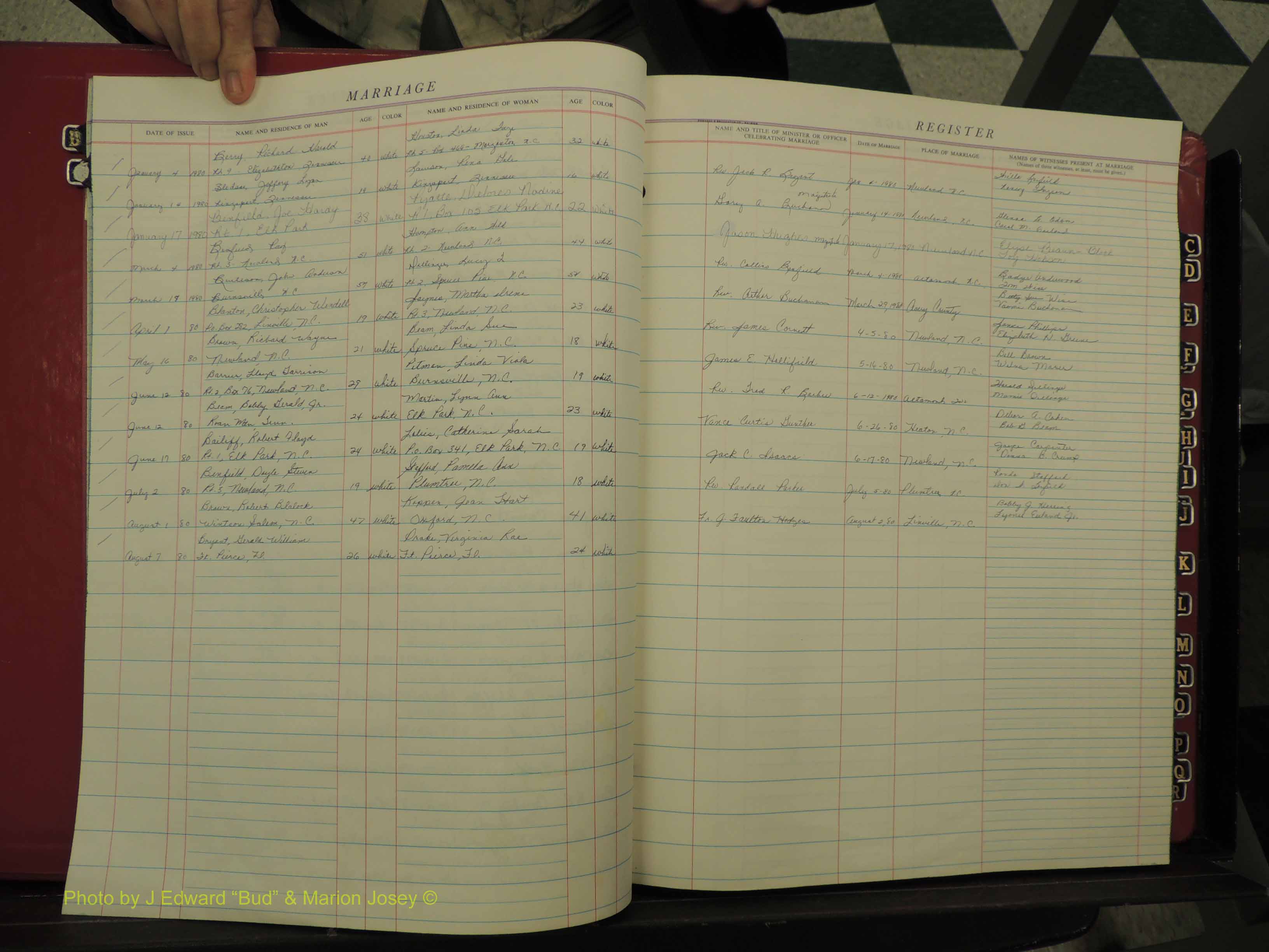 Index of /Avery Co, NC, Marriages, Births & Deaths/Avery Co, NC, Marriage Book 7, 1977-1980