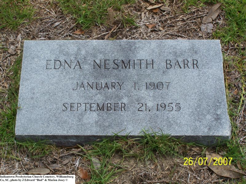 Barr, Edna Nesmith, Indiantown Presbyterian Church Cemetery, Williamsburg Co, SC 216.jpg