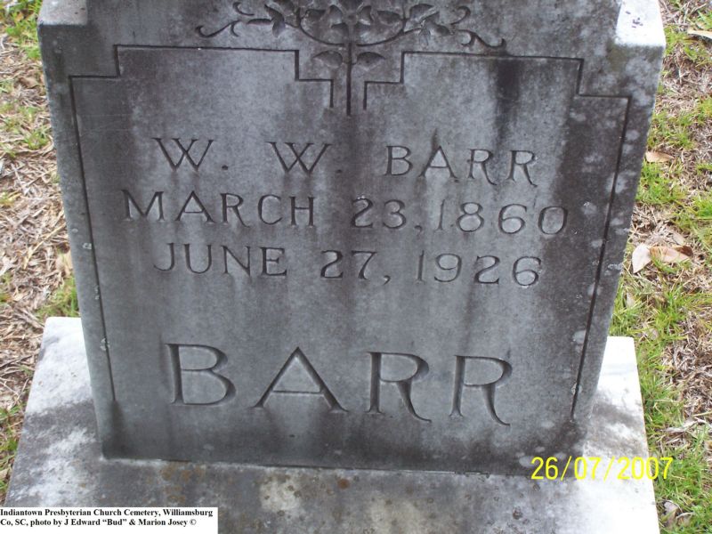 Barr, W. W, Indiantown Presbyterian Church Cemetery, Williamsburg Co, SC 217.jpg