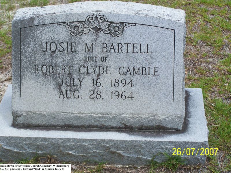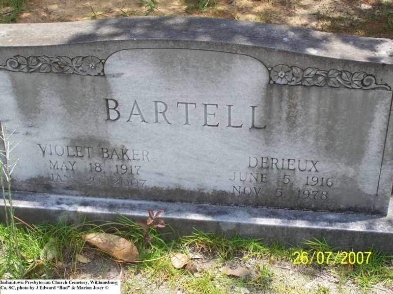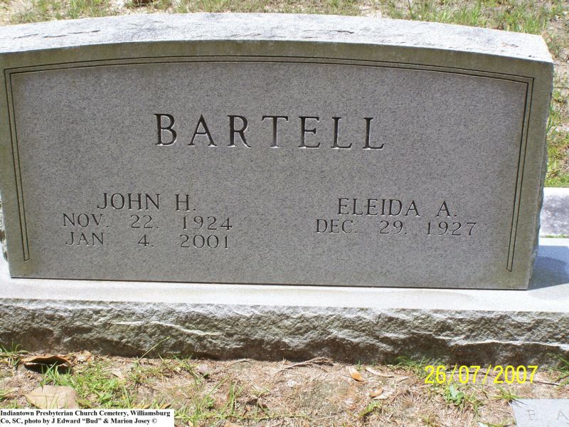 Bartell, John H & Elfida A, Indiantown Presbyterian Church Cemetery, Williamsburg Co, SC 356.jpg
