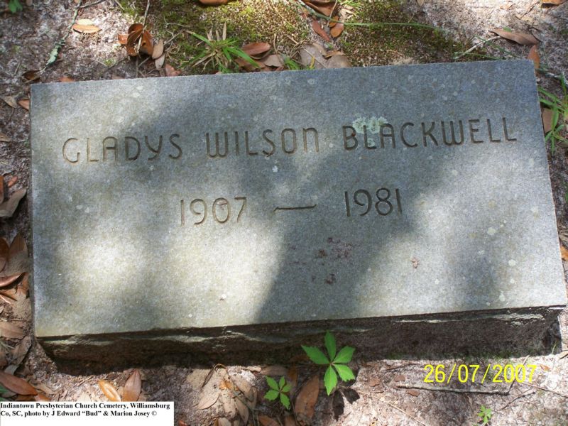 Blackwell, Gladys Wilson, Indiantown Presbyterian Church Cemetery, Williamsburg Co, SC 507.jpg