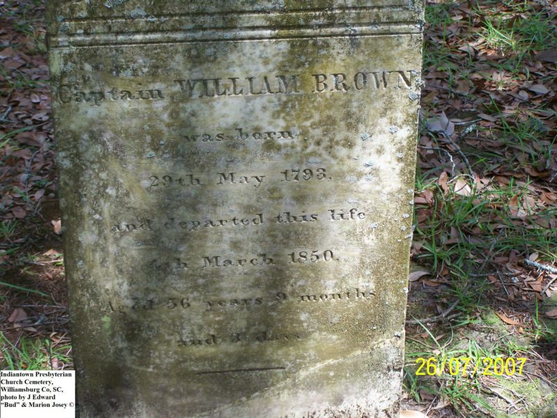 Brown, Captain William, Indiantown Presbyterian Church Cemetery, Williamsburg Co, SC 607.jpg