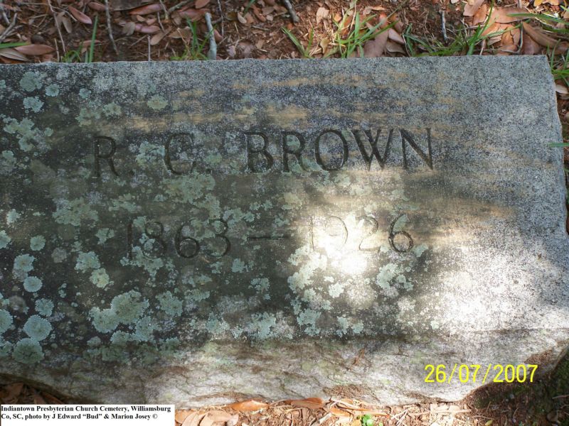 Brown, R. C, Indiantown Presbyterian Church Cemetery, Williamsburg Co, SC 604.jpg