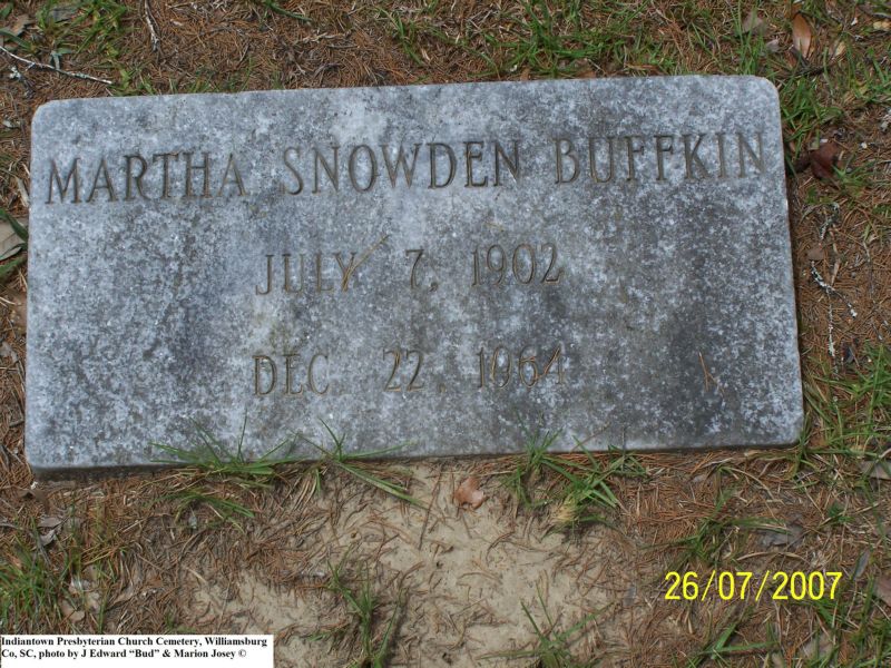 Buffkin, Martha Snowden, Indiantown Presbyterian Church Cemetery, Williamsburg Co, SC 415.jpg