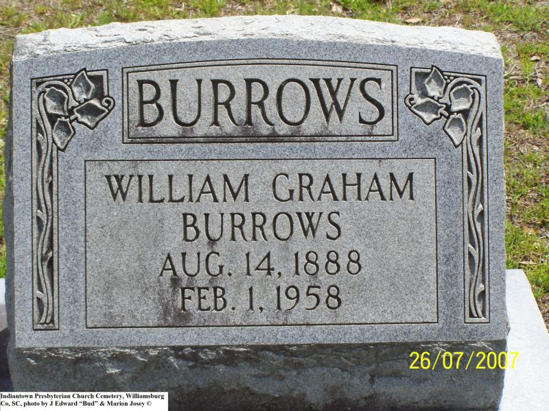 Burrows, William Graham, Indiantown Presbyterian Church Cemetery, Williamsburg Co, SC 253.jpg