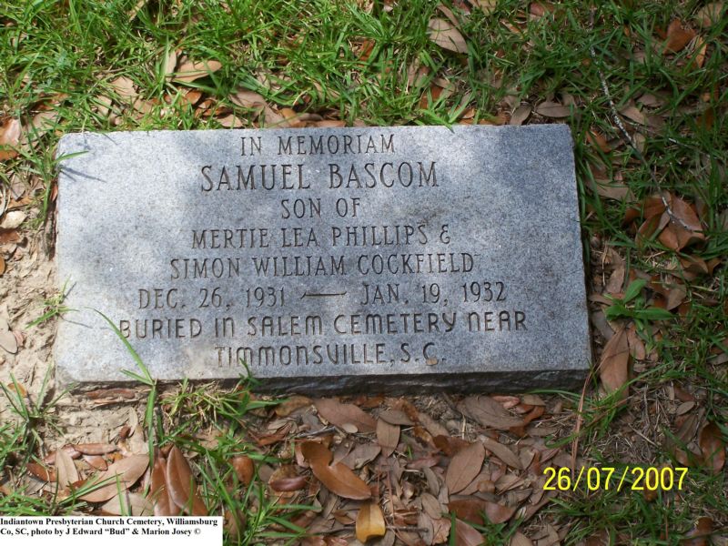 Bartell, Infant Son, Indiantown Presbyterian Church Cemetery, Williamsburg Co, SC 351.jpg