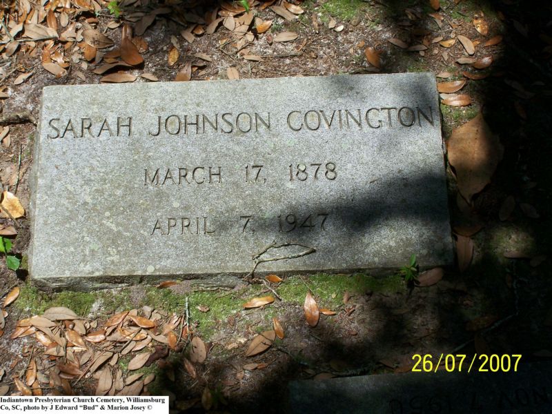 Barr, Sarah Gotes, Indiantown Presbyterian Church Cemetery, Williamsburg Co, SC 169.jpg