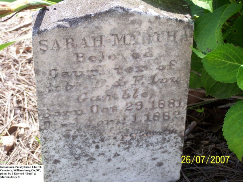 Watson, Sarah M, Indiantown Presbyterian Church Cemetery, Williamsburg Co, SC 719.jpg