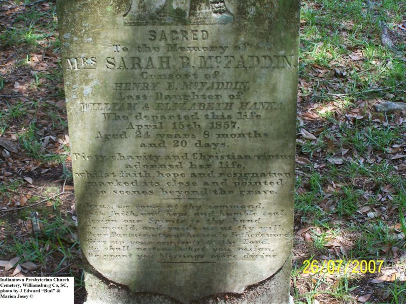Wilson, Mary Hanna, Indiantown Presbyterian Church Cemetery, Williamsburg Co, SC 716.jpg