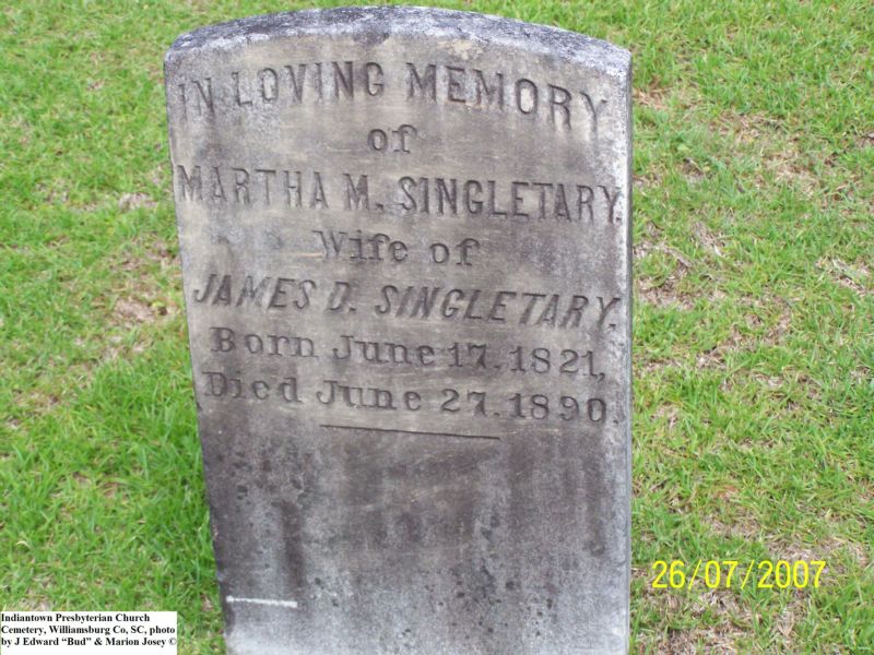 Wilson, Margaret Jane, Indiantown Presbyterian Church Cemetery, Williamsburg Co, SC 041.jpg