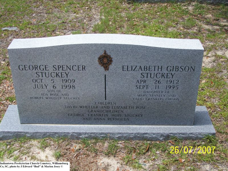 Stuckey, George Spencer & Elizabeth Gibson, Indiantown Presbyterian Church Cemetery, SC 425.jpg