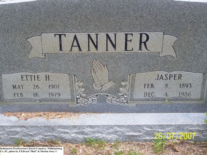 Tanner, Jasper & Ettie H, Indiantown Presbyterian Church Cemetery, Williamsburg Co, SC 557.jpg