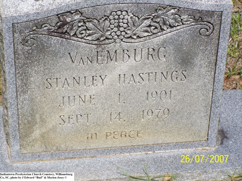 VanEmburg, Stanley Hastings, Indiantown Presbyterian Church Cemetery, Williamsburg Co, SC 114.jpg