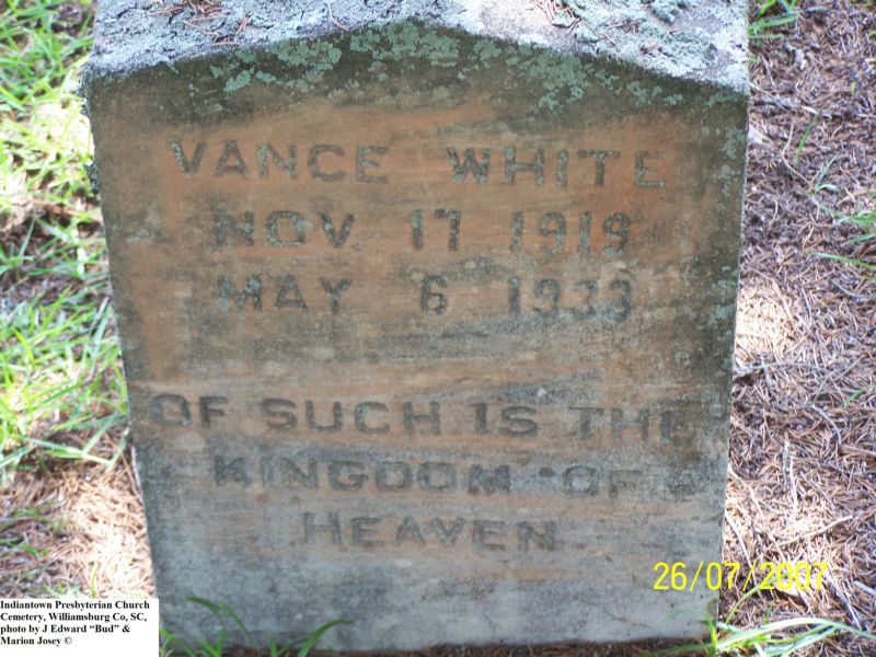 White, Vance, Indiantown Presbyterian Church Cemetery, Williamsburg Co, SC 158.jpg