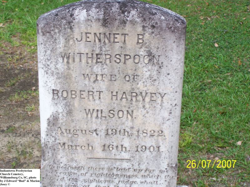Wilson, Jennet B Witherspoon, Indiantown Presbyterian Church Cemetery, Williamsburg Co, SC 676.jpg
