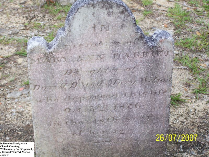 Wilson, Mary Ann Harriet, Indiantown Presbyterian Church Cemetery, Williamsburg Co, SC 677.jpg