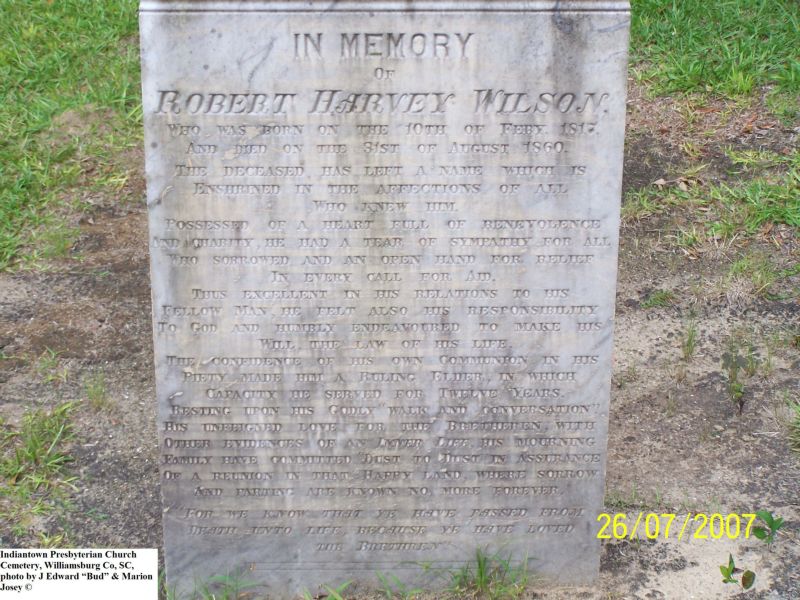 Wilson, Robert Harvey, Indiantown Presbyterian Church Cemetery, Williamsburg Co, SC 680.jpg