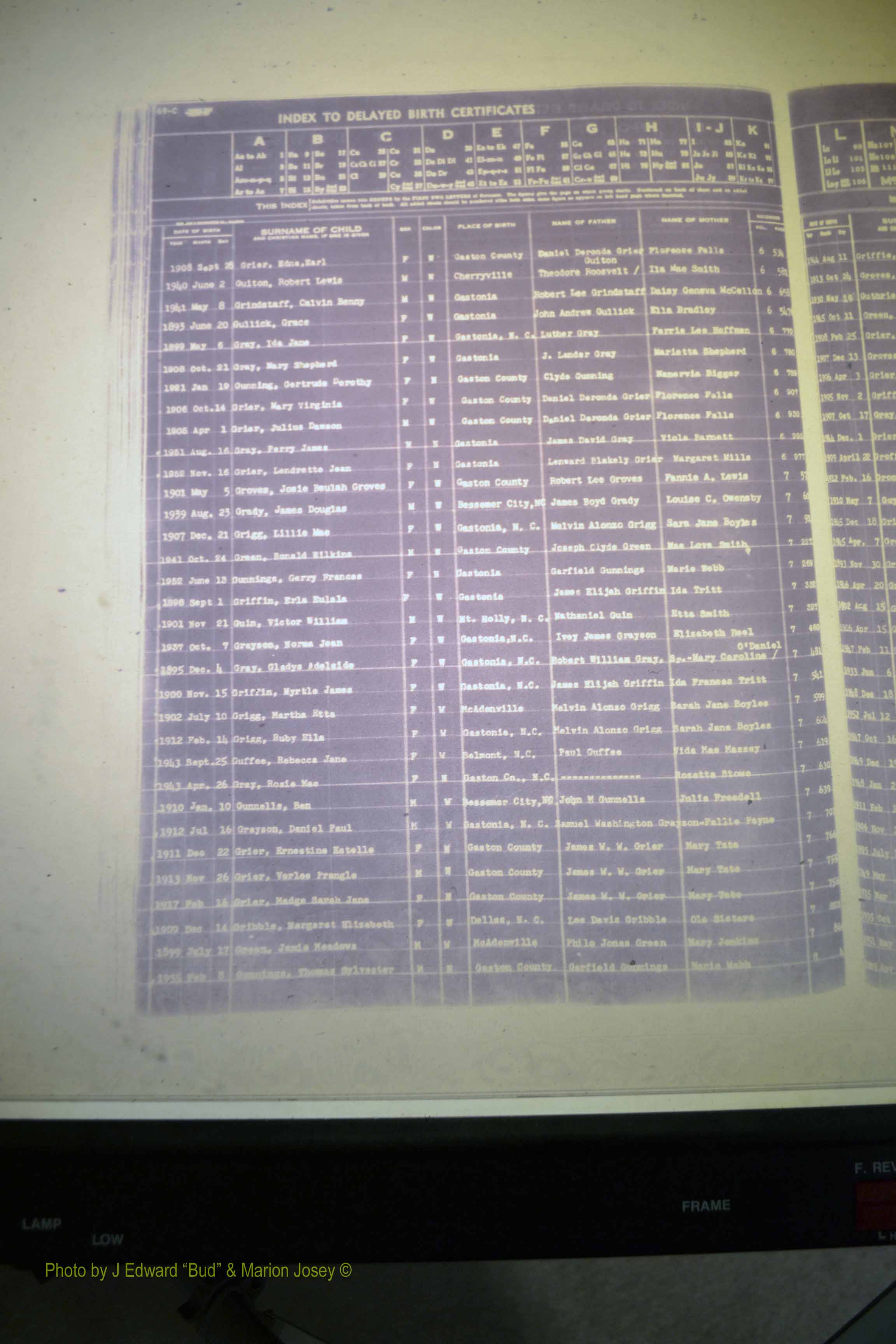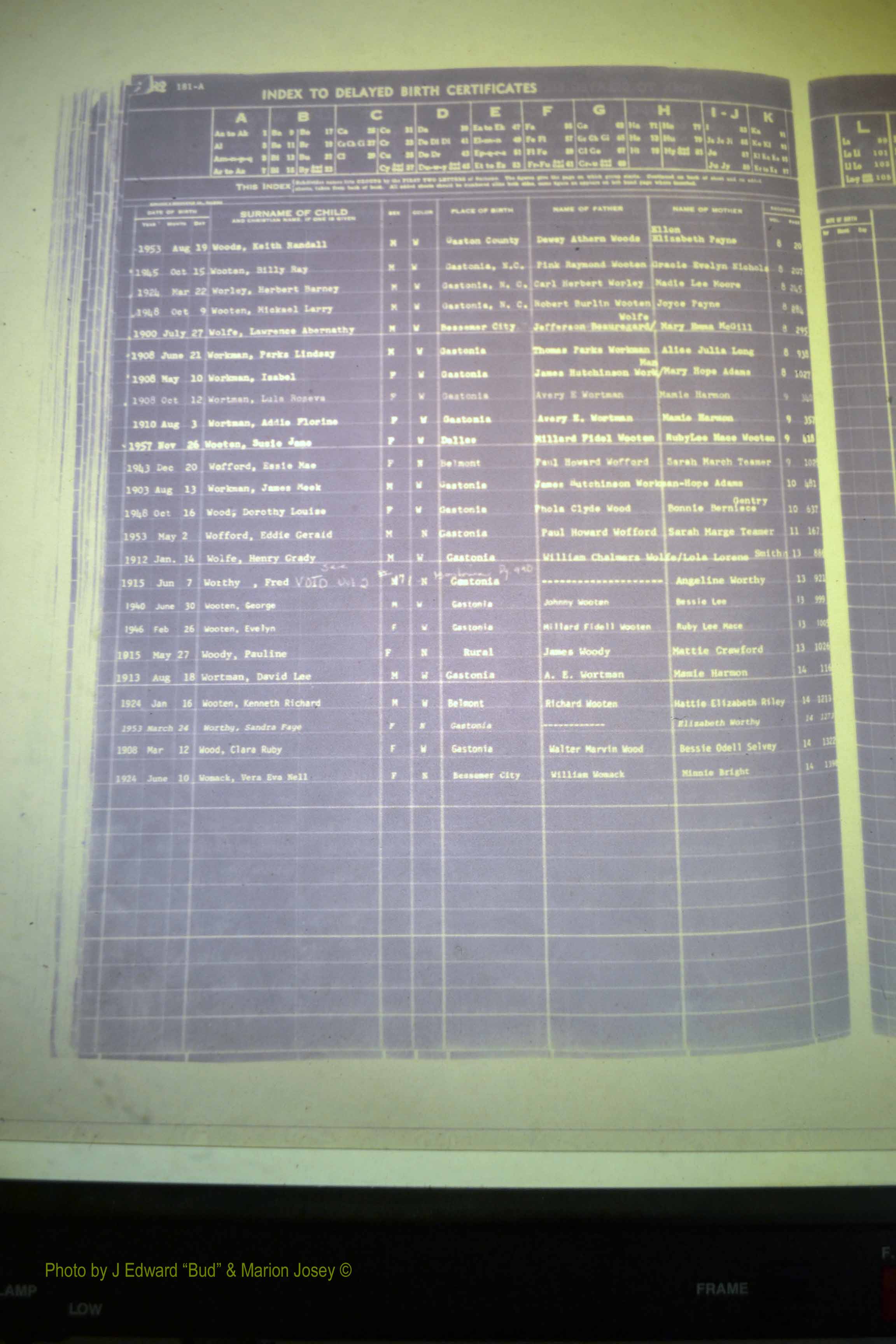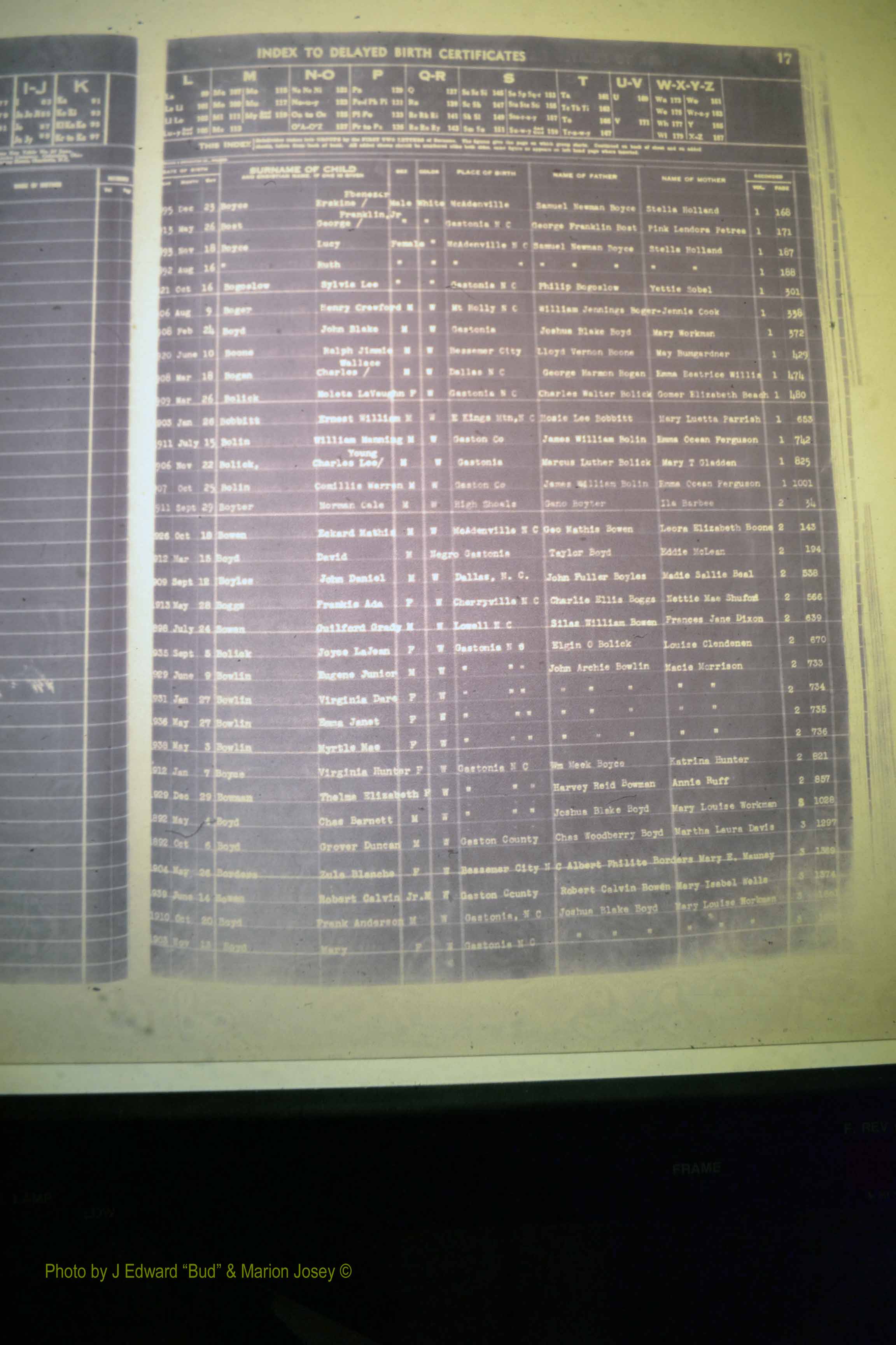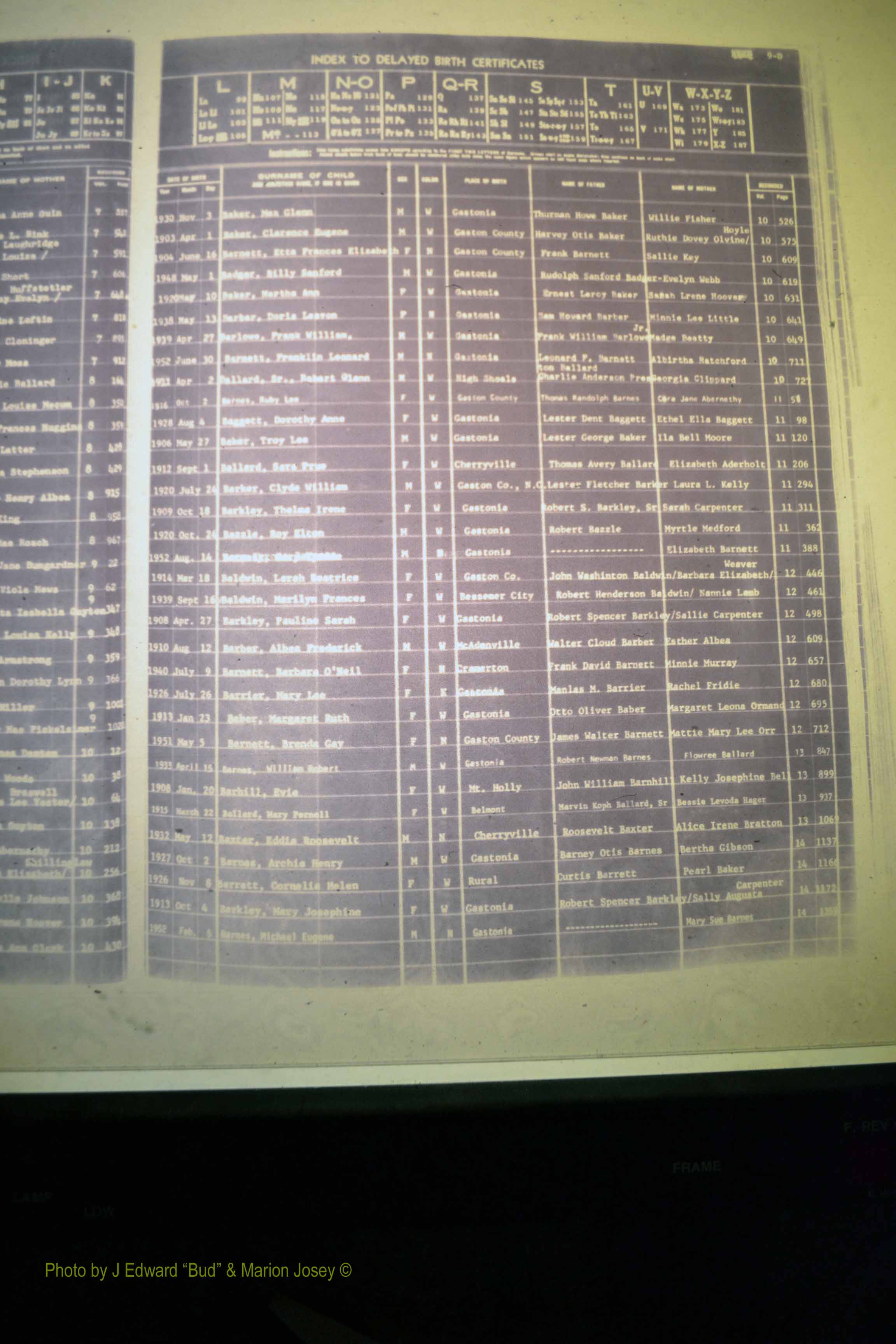 Index of /Gaston Co, NC, Births, Delayed & 1913-1991/Gaston Co, NC, Births, Delayed