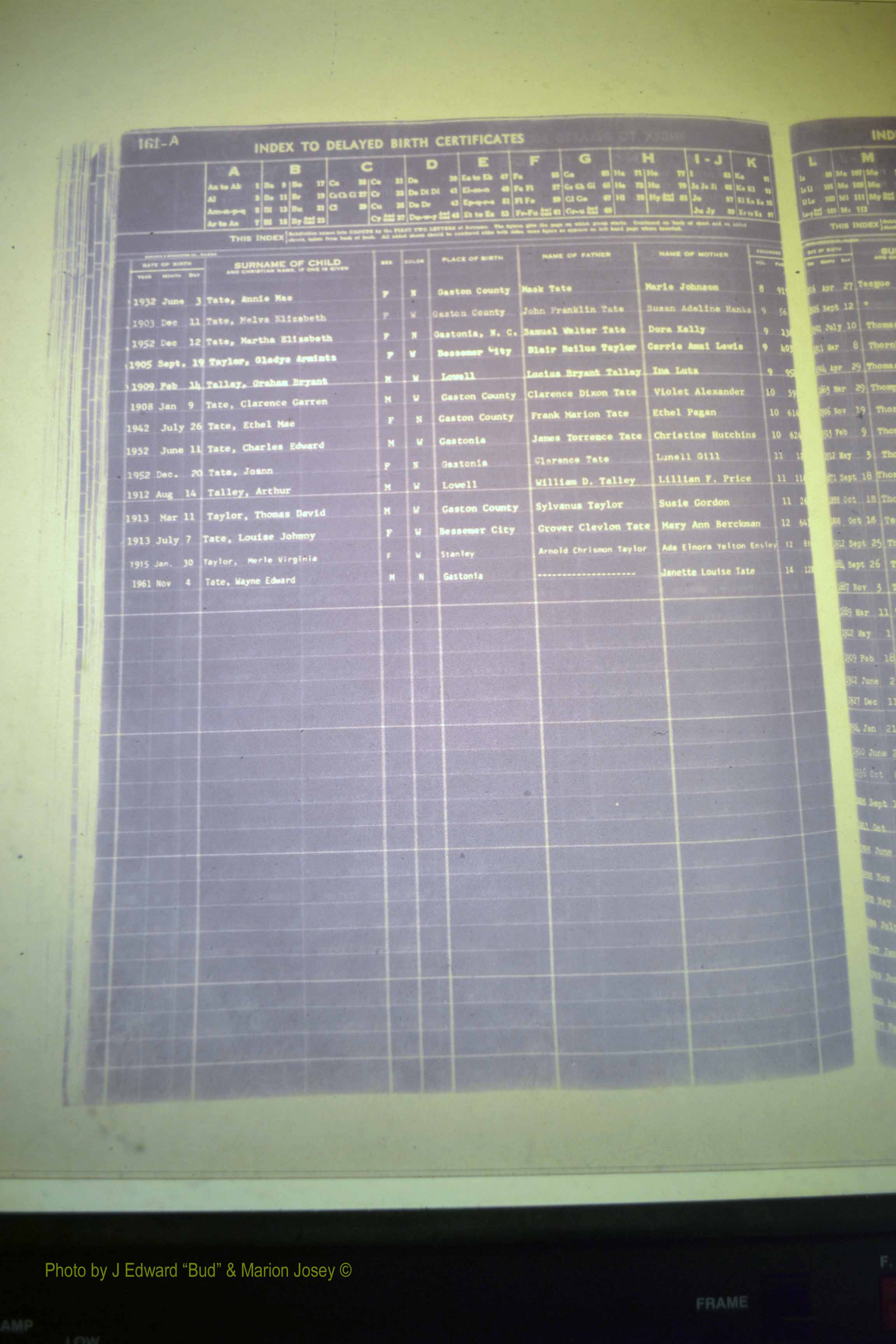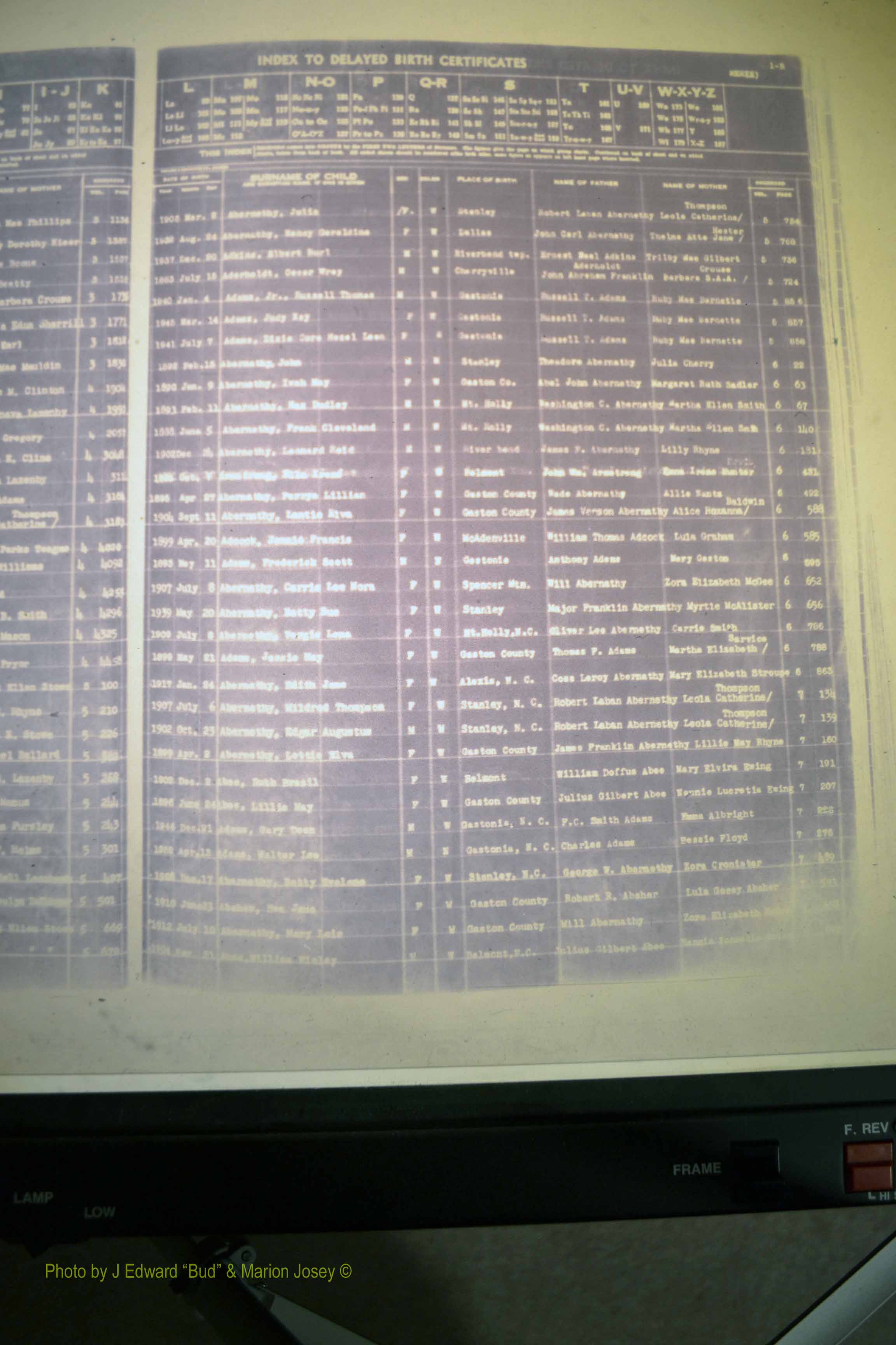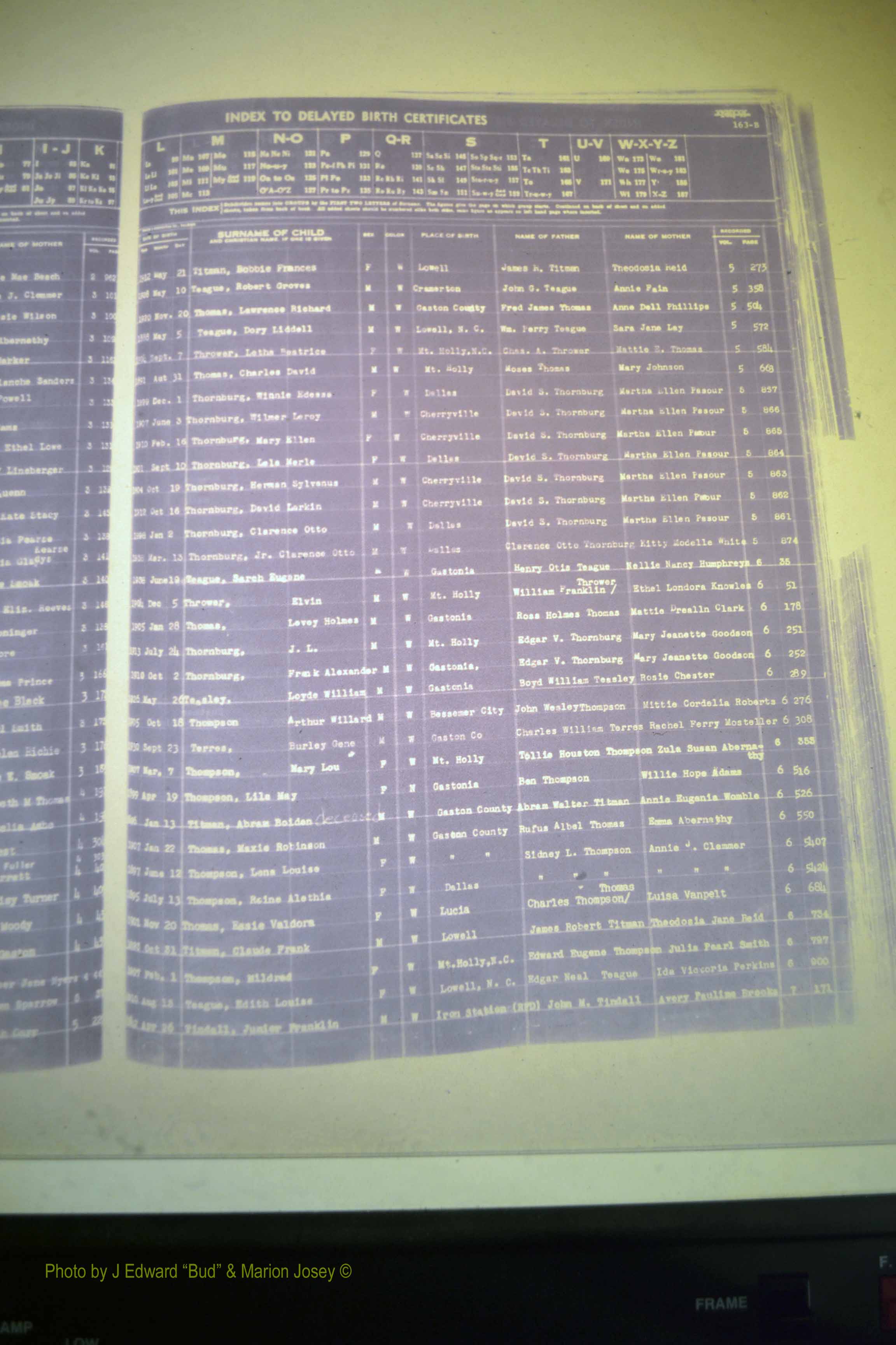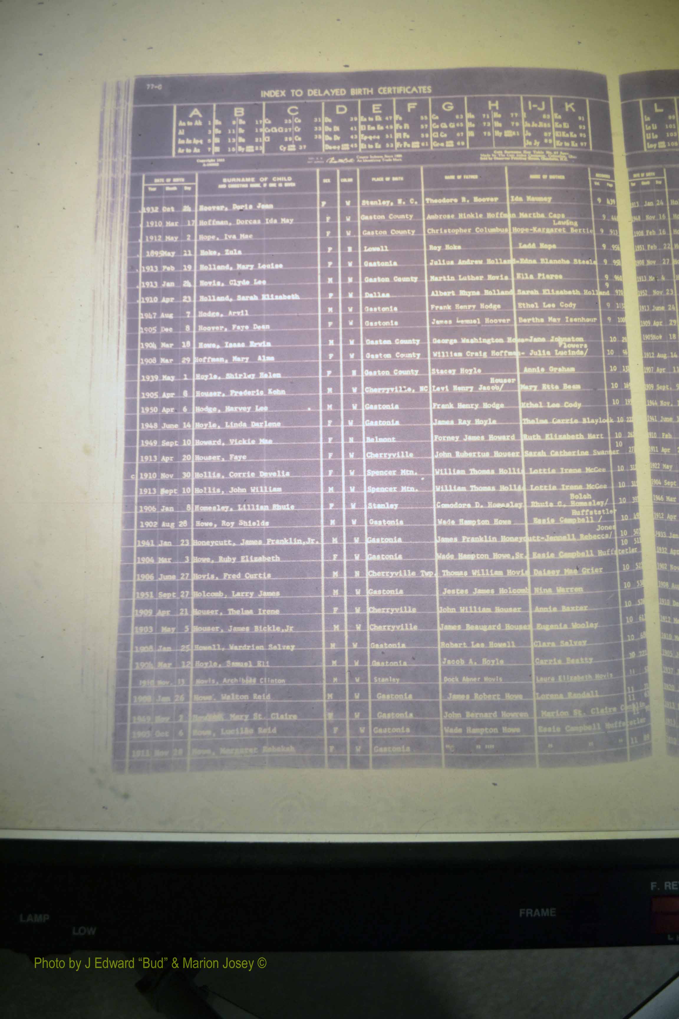 Index of /Gaston Co, NC, Births, Delayed & 1913-1991/Gaston Co, NC, Births, Delayed