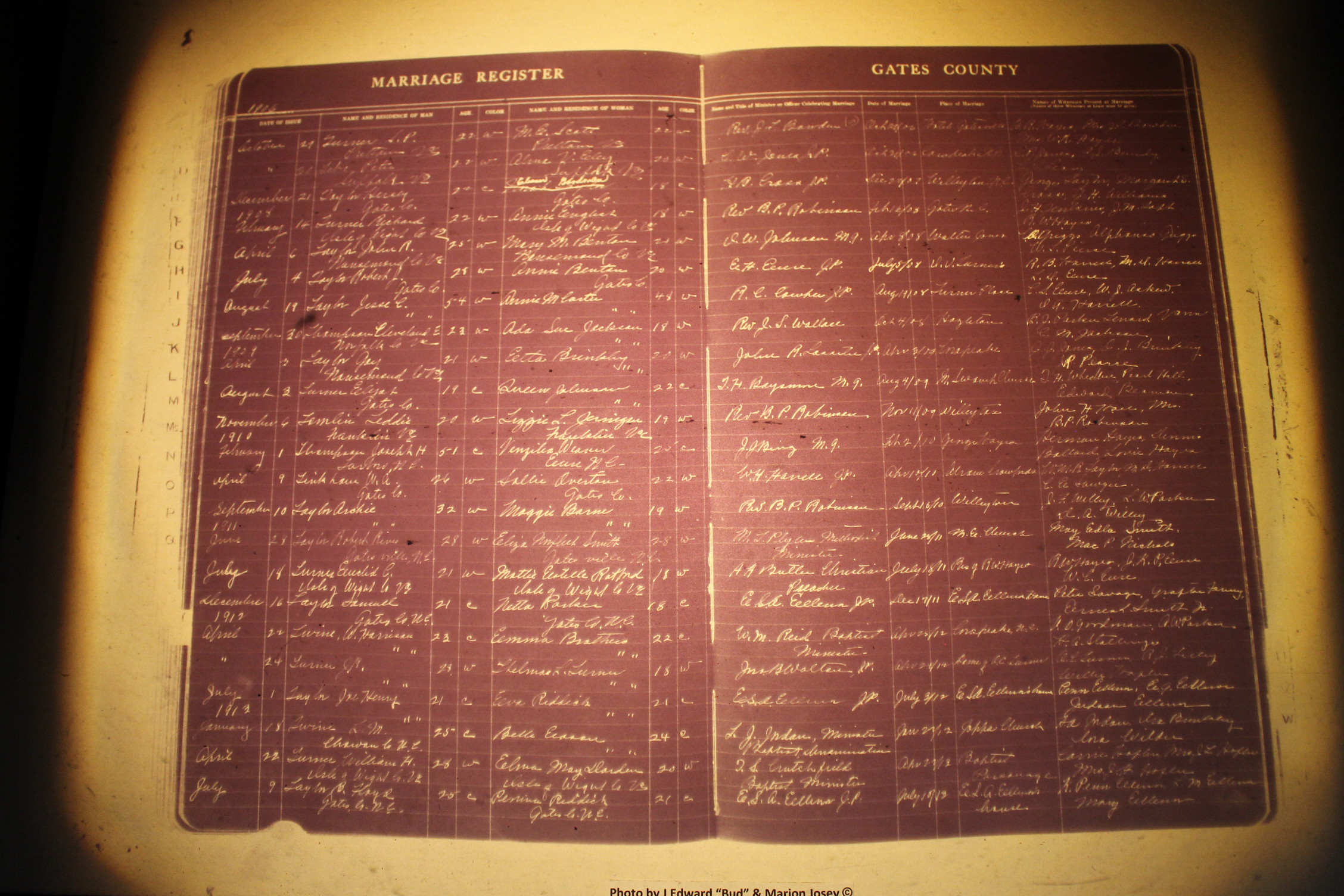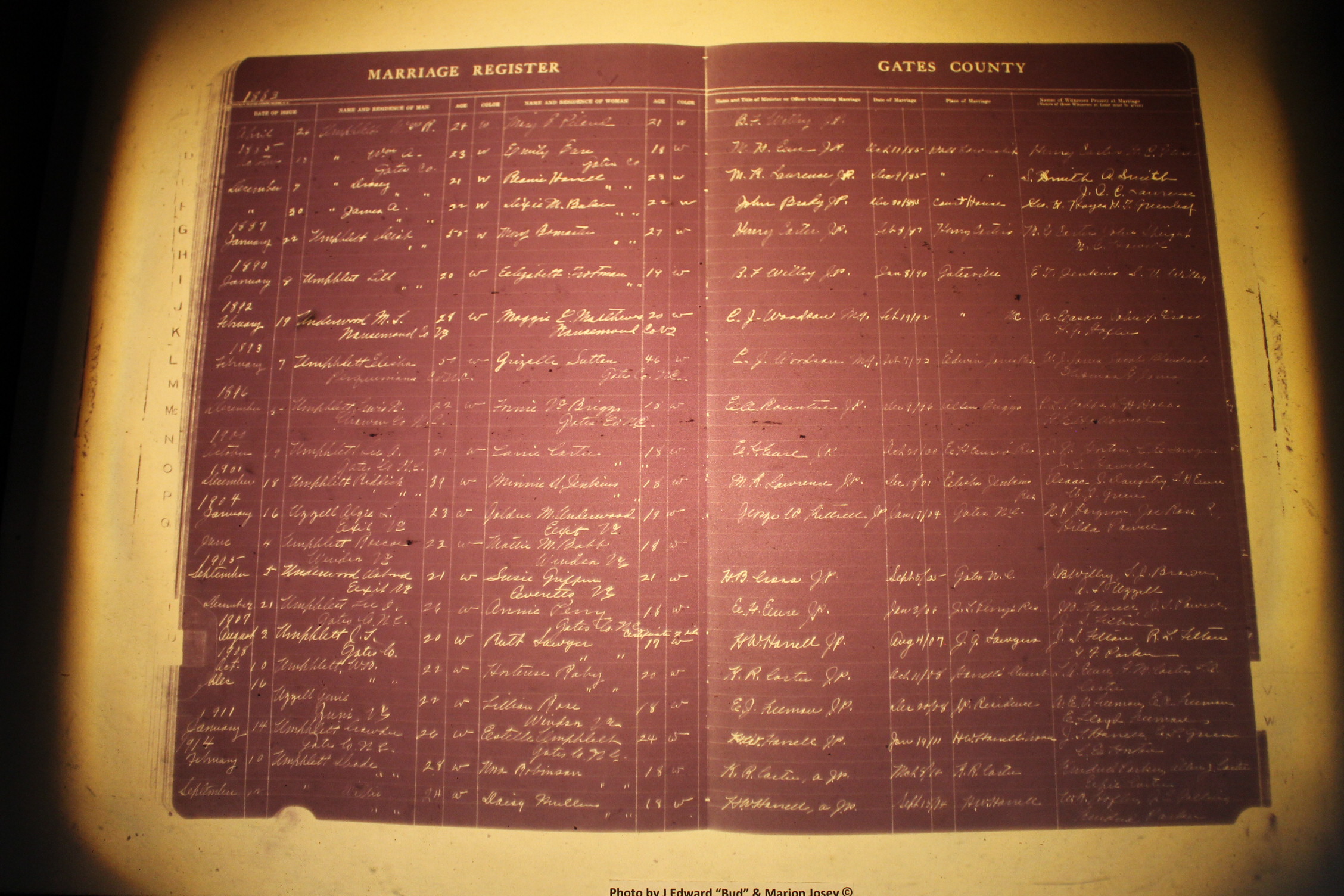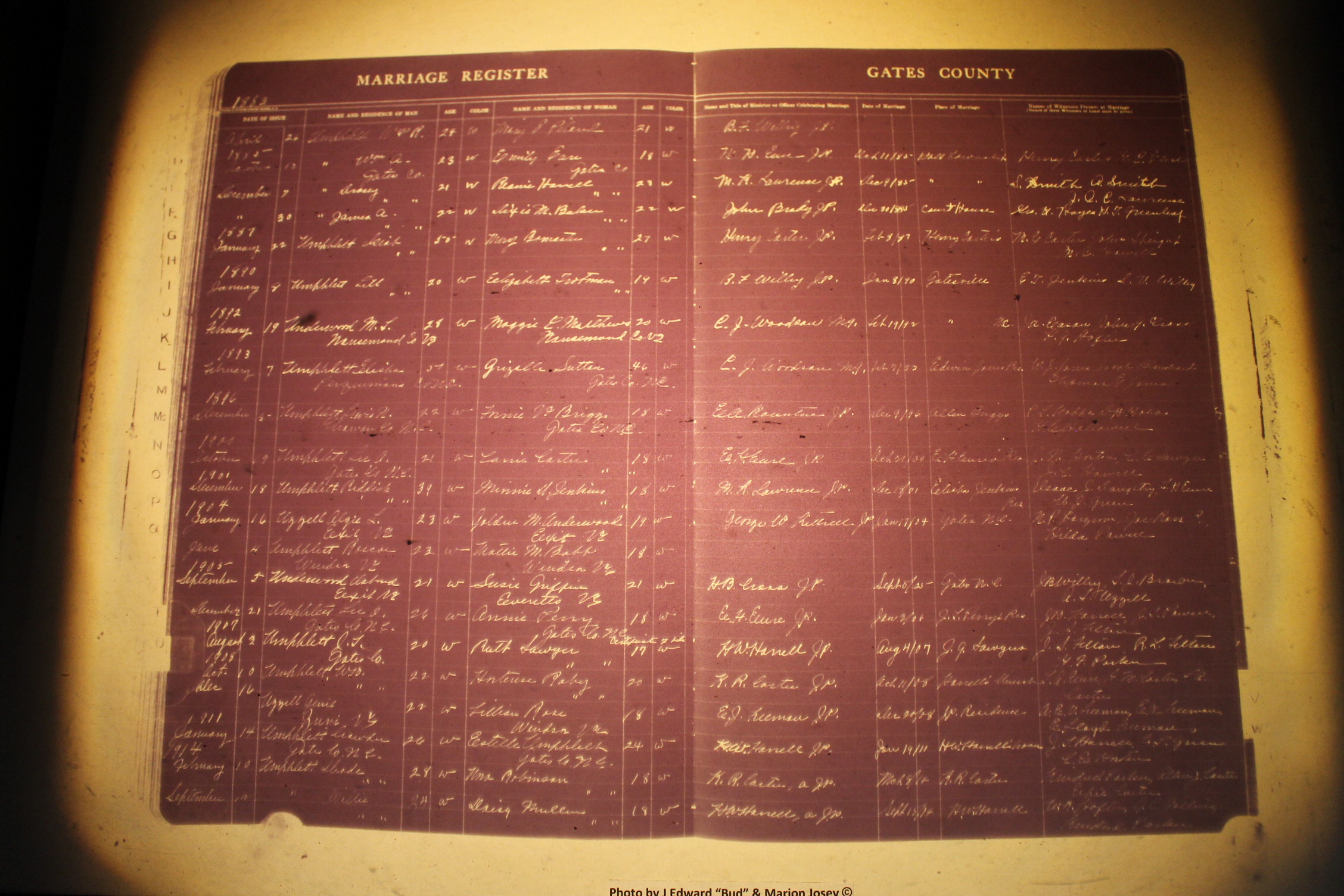 Index of /Gates Co, NC, Births & Deaths, 1913-1964/Gates Co, NC, Marriages, 1883-1923