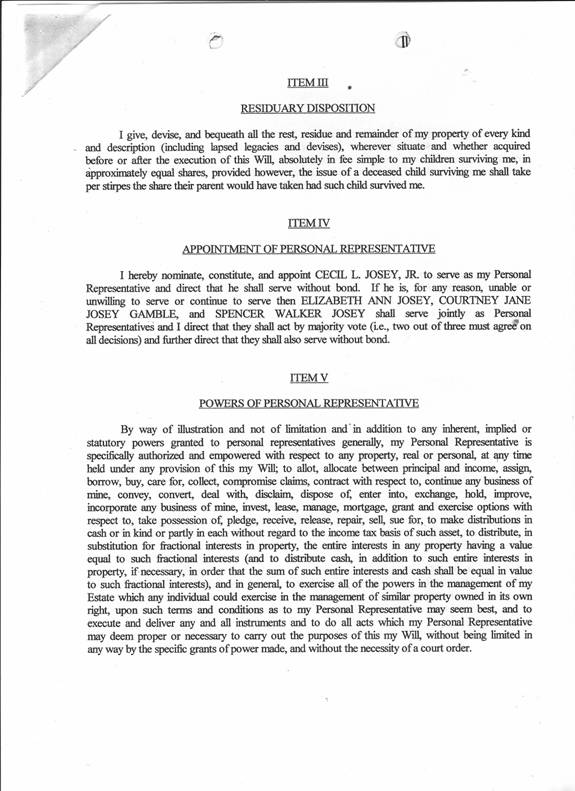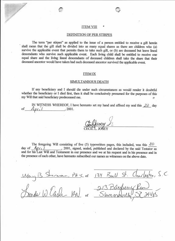Cecil Lorraine Josey, Will, Lee Co, SC, 20 April 2001