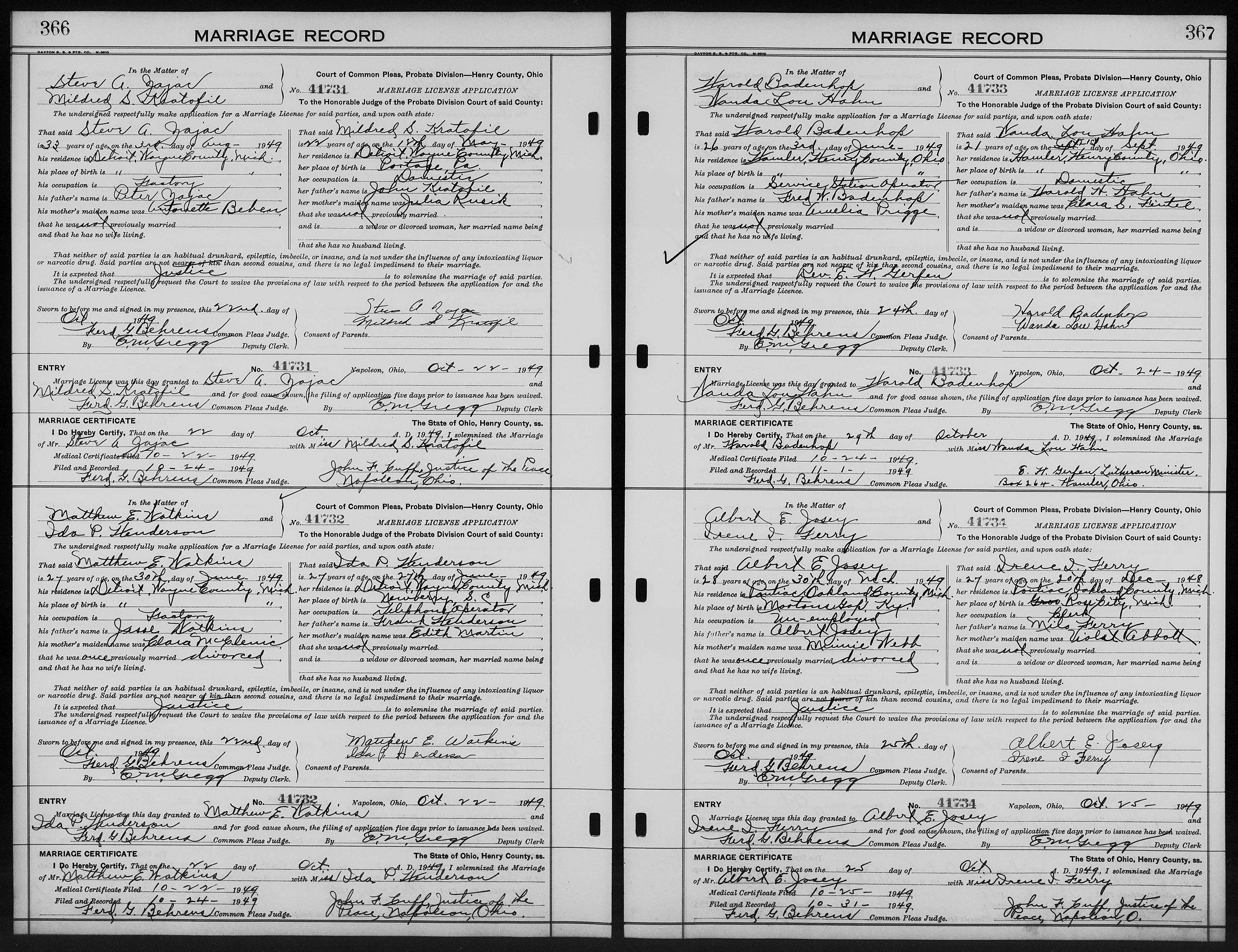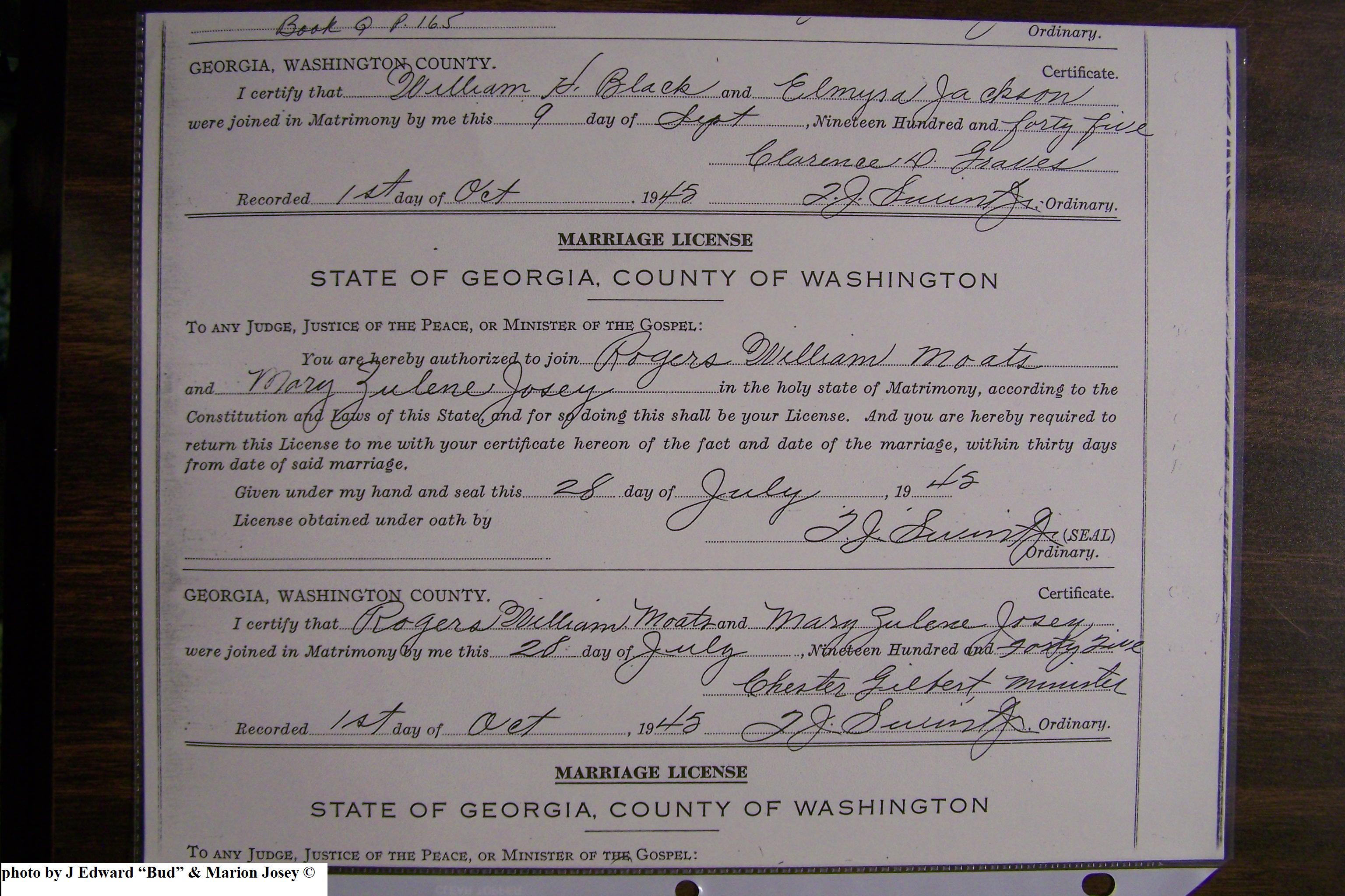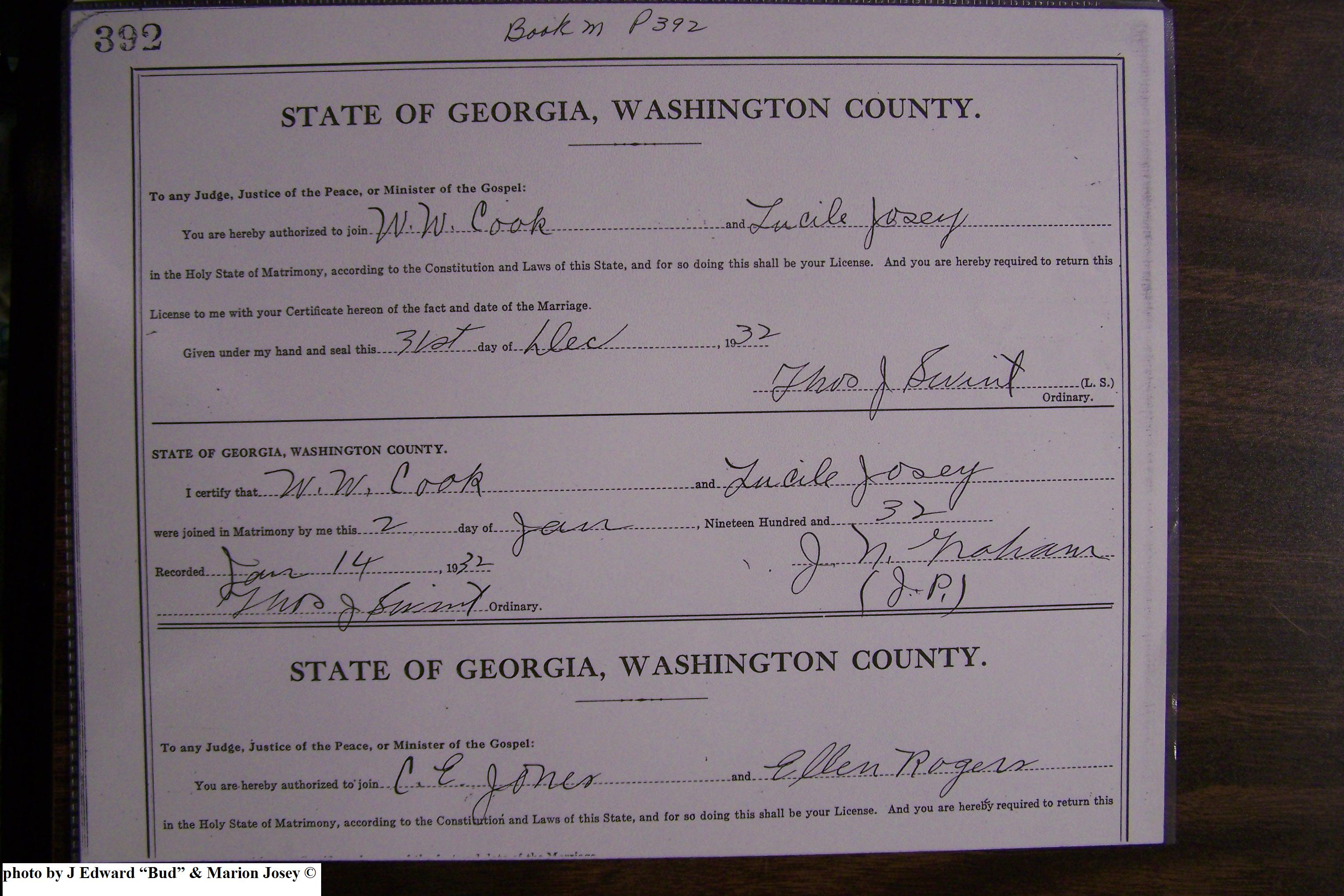 Josey, Ronnie Ollis & Violet Mae Price, Marriage Lic 083.JPG