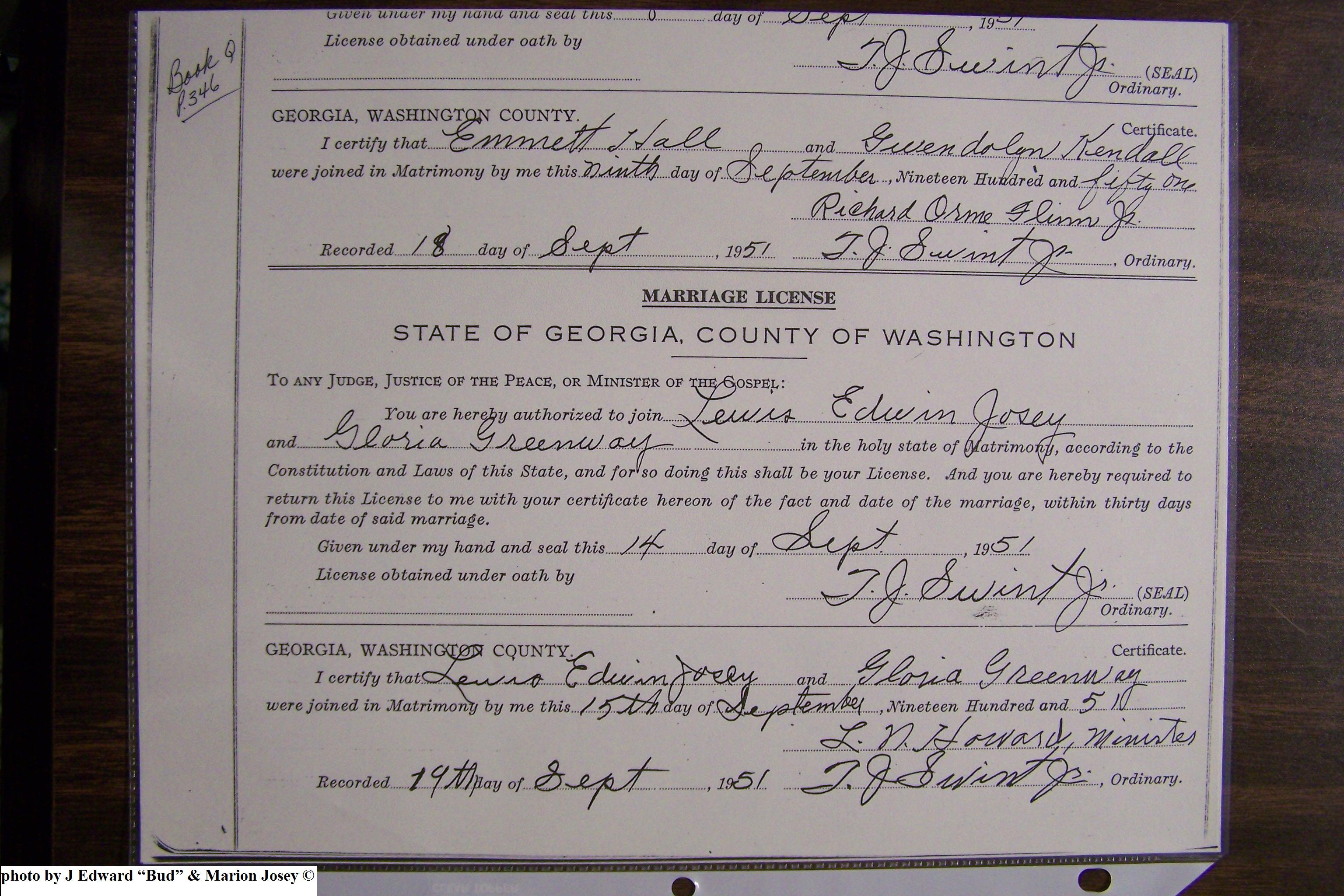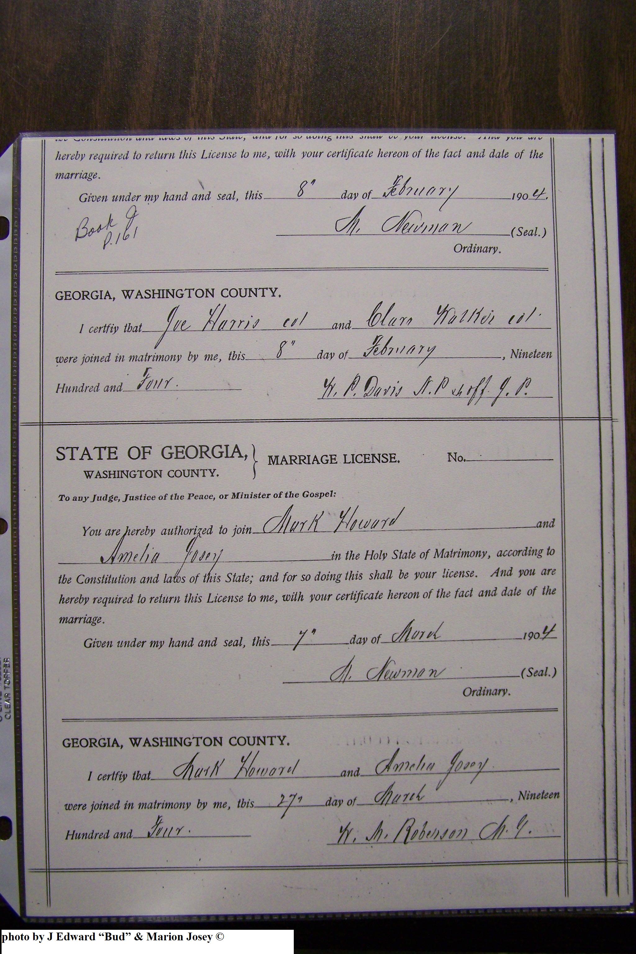 Josey, Amelia & Mark Howard, Marriage Lic 146.JPG