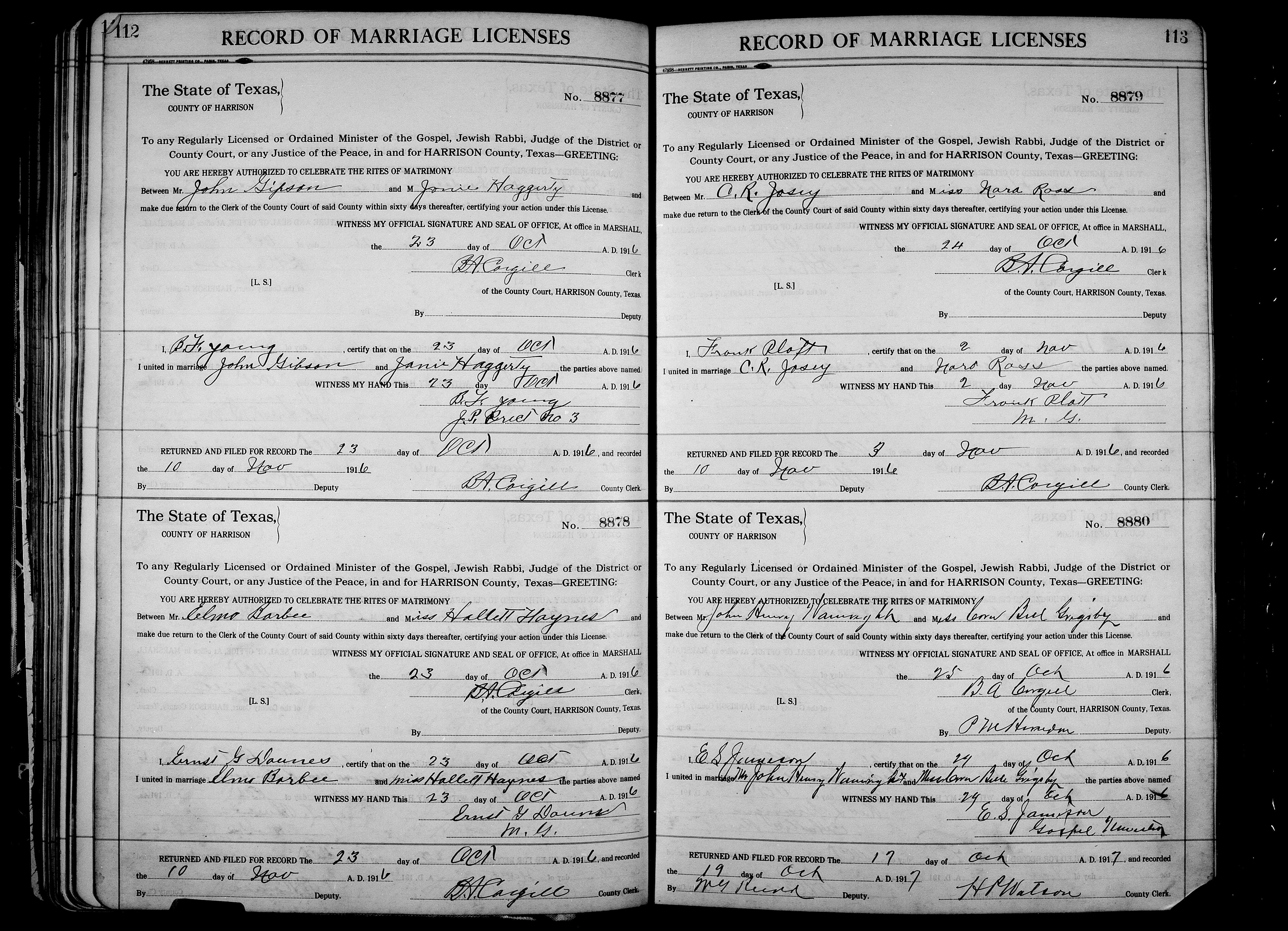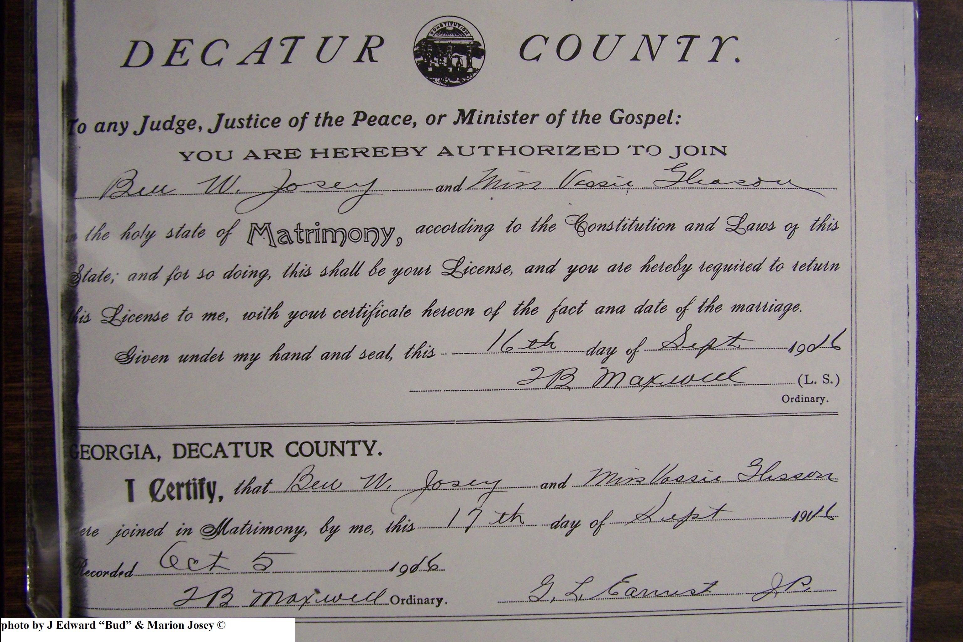 Josey, Ben William & Vassie J Glisson, Marriage Lic 057.JPG
