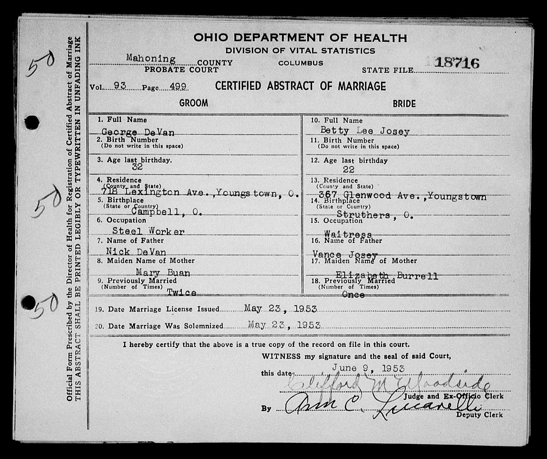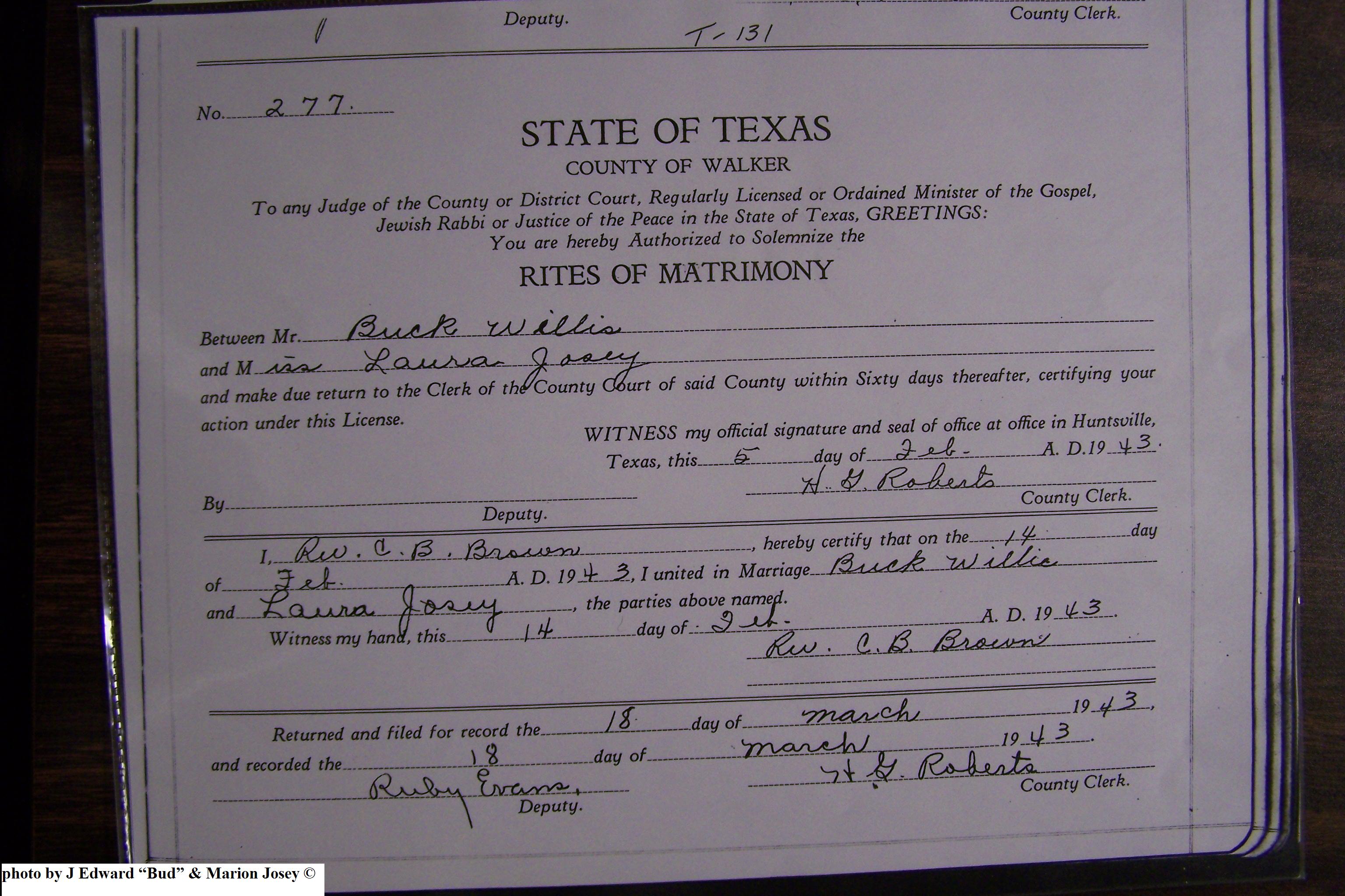 Josey, Charlie Ralph & Betty Jane Brown, Marriage Lic 183.JPG