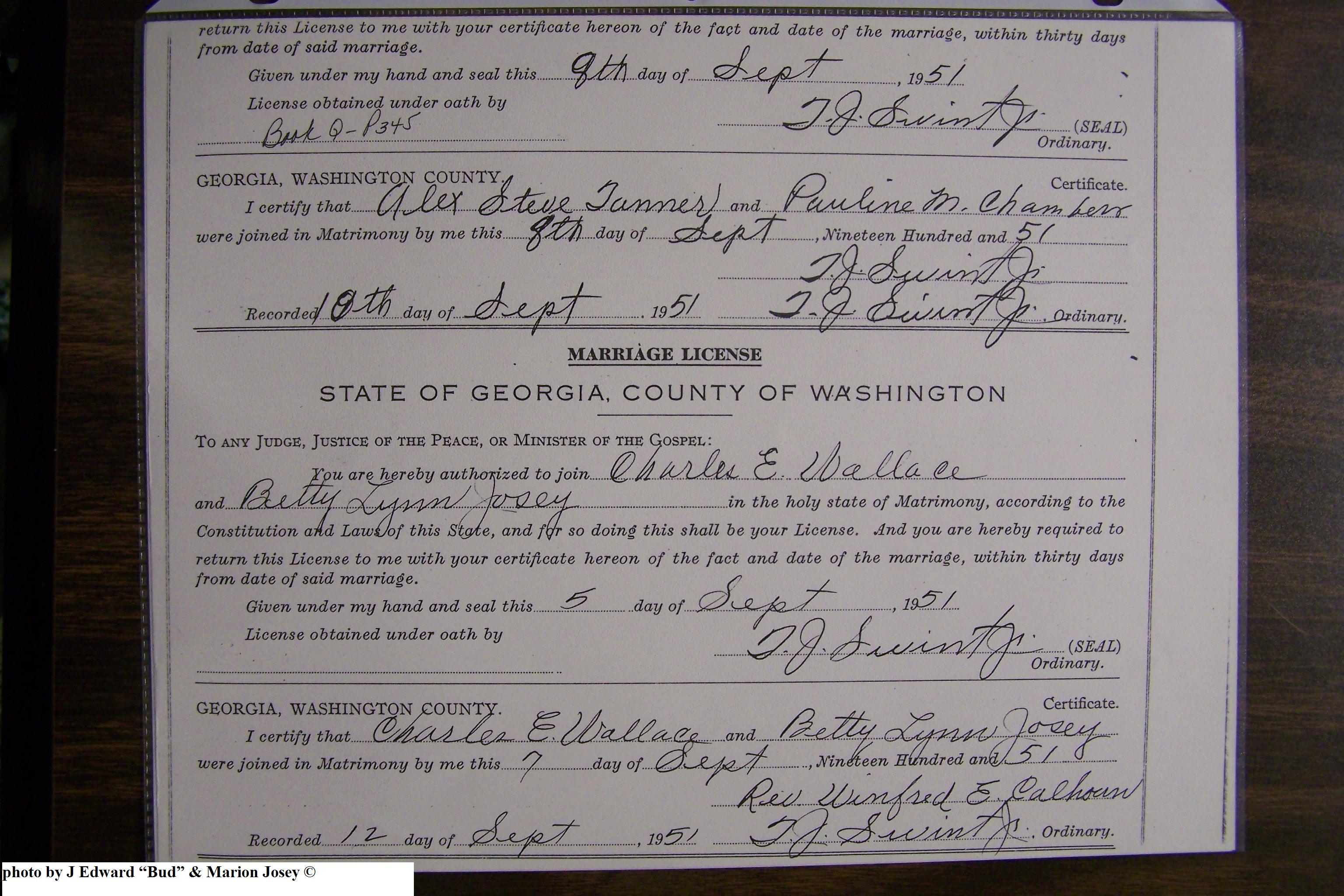 Josey, Betty Lynn & Charles Eddy Wallace, Marriage Lic 180.JPG