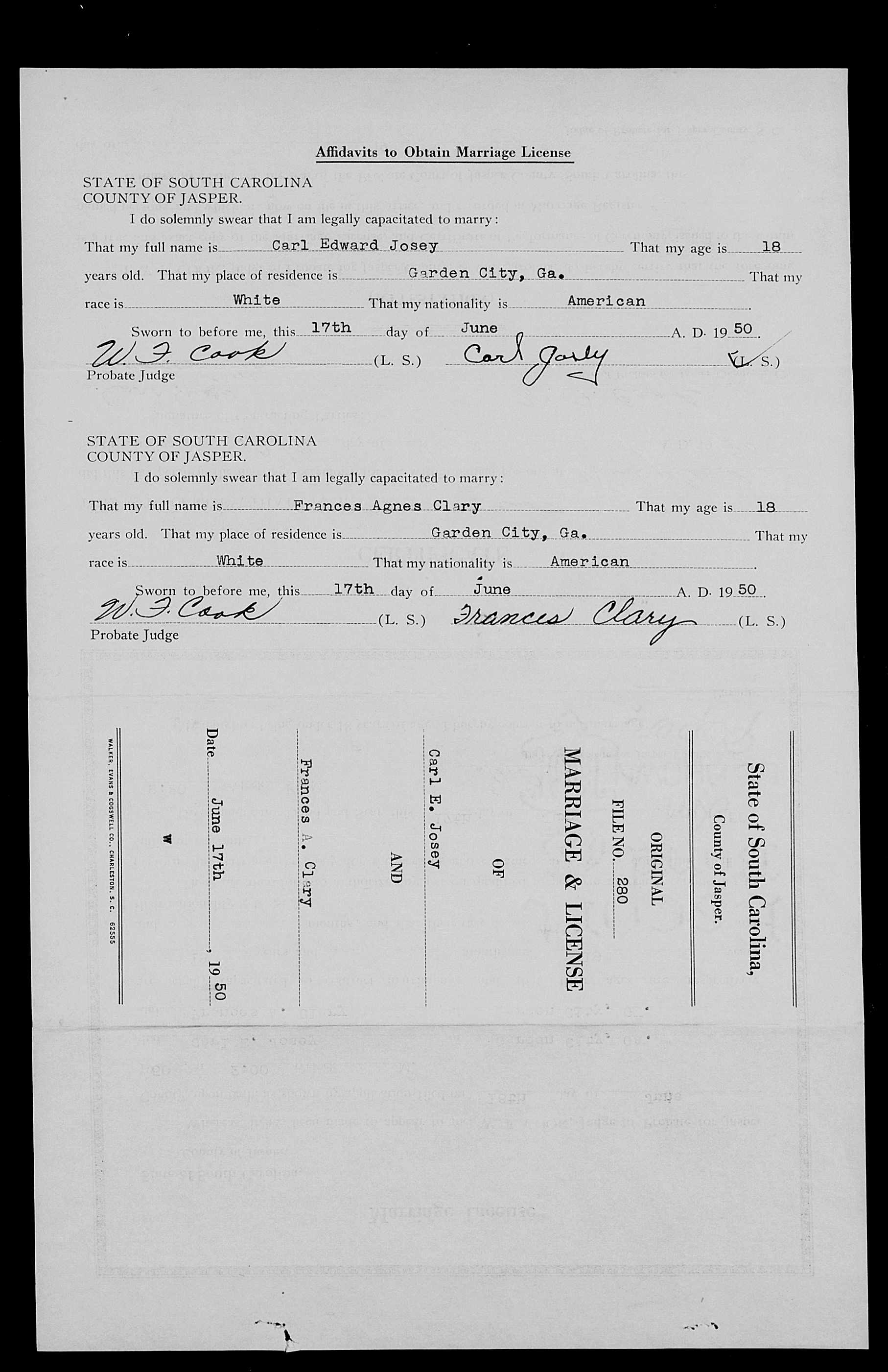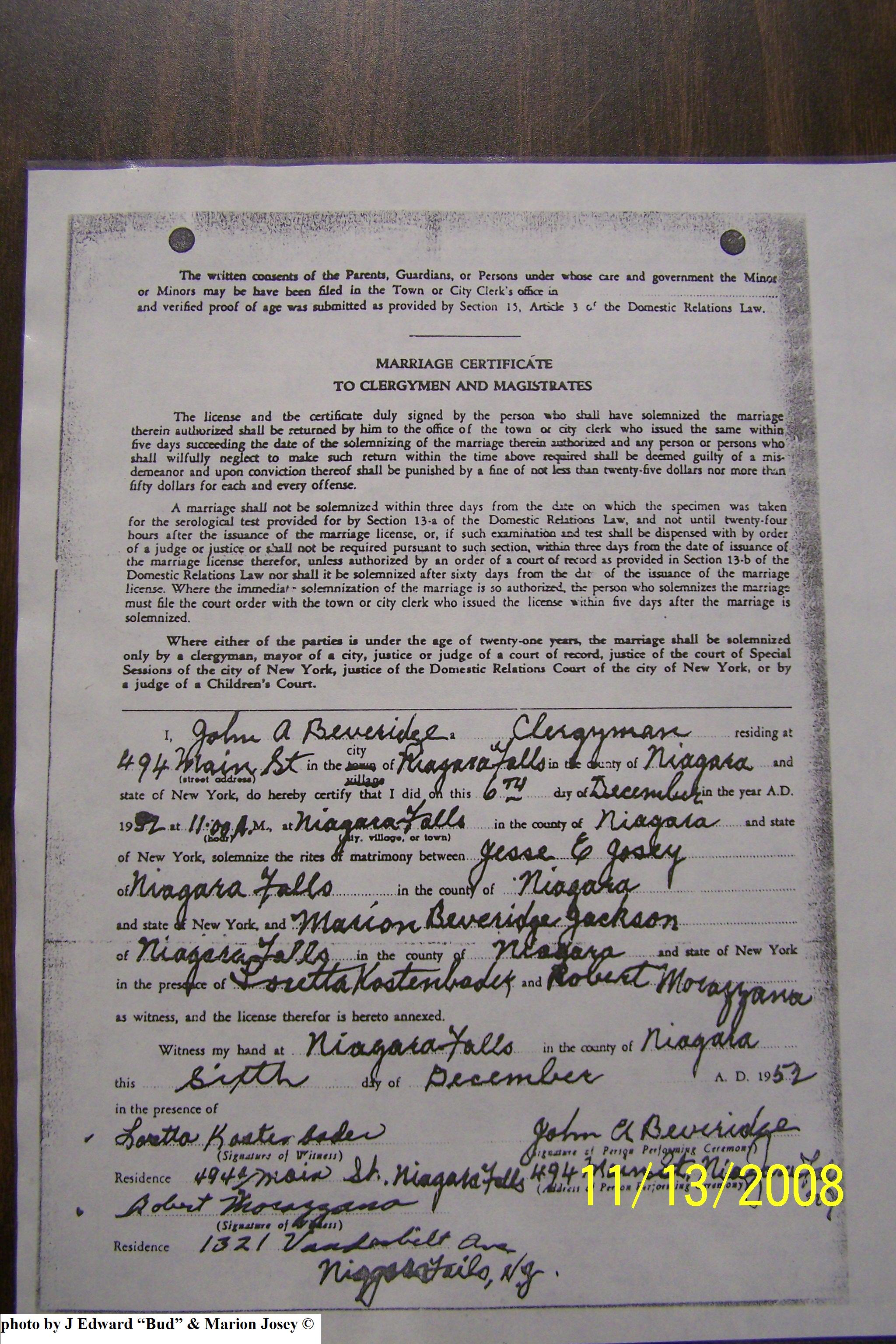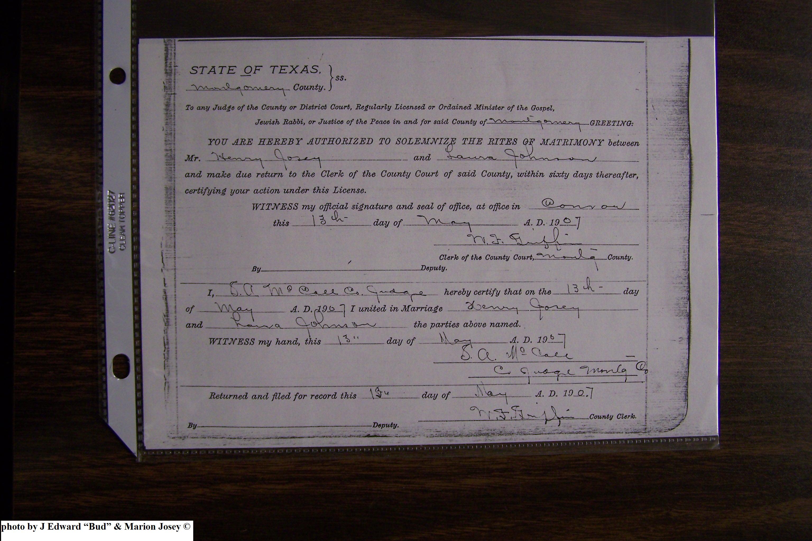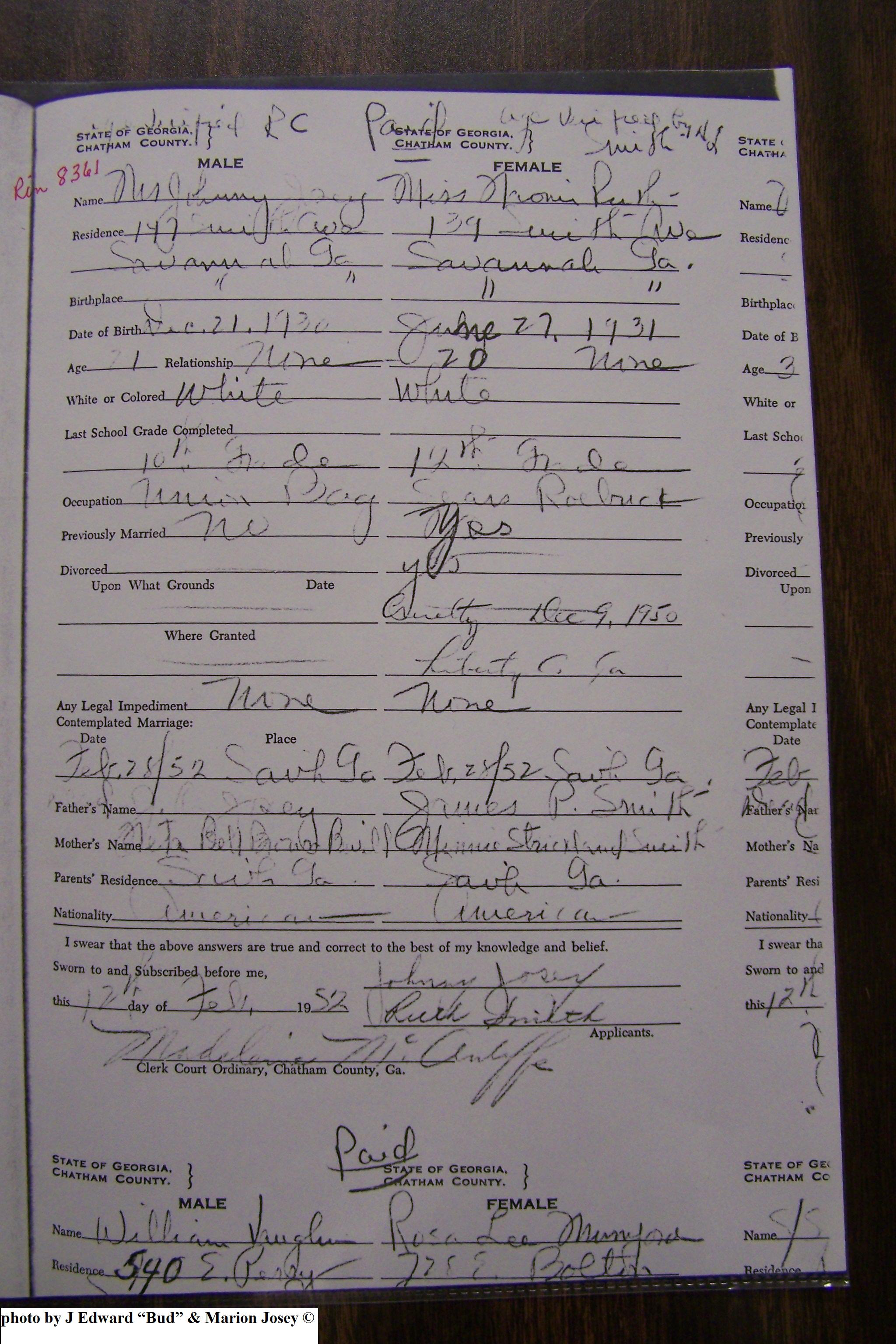 Josey, Edward C & Curtis Carolyn McGuirk, Marriage Lic 035.JPG