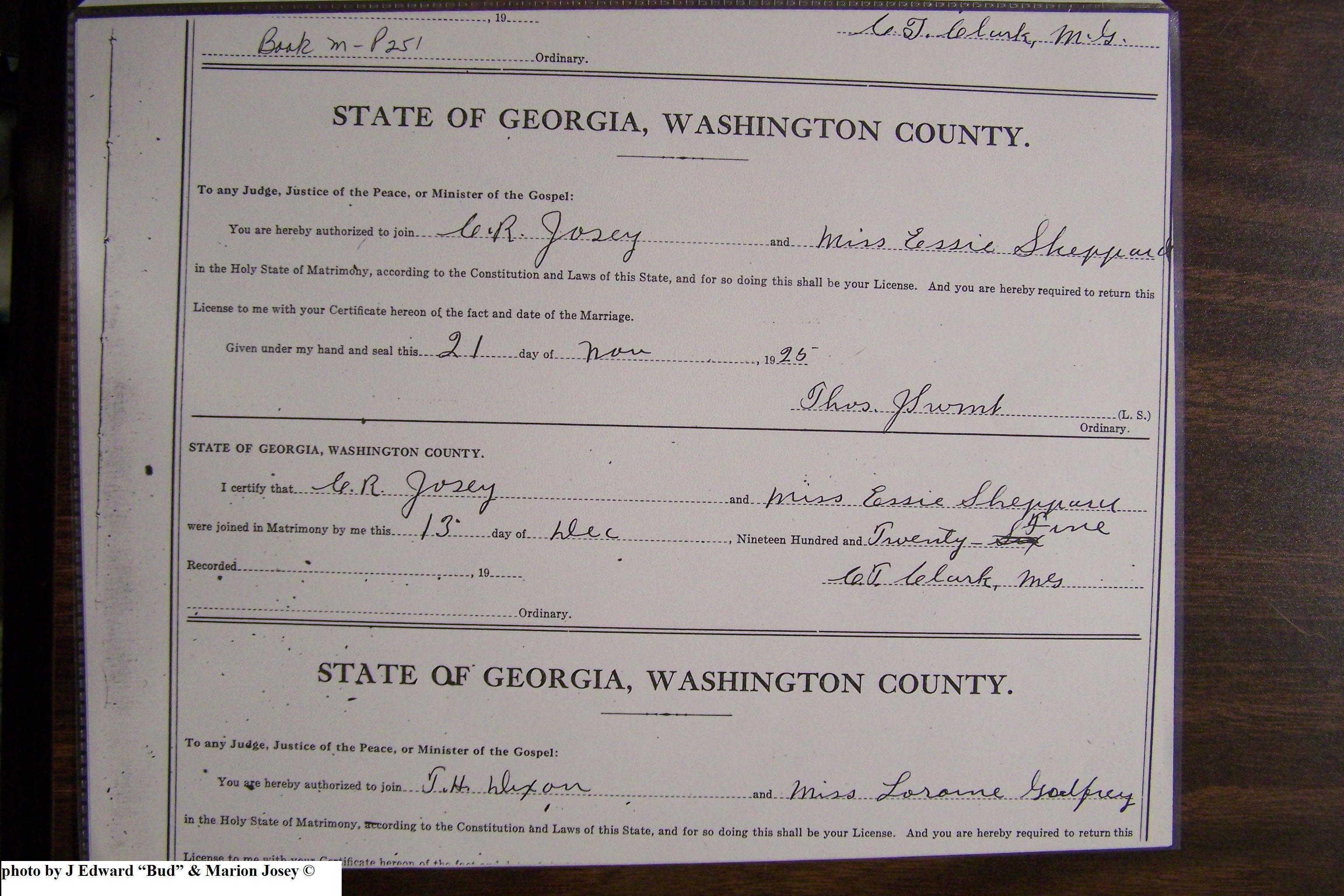 Josey, Charles Ray & Essie Mae Sheppard, Marriage Lic 164.JPG