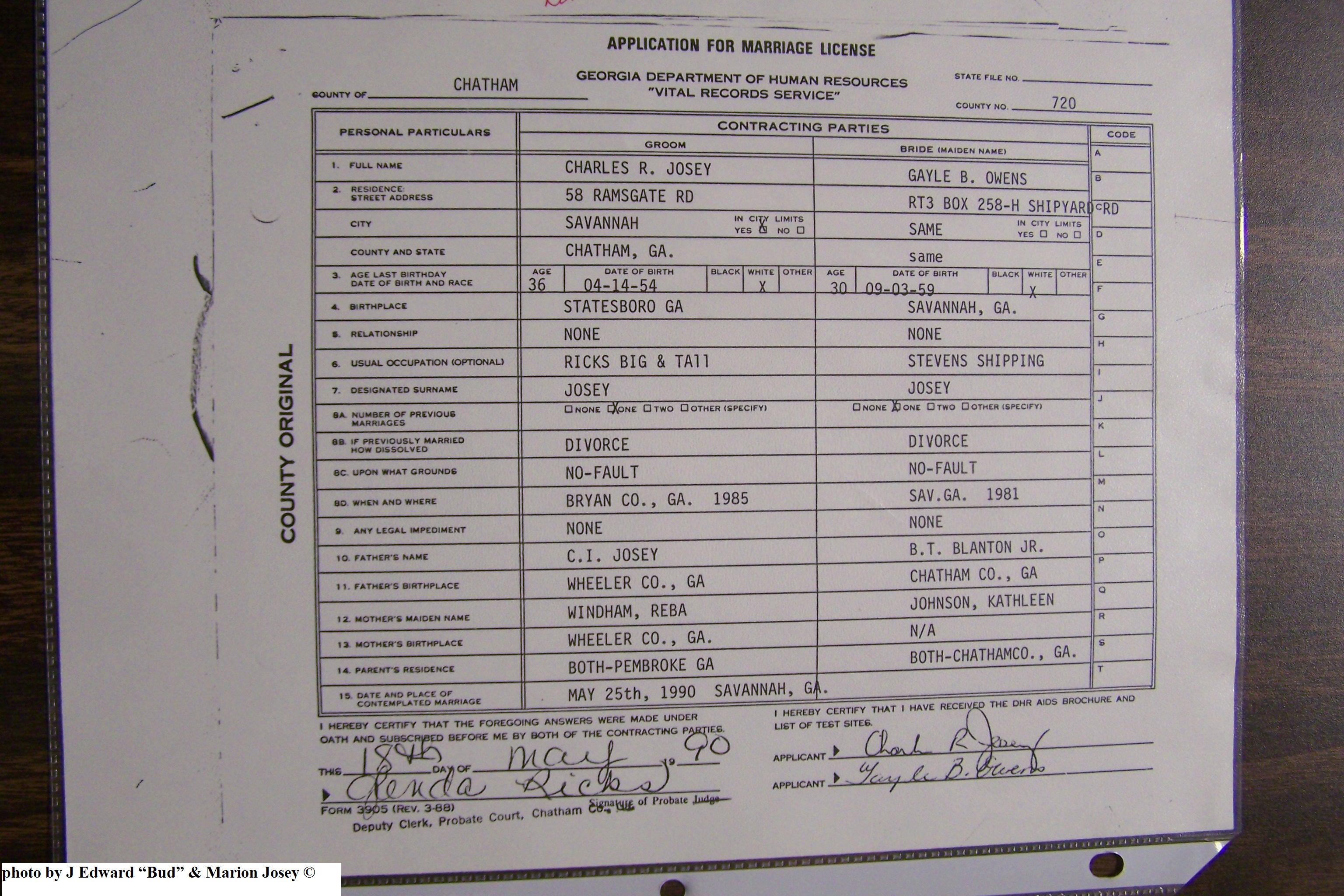 Josey, Charles Richard & Gayle Blanton Owens, Marriage Lic 040.JPG