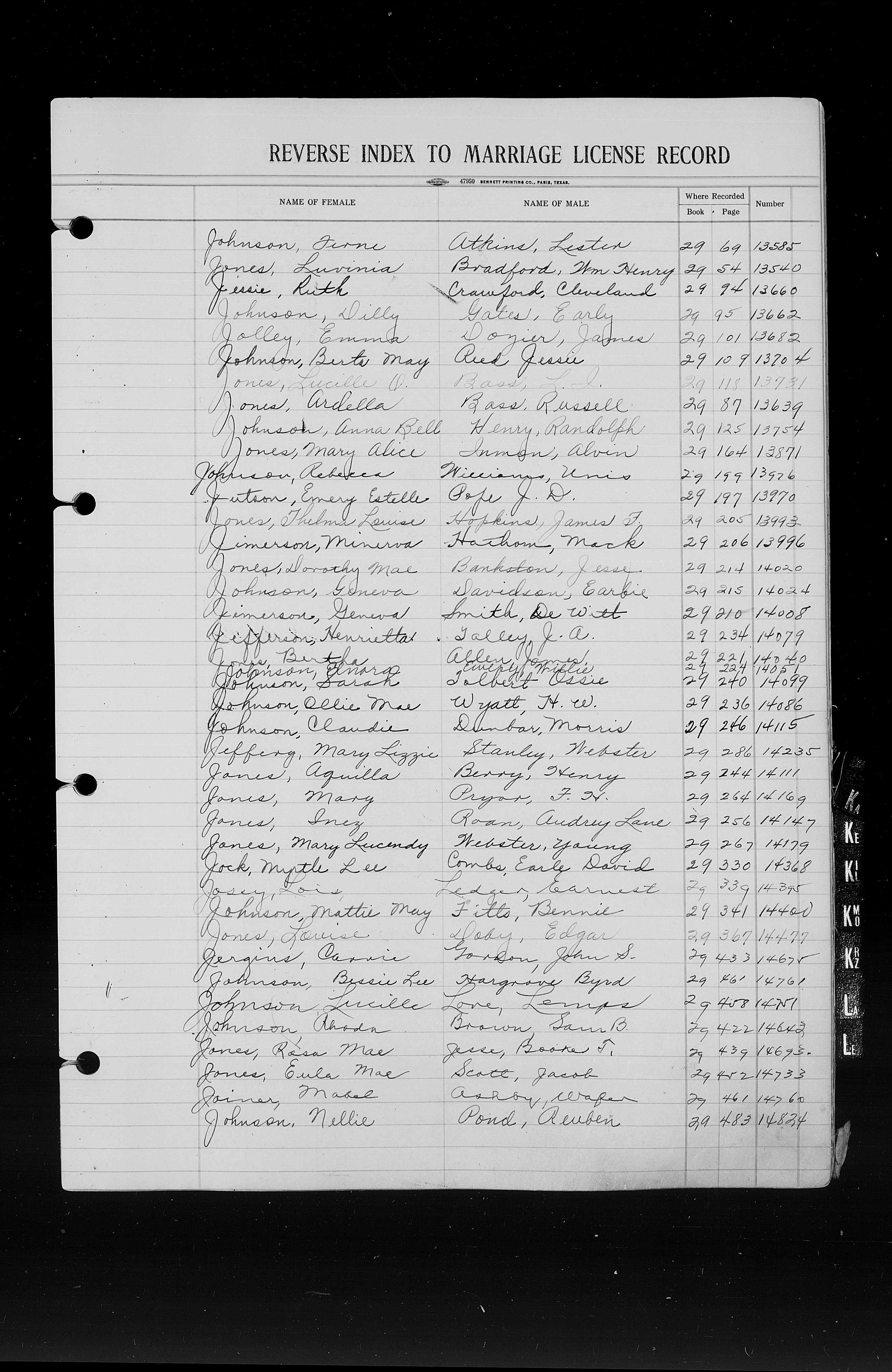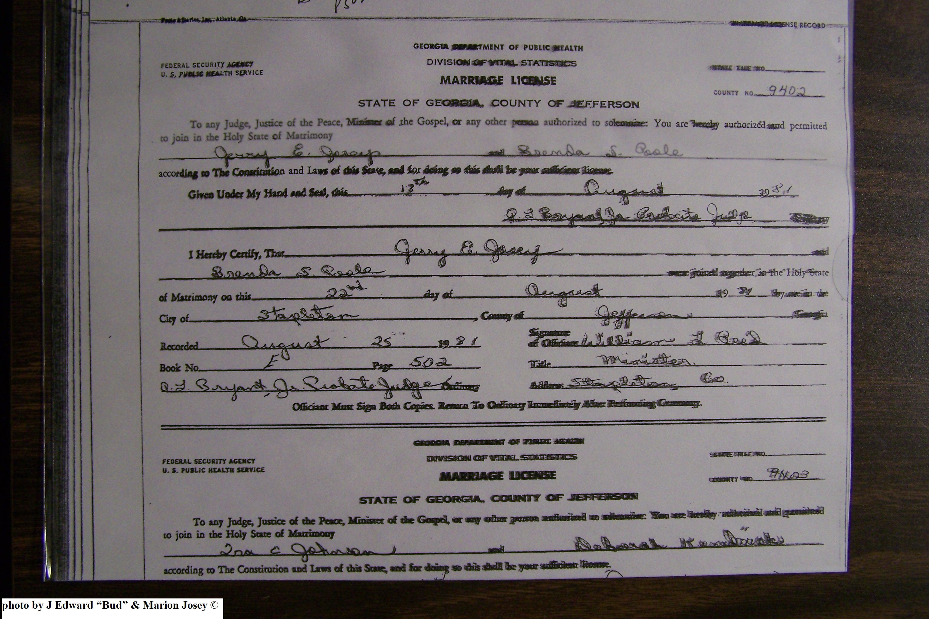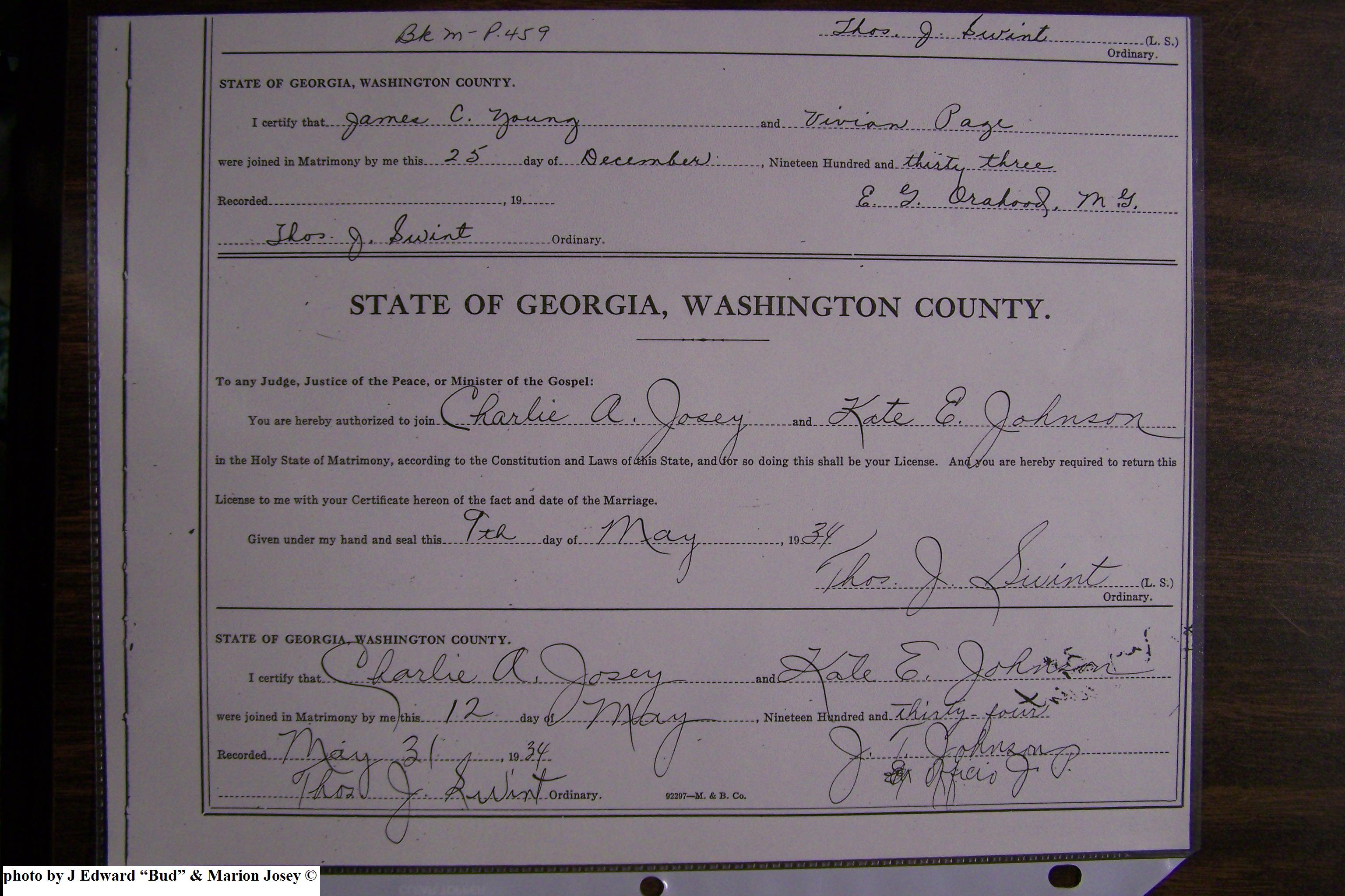 Josey, Charles Allen & Johnnie Speir, Marriage Lic 076.JPG