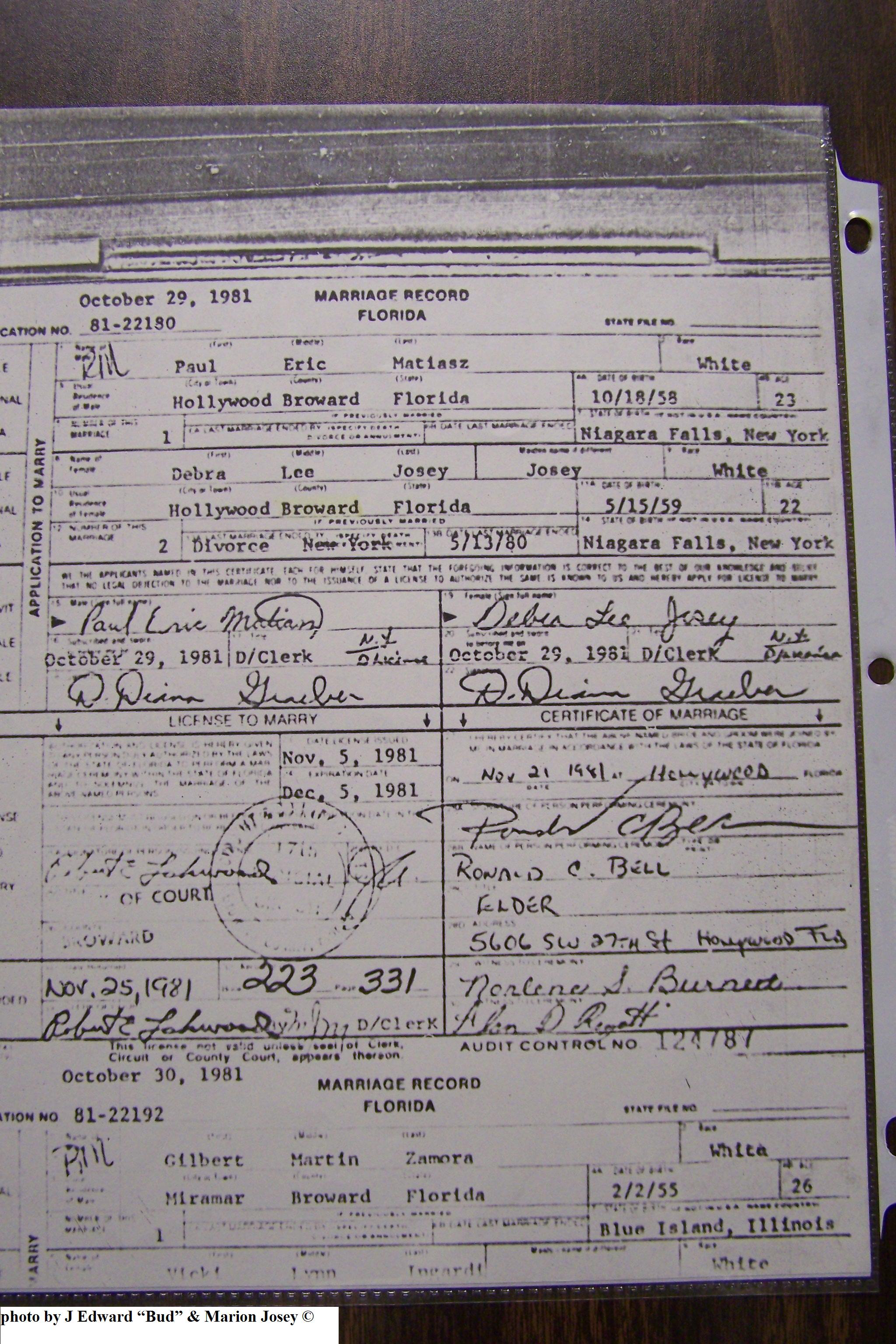 Josey, Deborah Lee & Paul Eric Matiasz, Marriage Lic 031.JPG