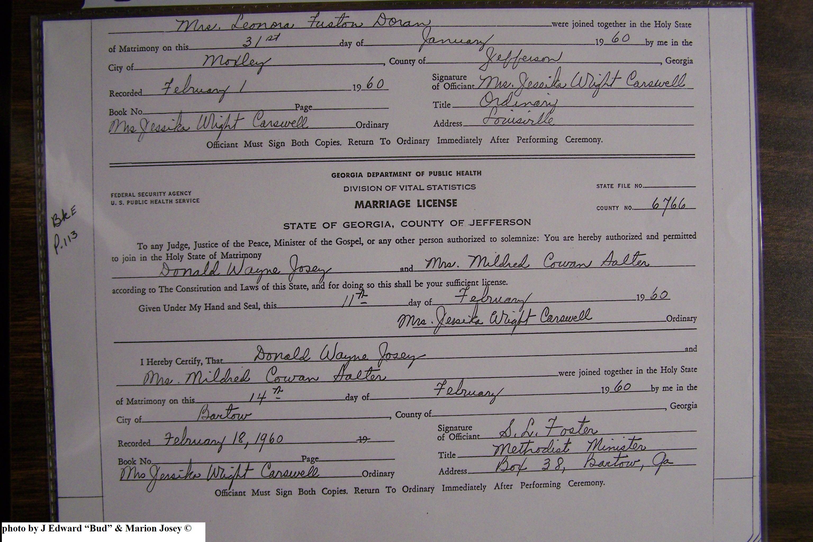 Josey, Donald Wayne & Mildred Cowan Salter, Marriage Lic 081.JPG