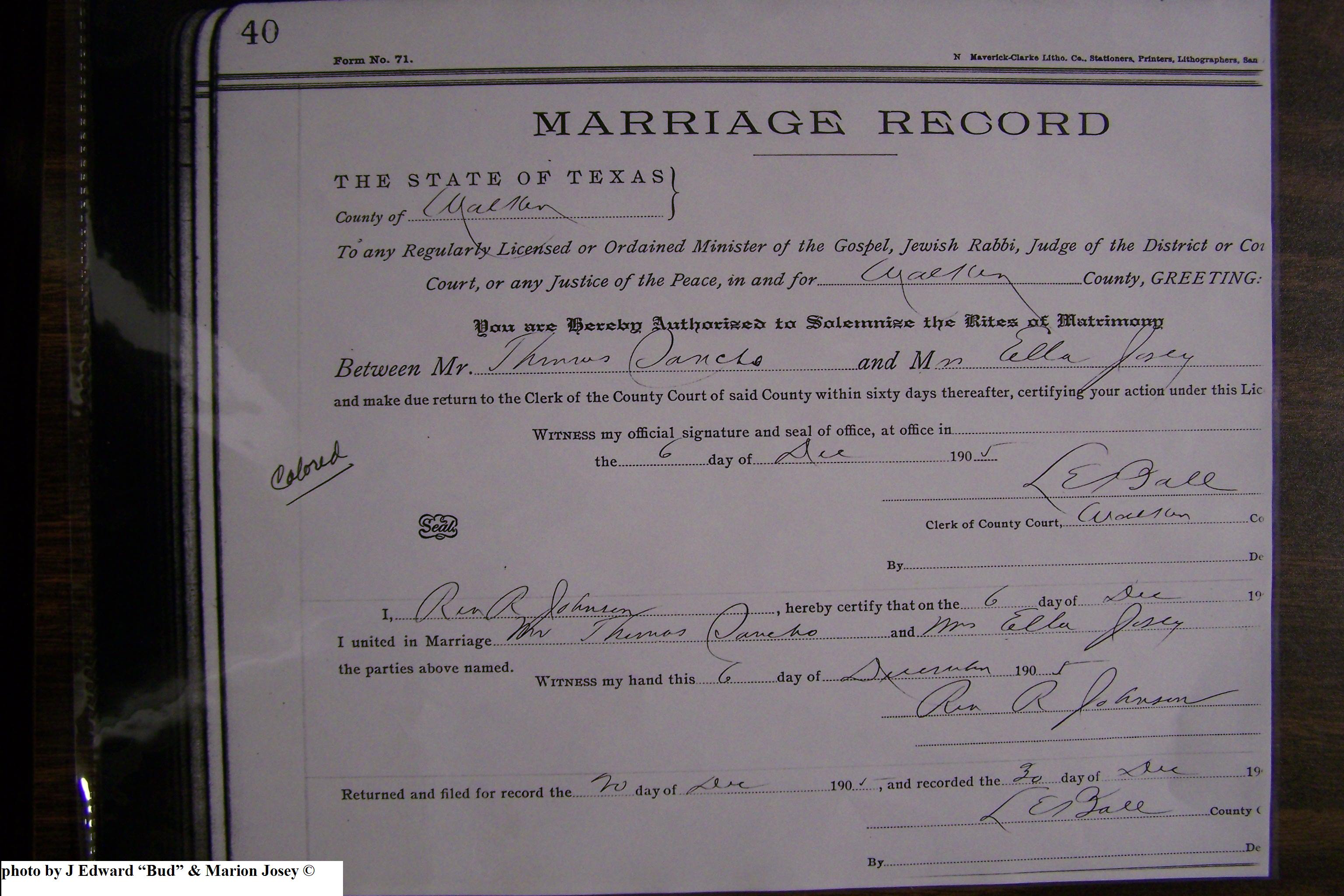 Josey, Ella & Thomas Danchs, Marriage Lic 228.JPG