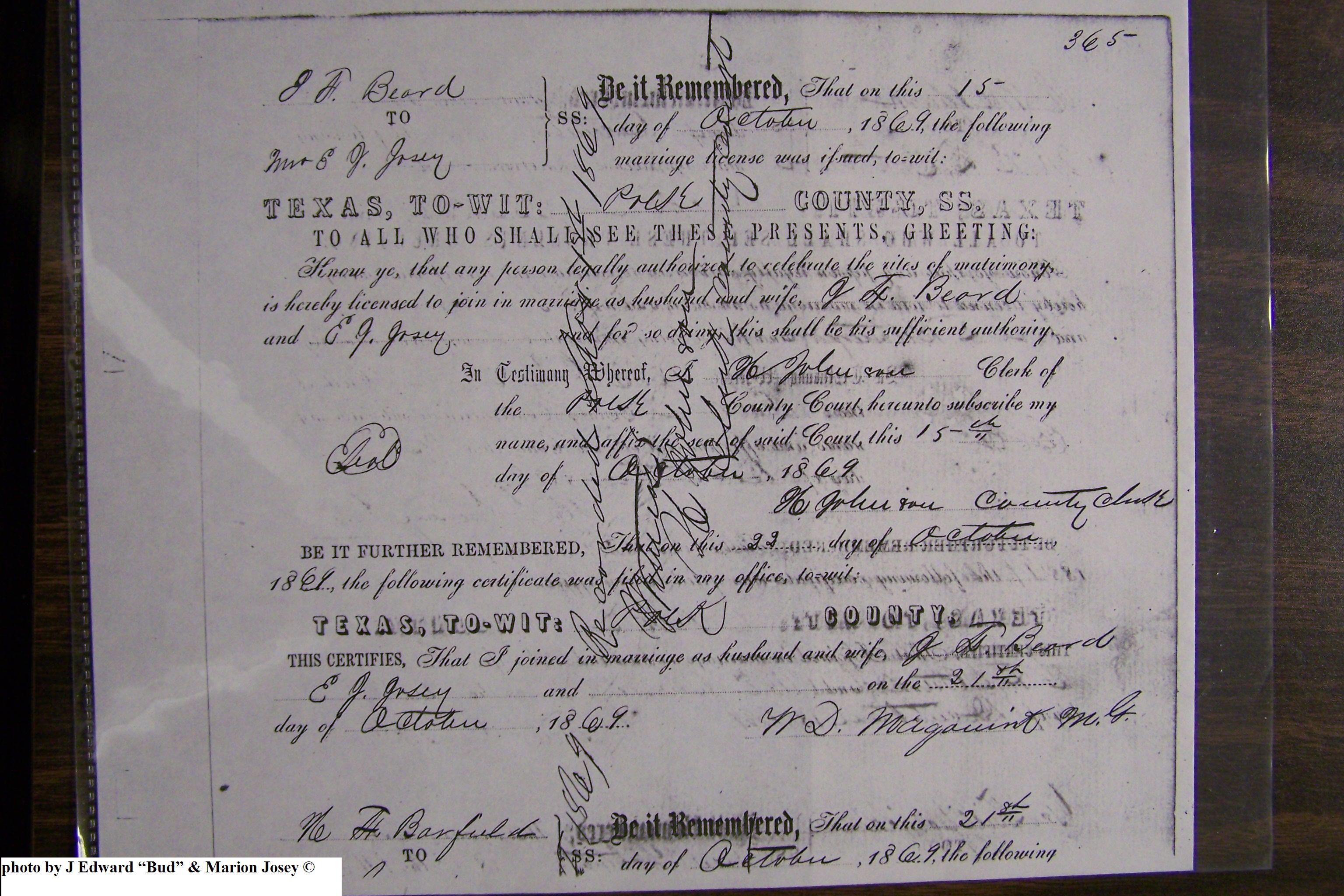 Josey, Emily Jane Kervin & J F Beard, Marriage Lic 213.JPG