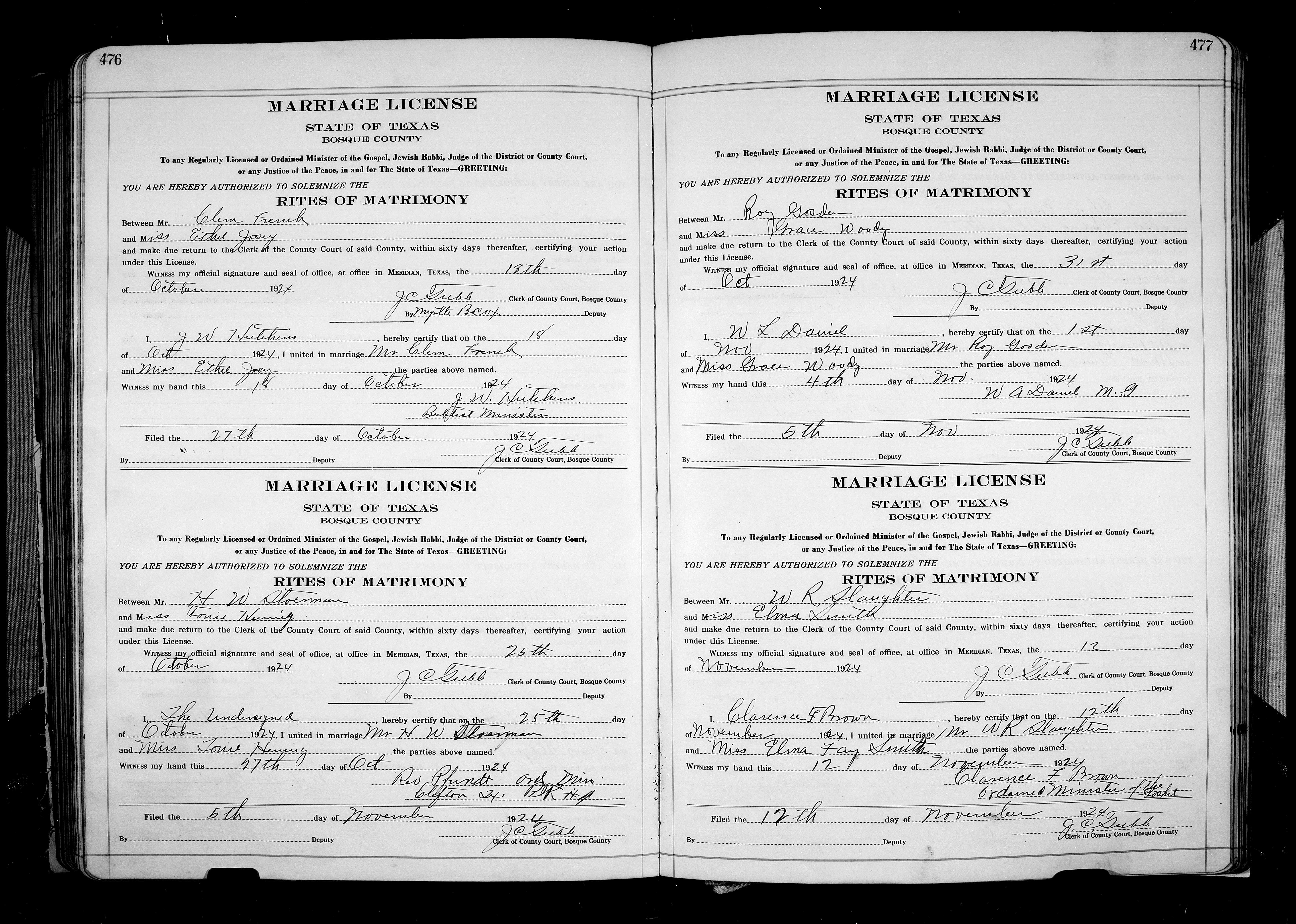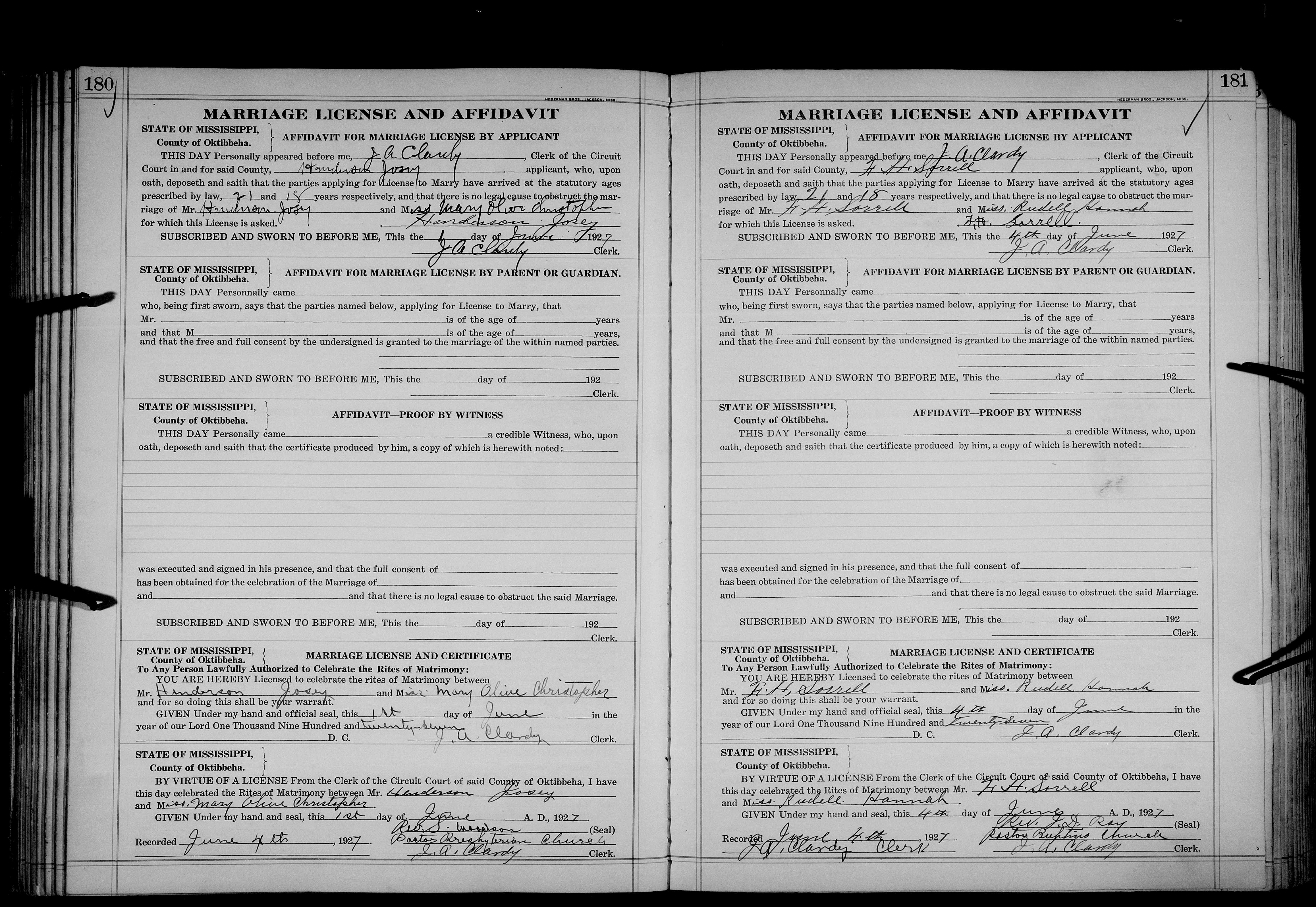 Josey, Cliff Elijah & Alma Lois Howard, Marriage Lic 053.JPG