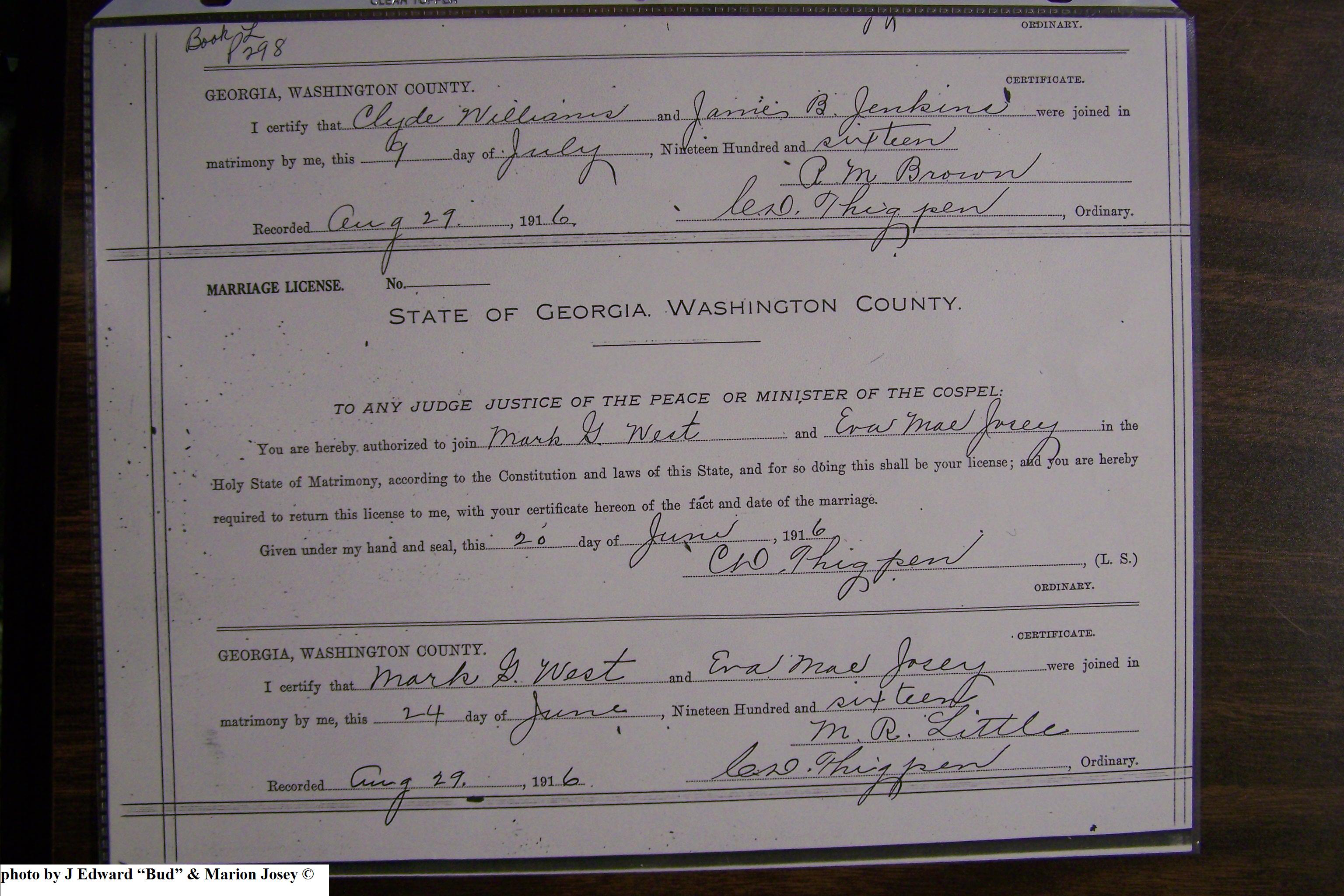 Josey, Eva Mae Wilson & Marcus G West, Marriage Lic 156.JPG