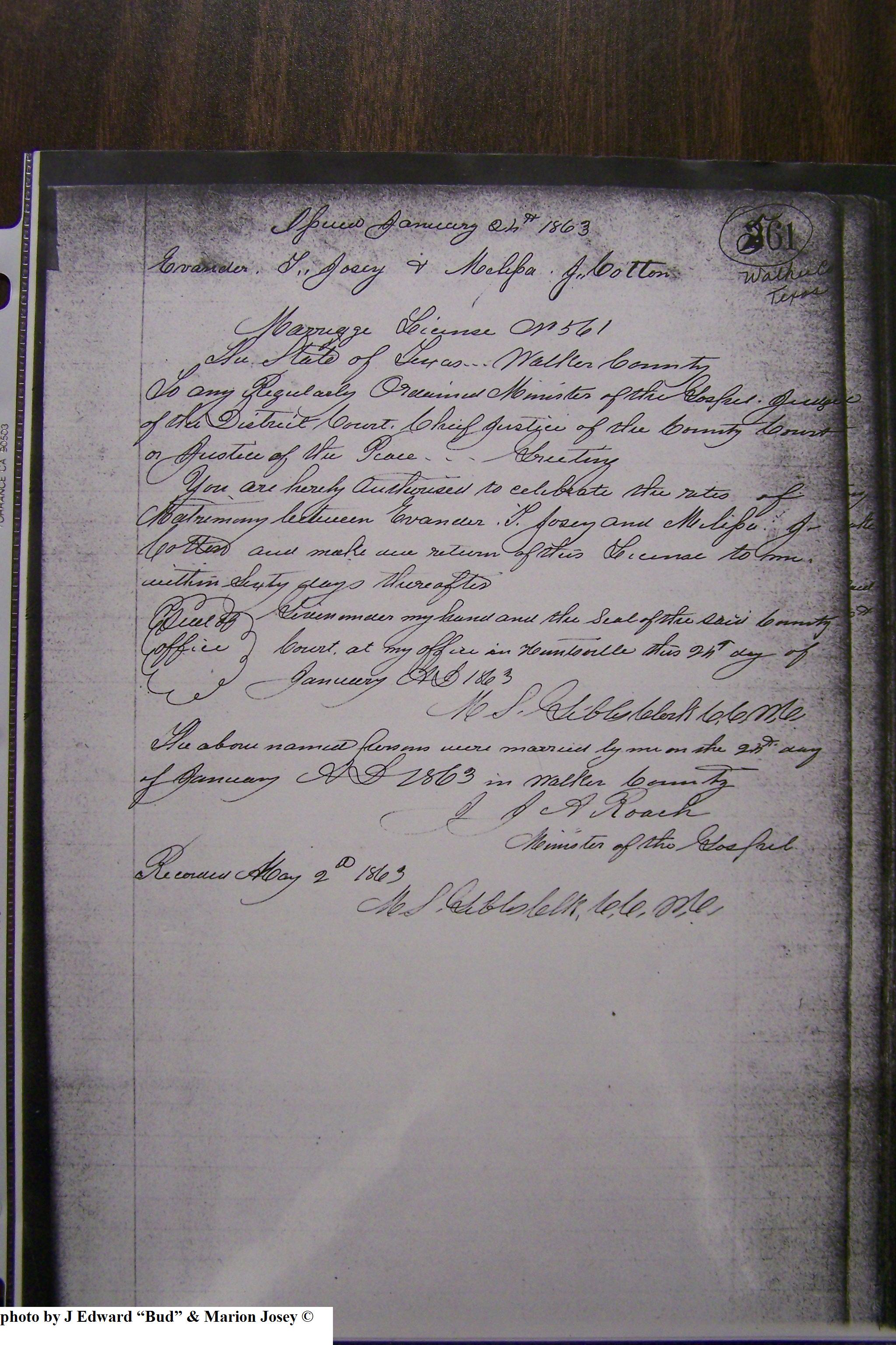 Josey, Evander Theophilos & Melissa Jane Cotton, Marriage Lic 214.JPG