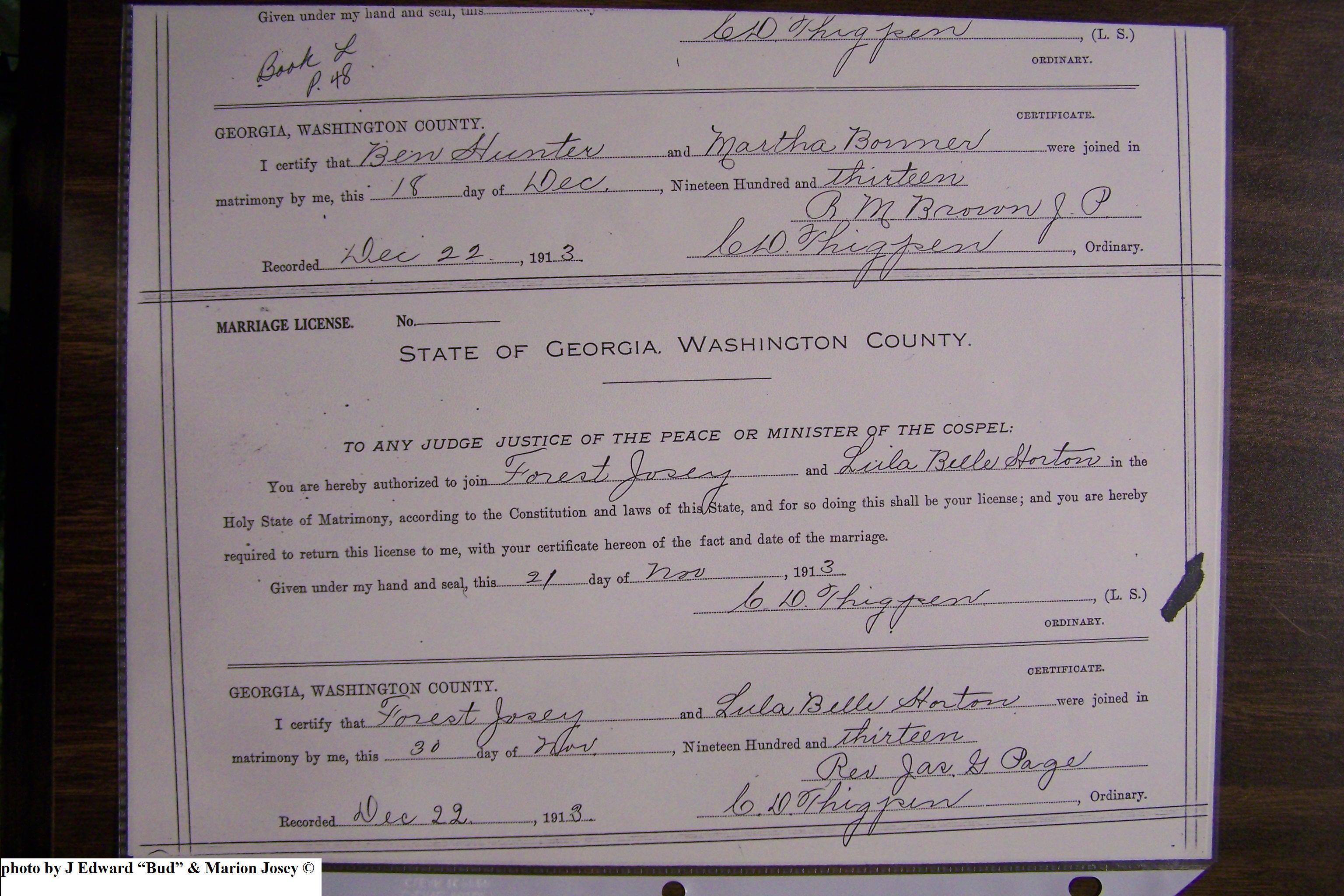 Josey, Forest Hamilton & Lula Bell Horton, Marriage Lic 151.JPG