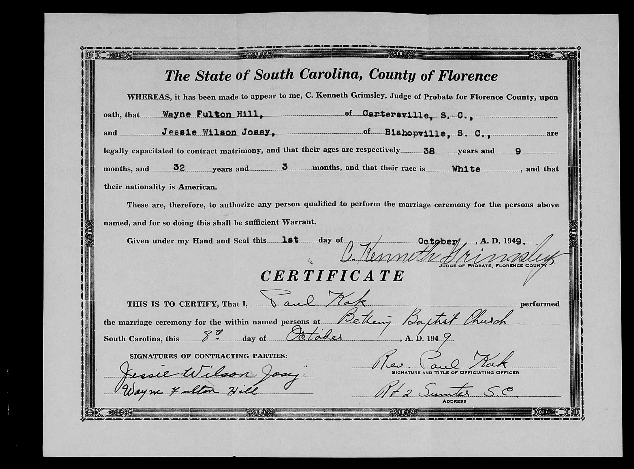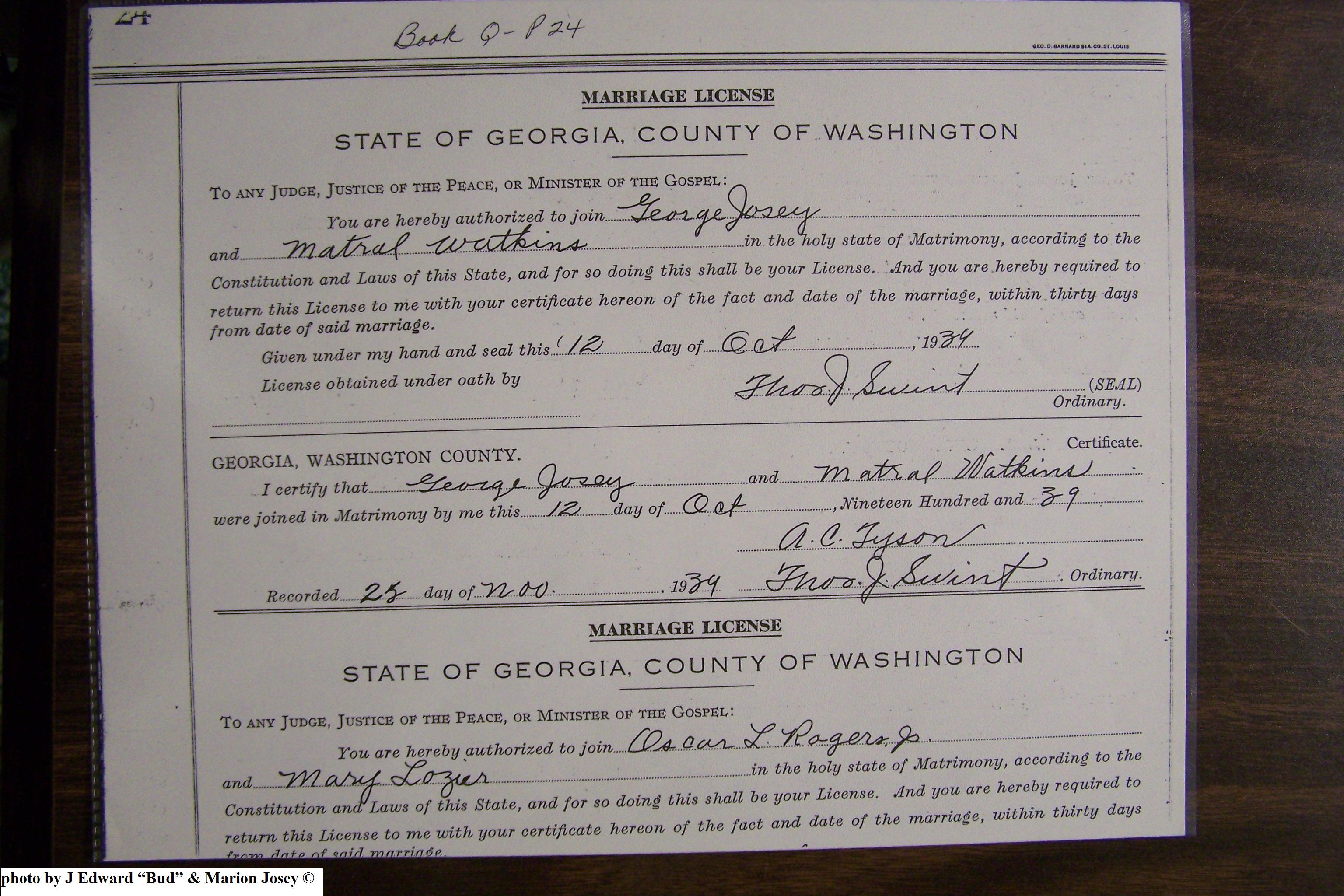 Josey, Charles Thomas & Ruby Lee Wright, Marriage Lic 050.JPG