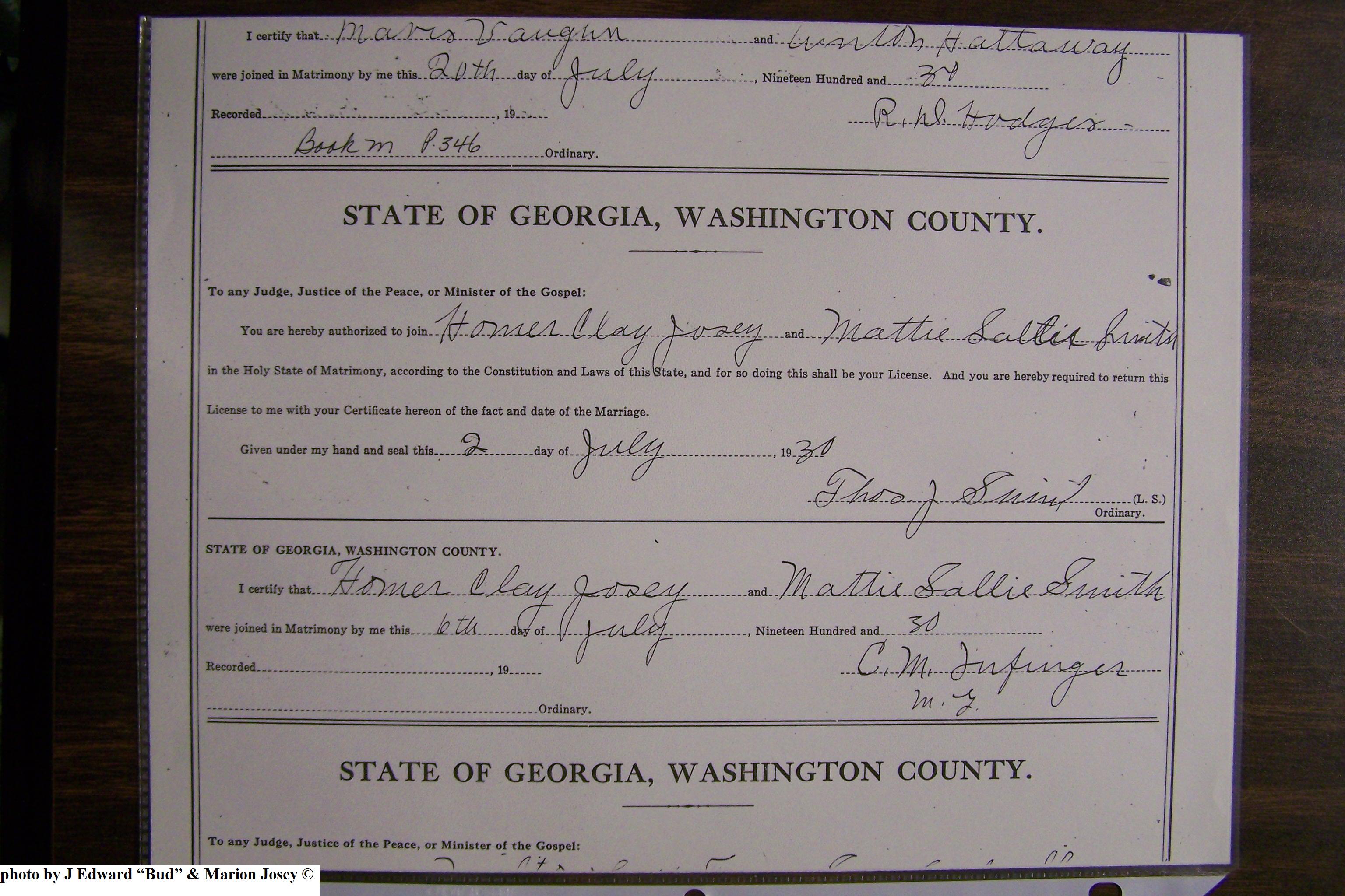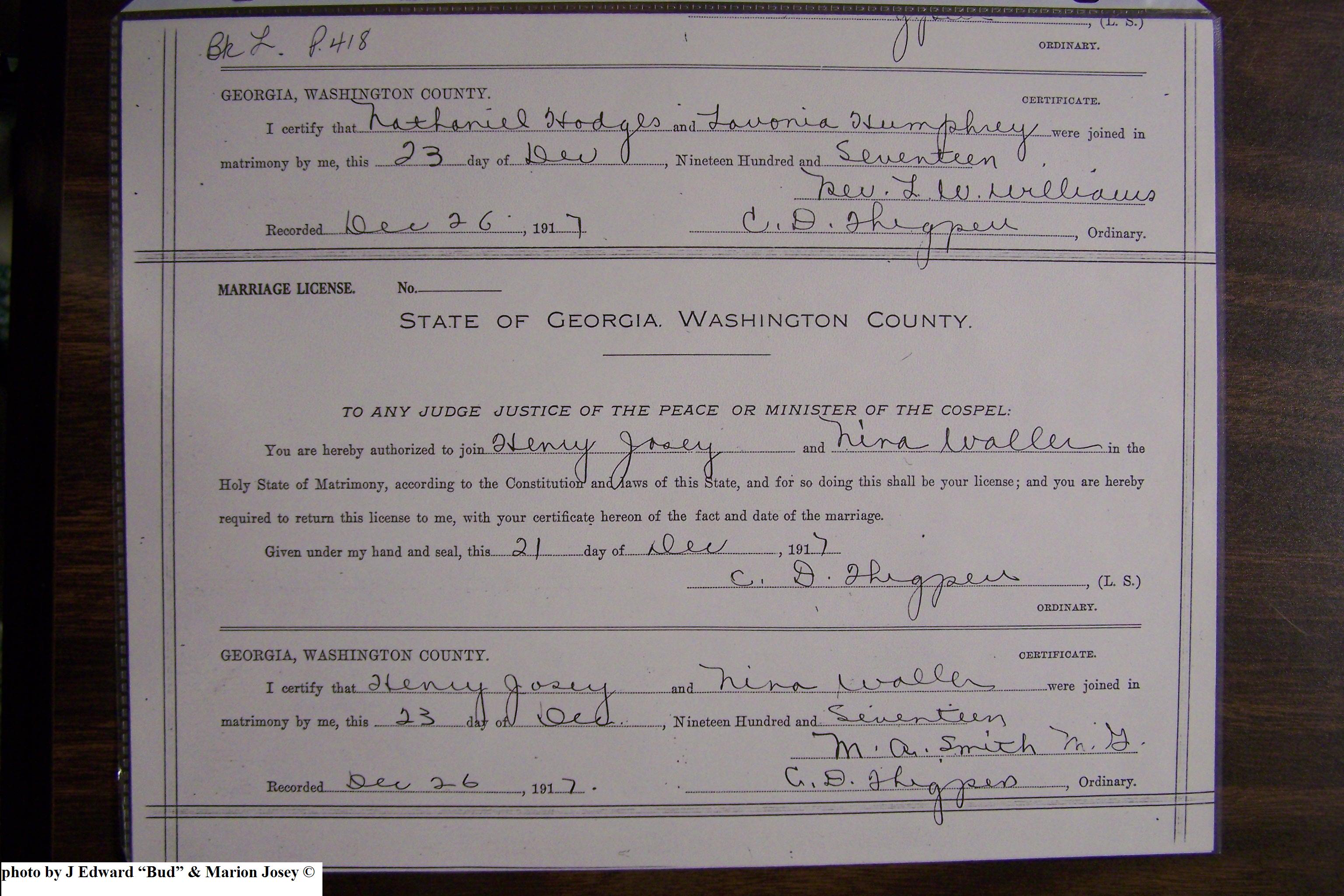 Josey Marriage Lic Washington Co, GA, pg 2, 117.JPG