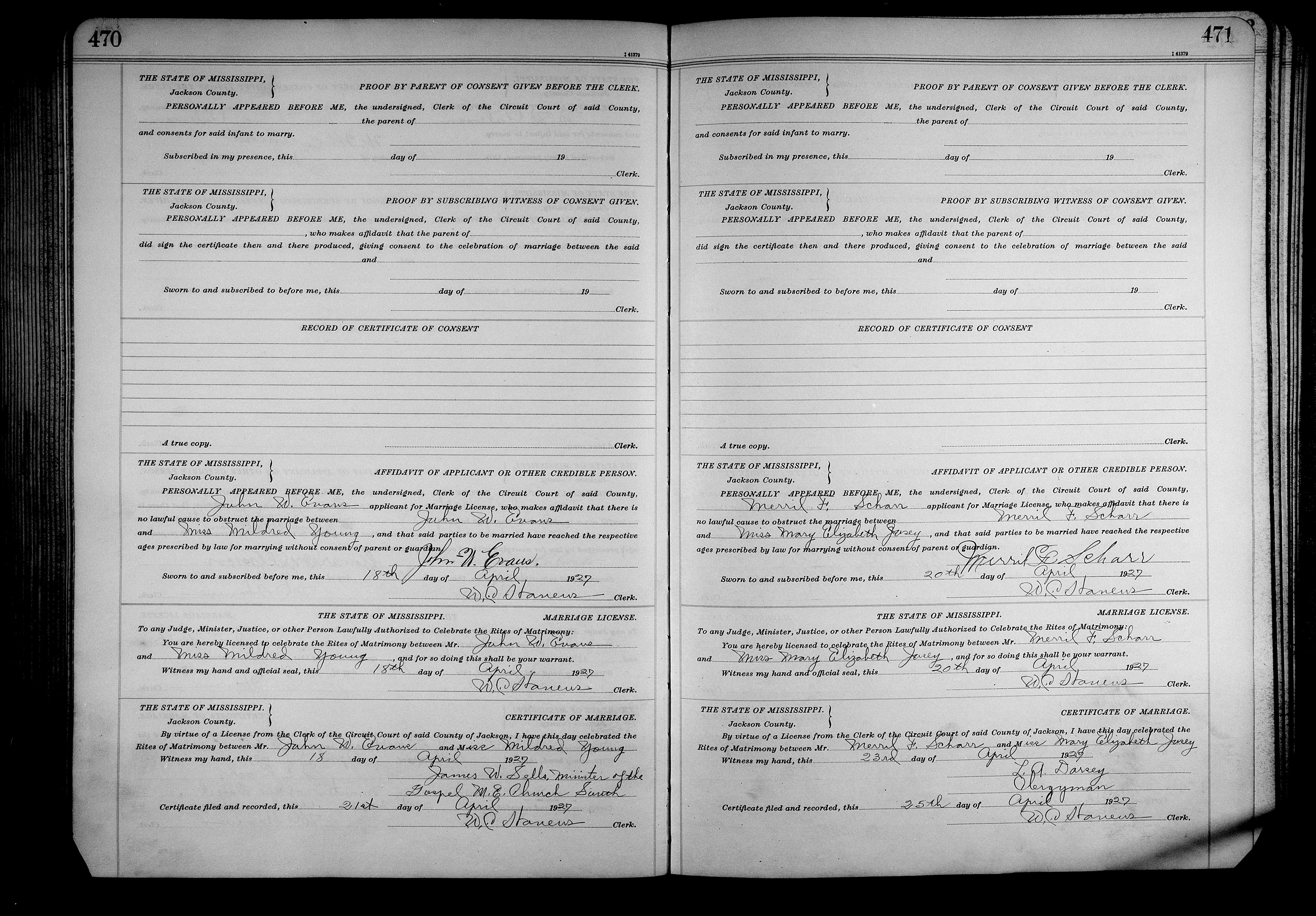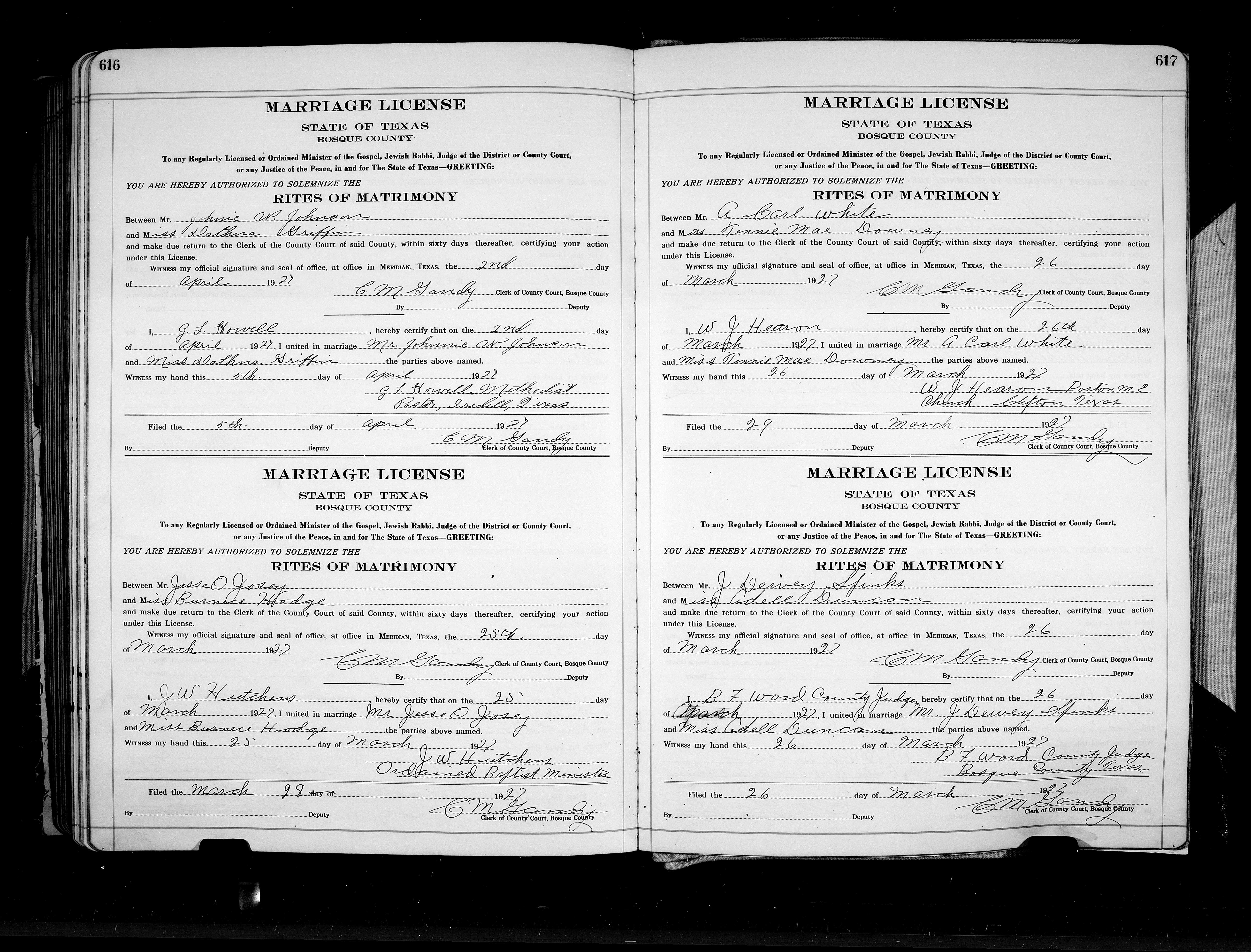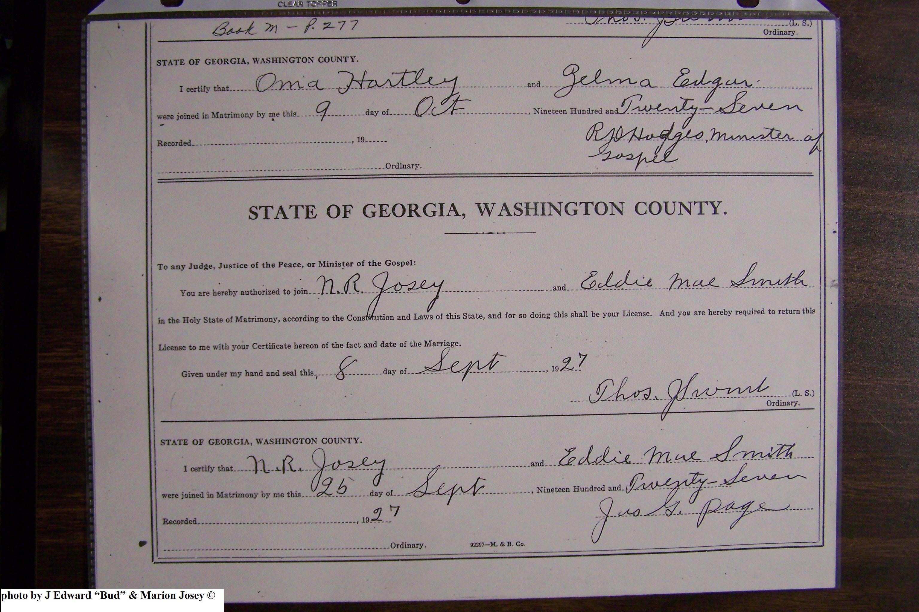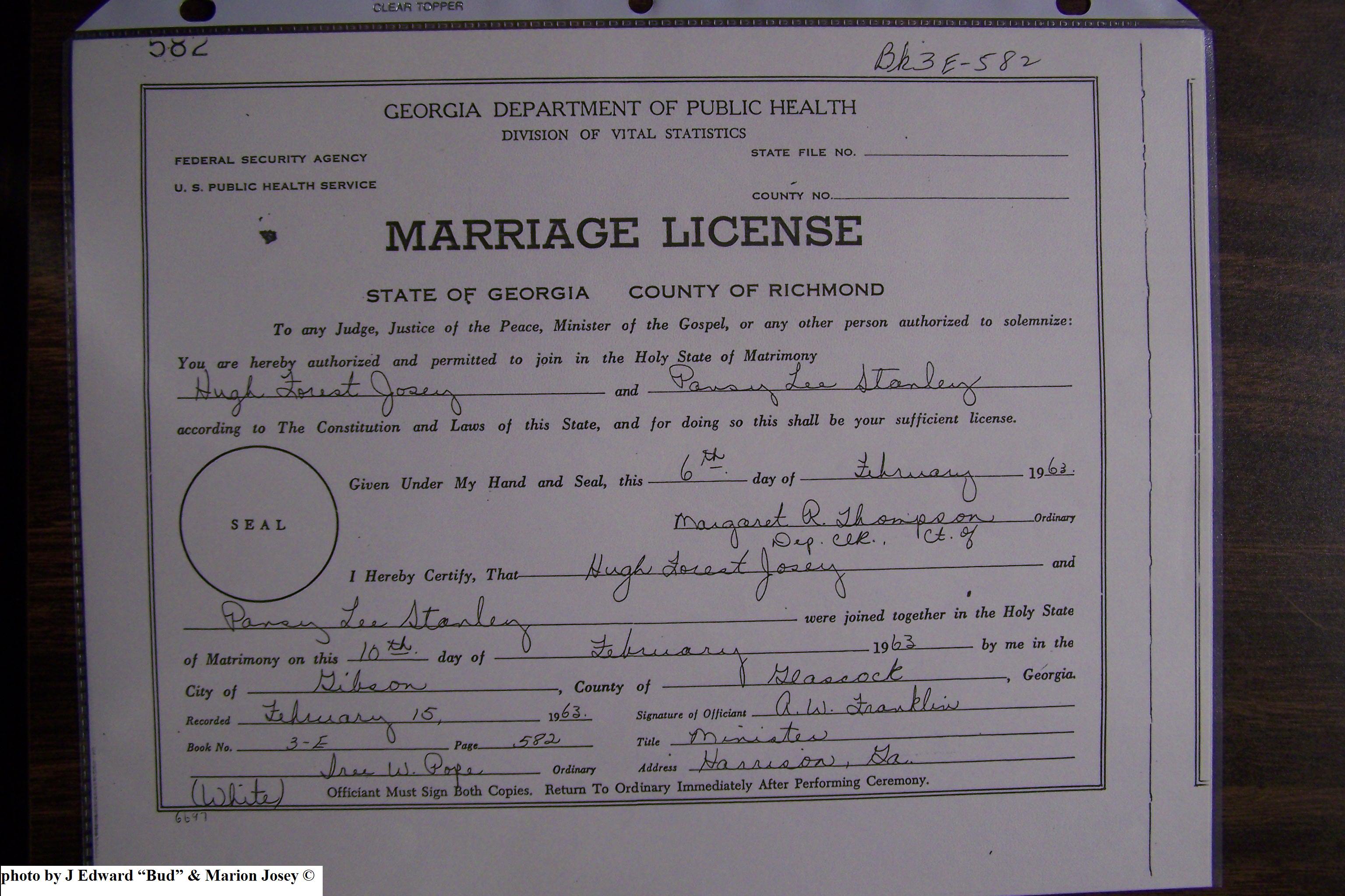 Josey, David Simon & Edna Irene Howard, Marriage Lic 056.JPG