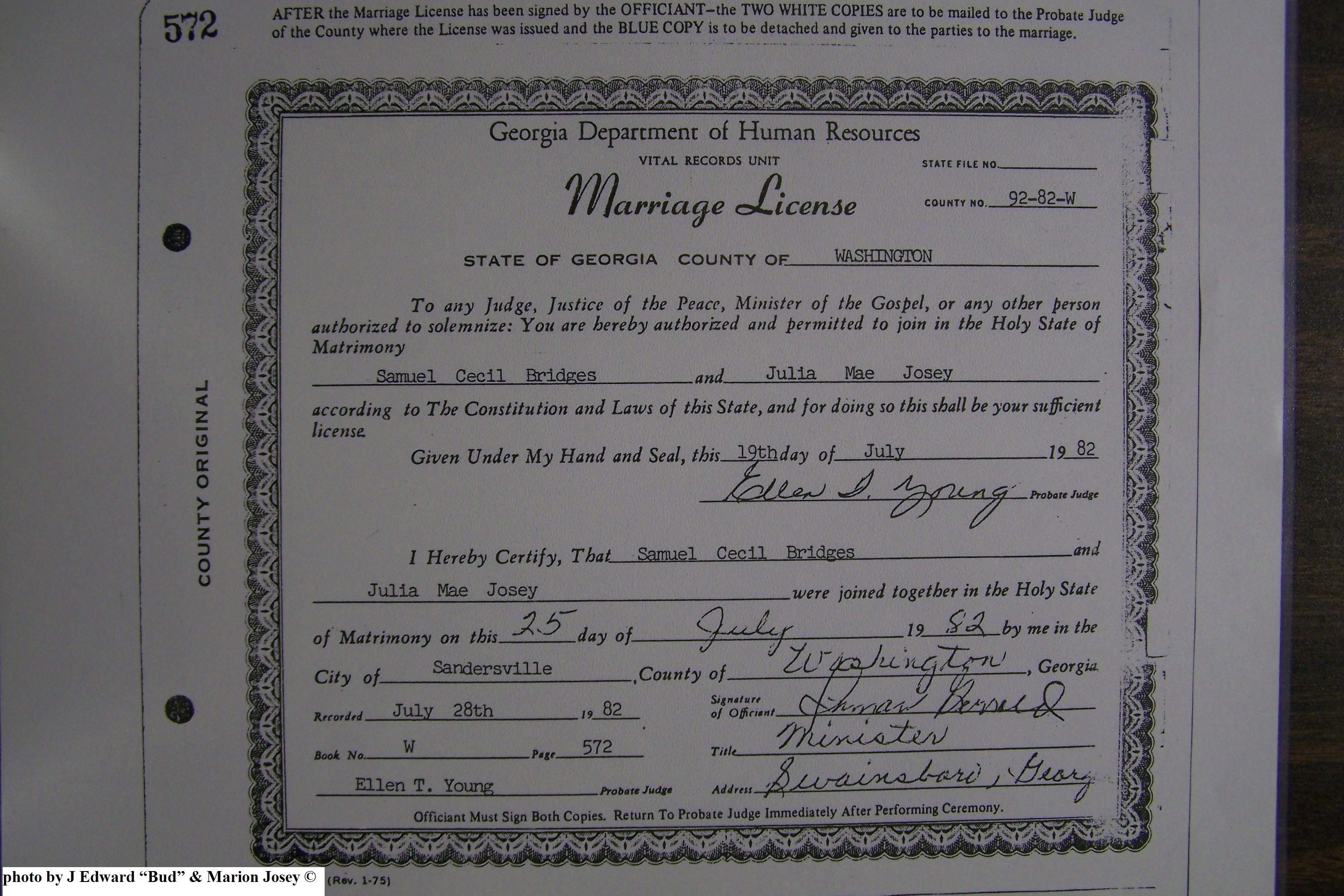 Josey, William Ellis Jr & Madge Connors Speir, Marriage Lic 074.JPG