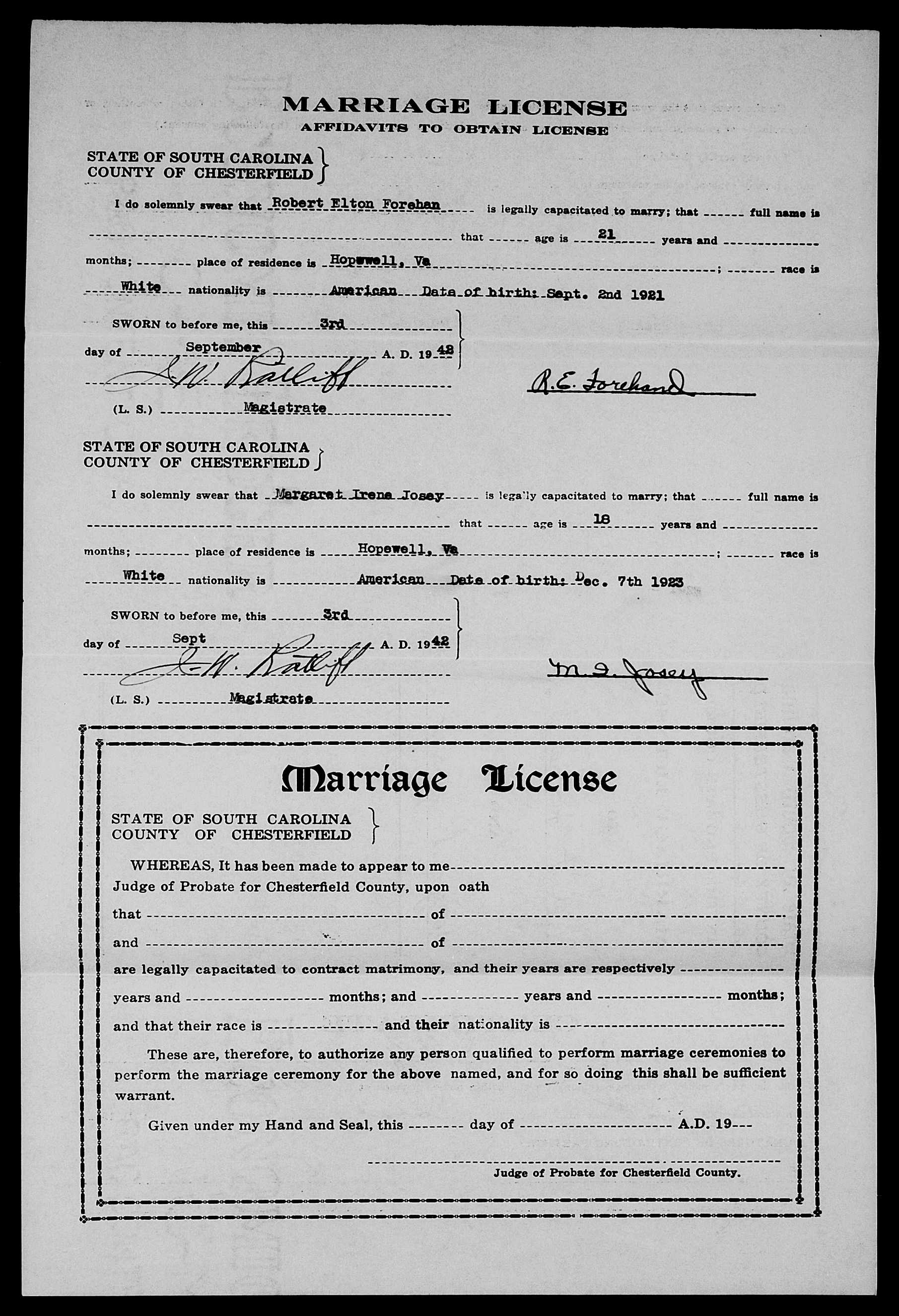 Josey, Robert Elijah & Ethel Ellen Nix, Marriage Lic 051.JPG